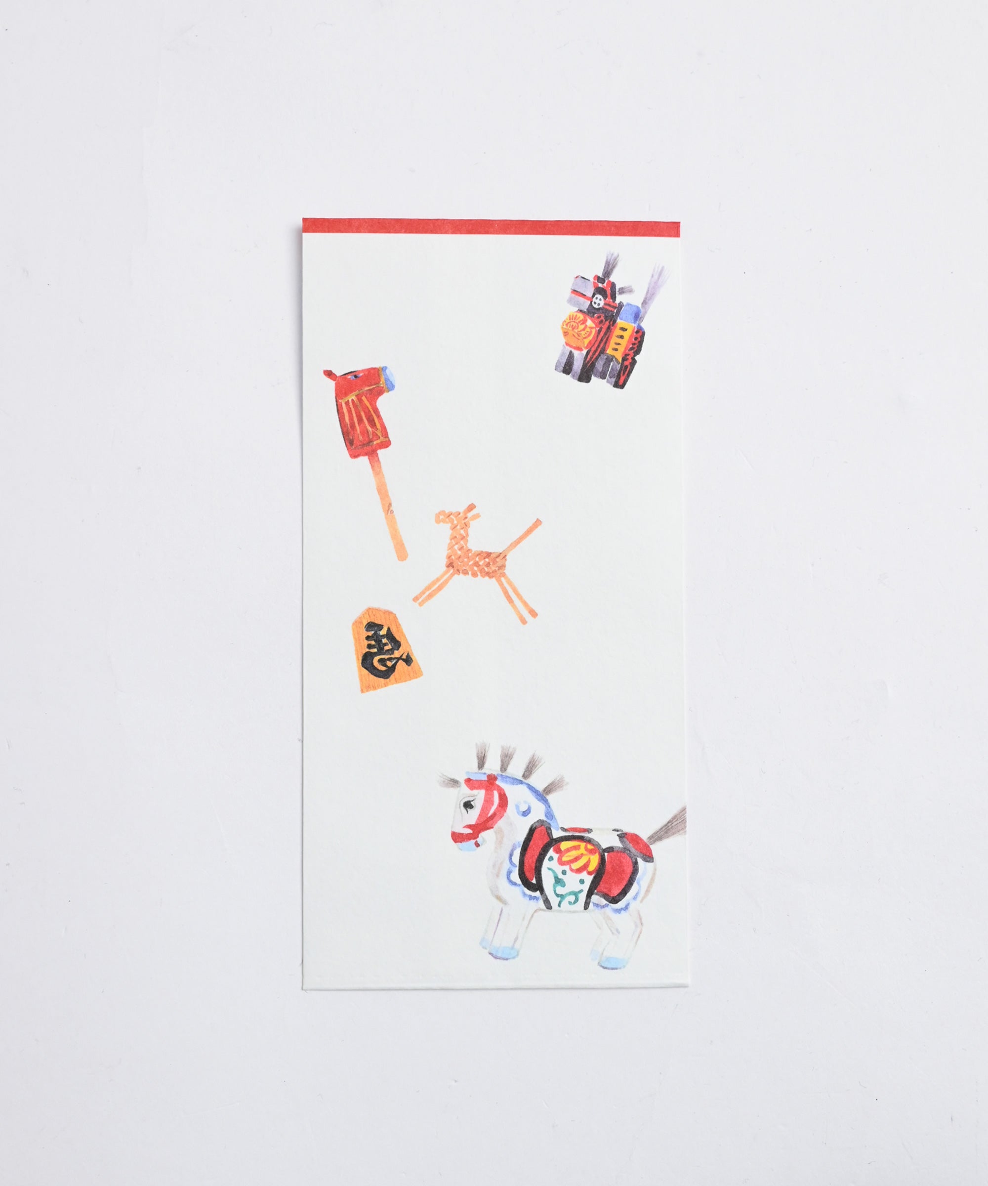 デザイナー書き下ろしの生き生きとした馬のイラストがポイントの年賀状とポチ袋。シンプルなデザインで子供から大人まで幅広い方に渡せるのも嬉しいポイント。