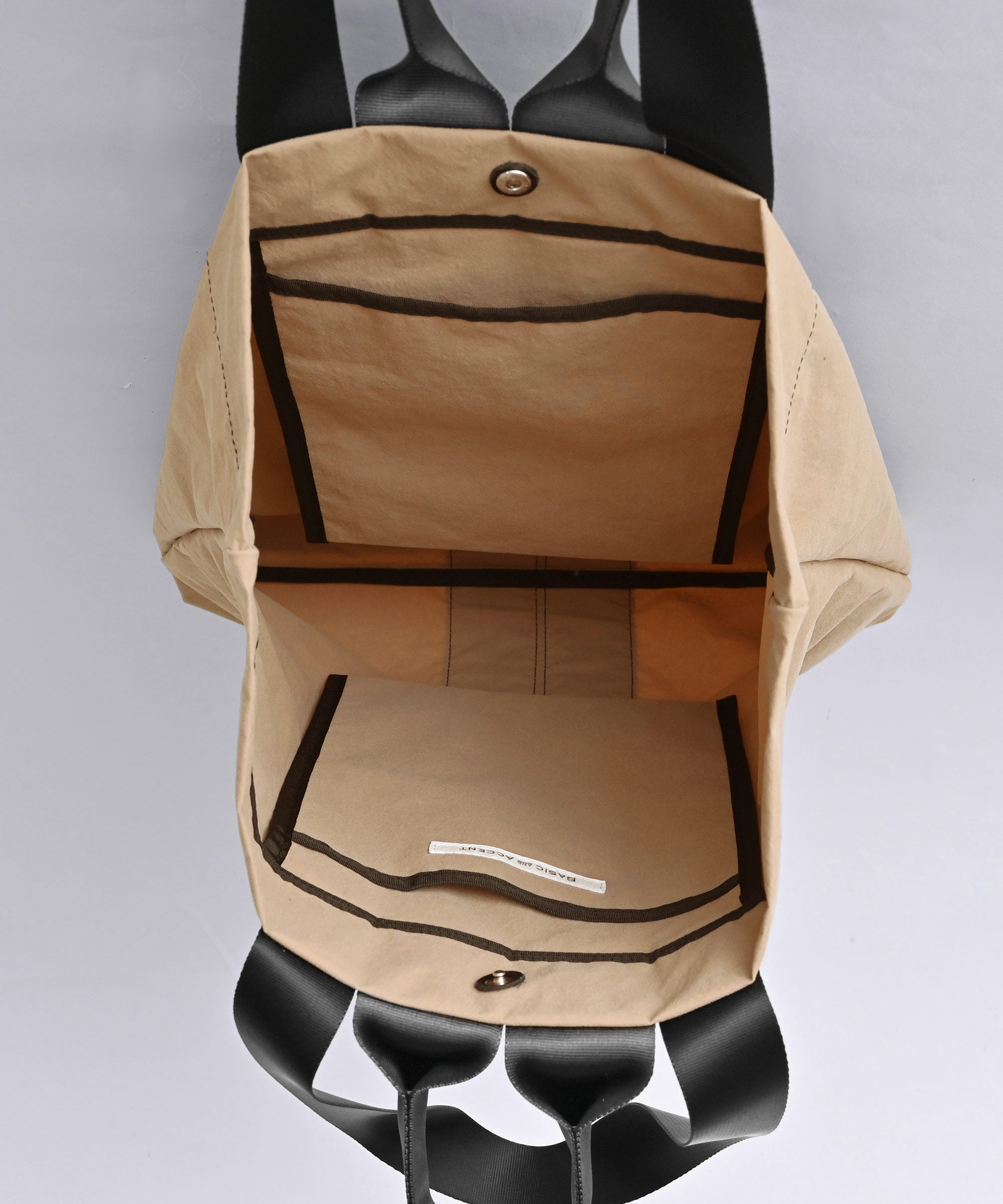 A4サイズの書類・ノートパソコンも収納できる縦長のサイズ感とメンズライクなハンドル、配色のハンドルとツヤ感のある両面レザーポケットが印象的なBASIC AND ACCENTオリジナルのデザインバッグです。