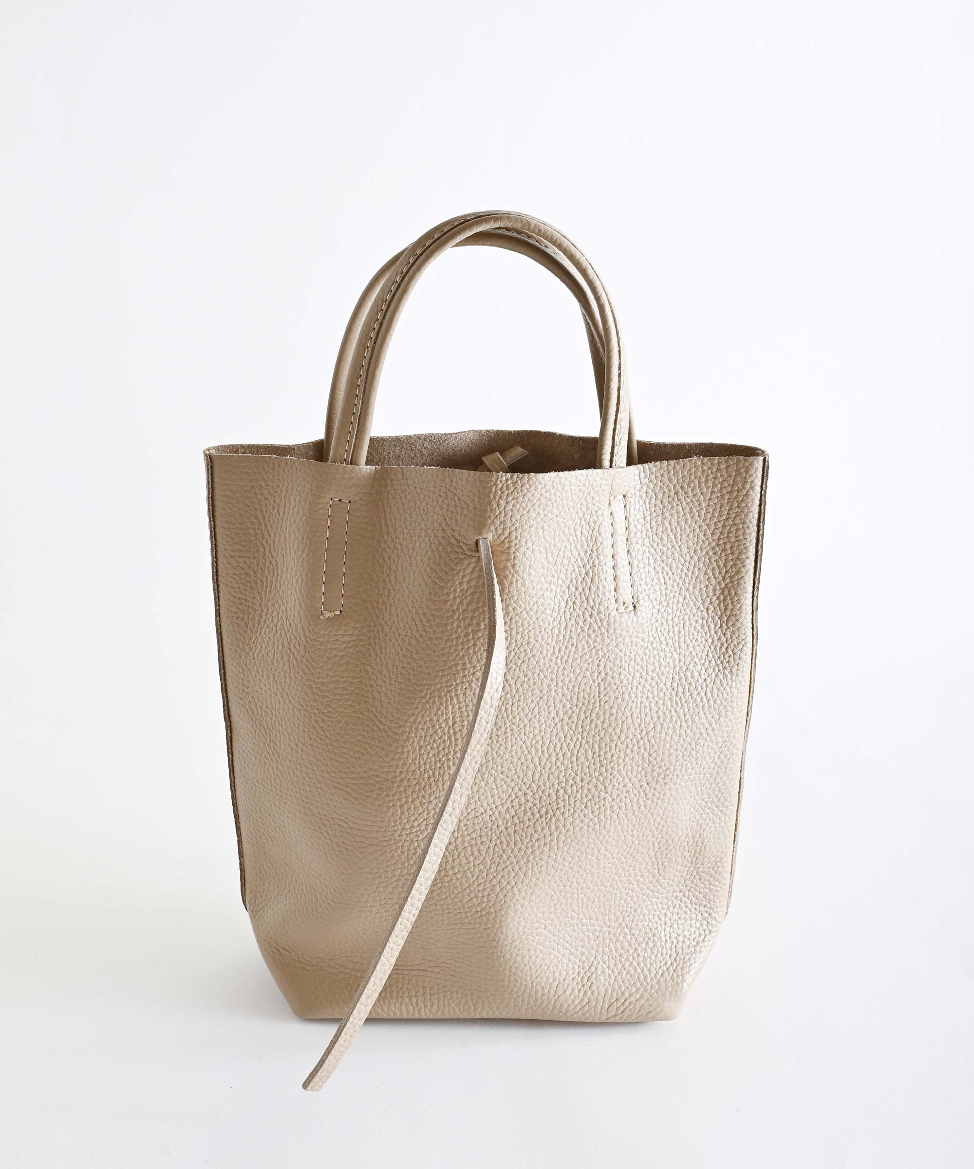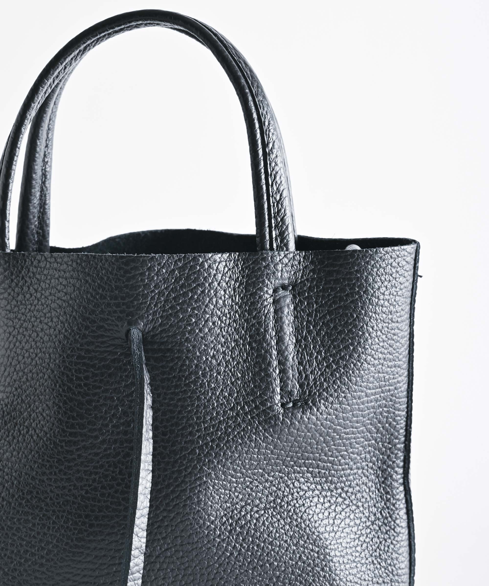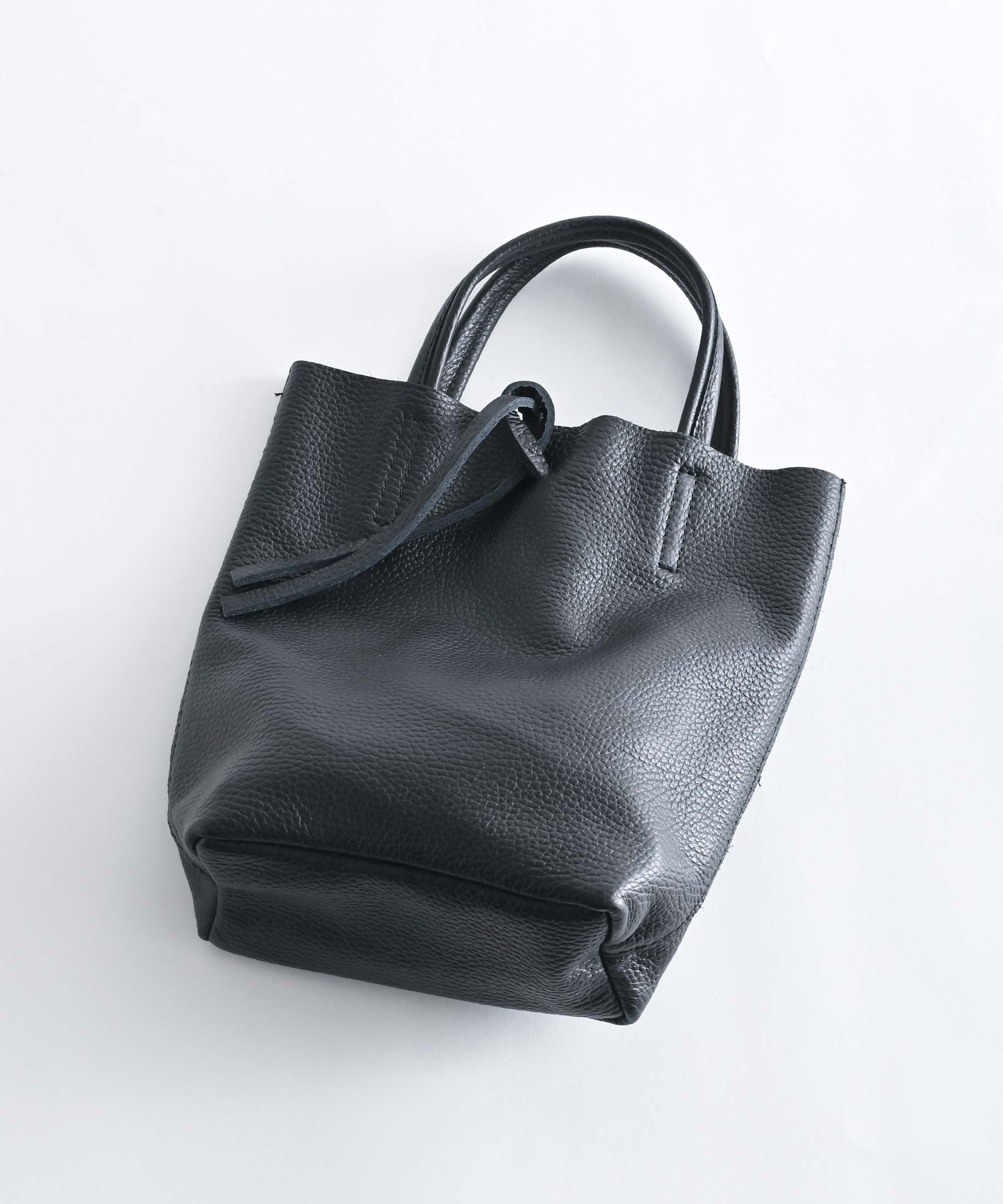 コンパクトなのにペットボトルや傘・長財布などもしっかり収納できる絶妙なサイズ感のレザーバッグ。