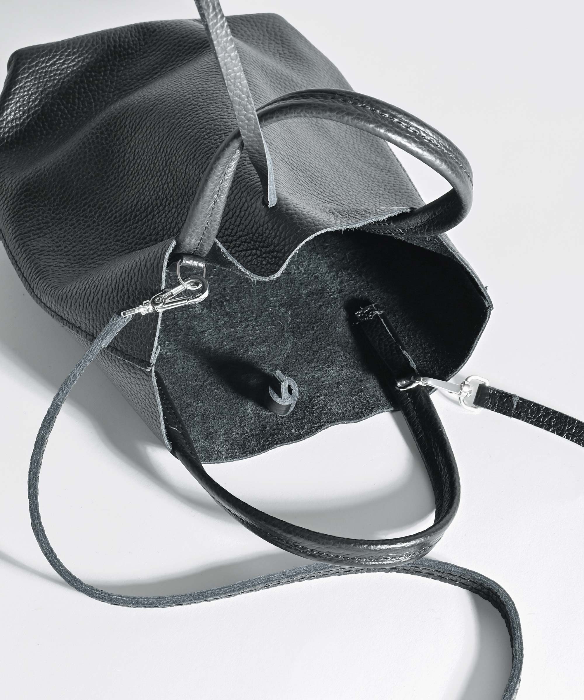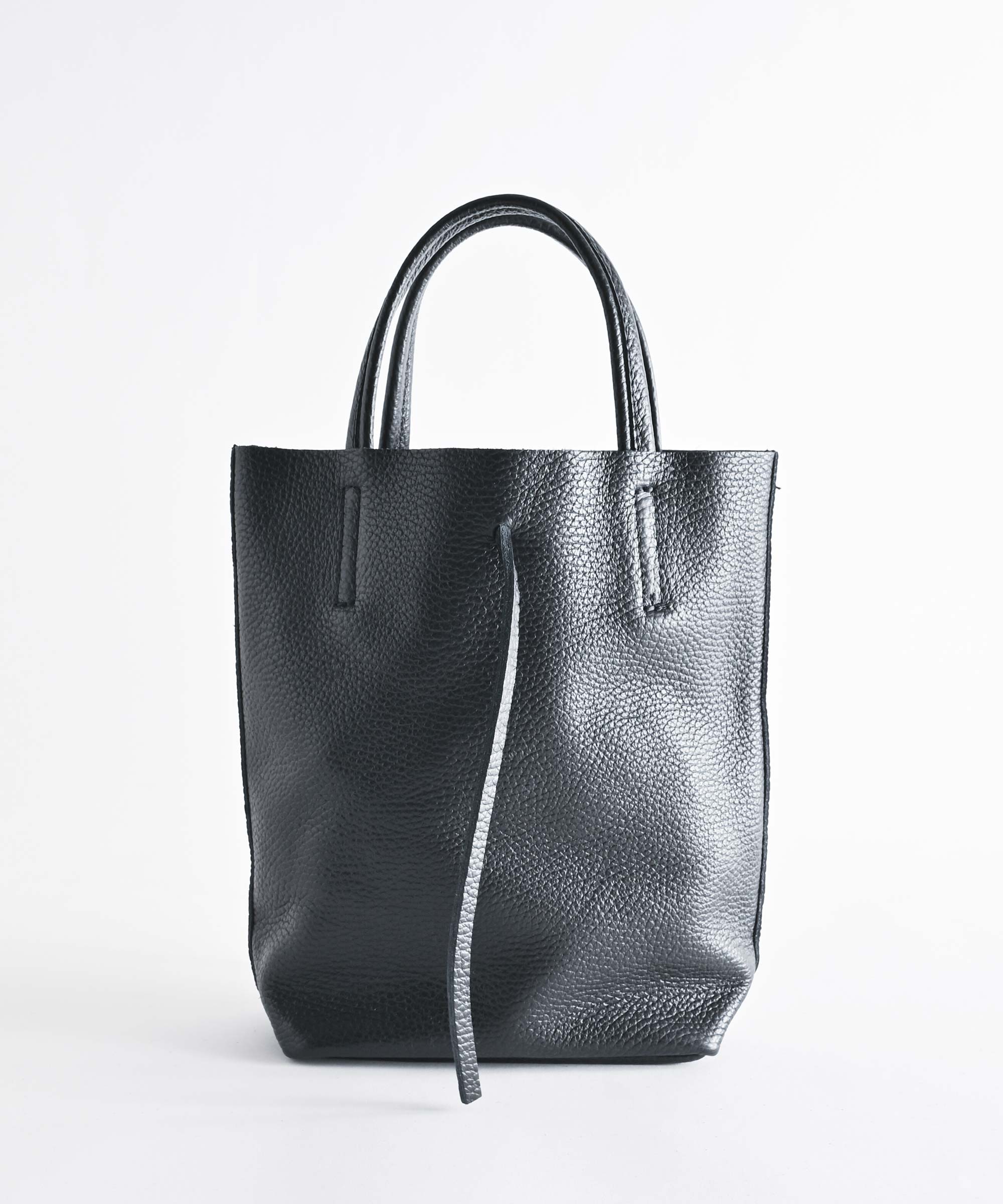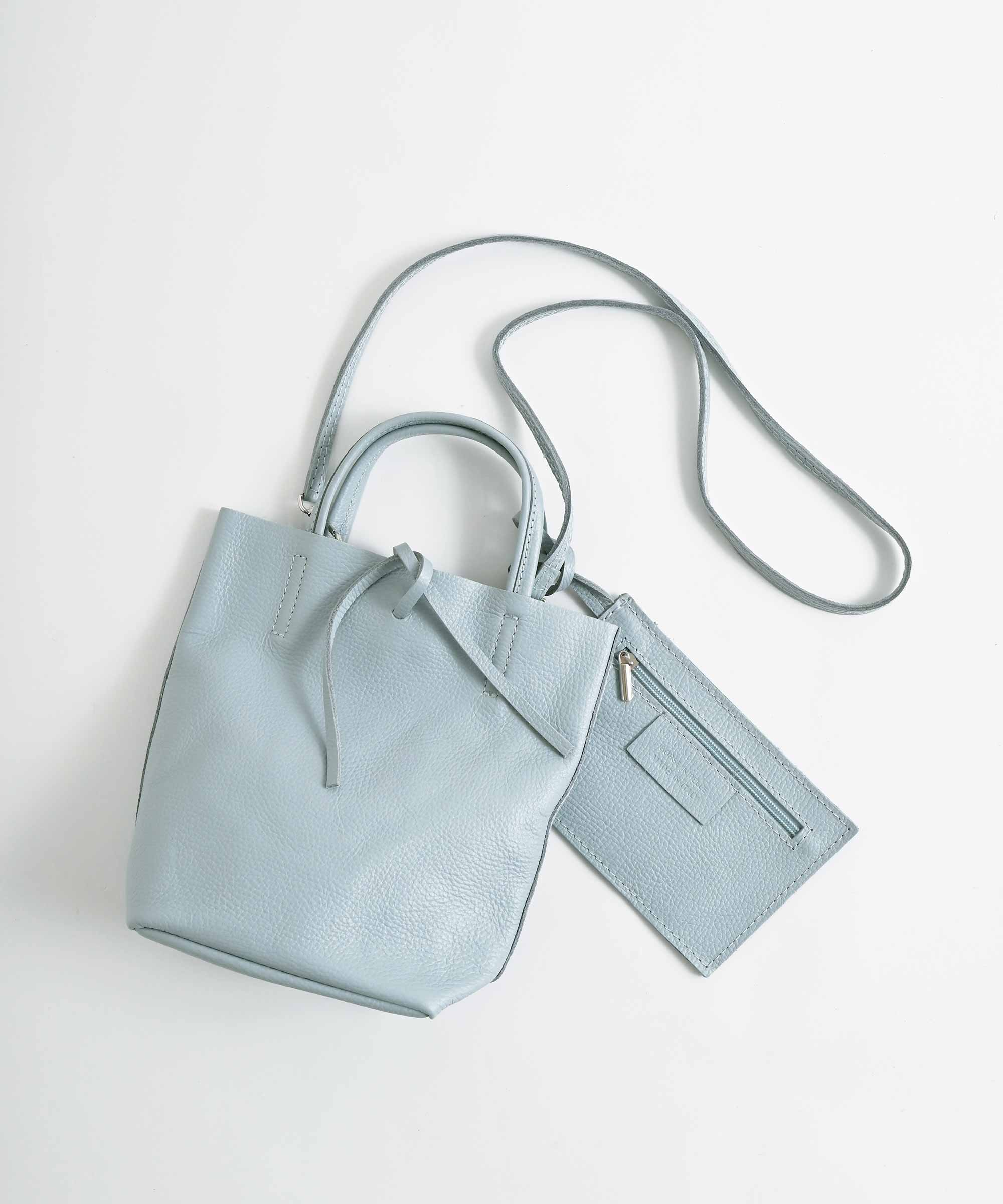 コンパクトなのにペットボトルや傘・長財布などもしっかり収納できる絶妙なサイズ感のレザーバッグ。