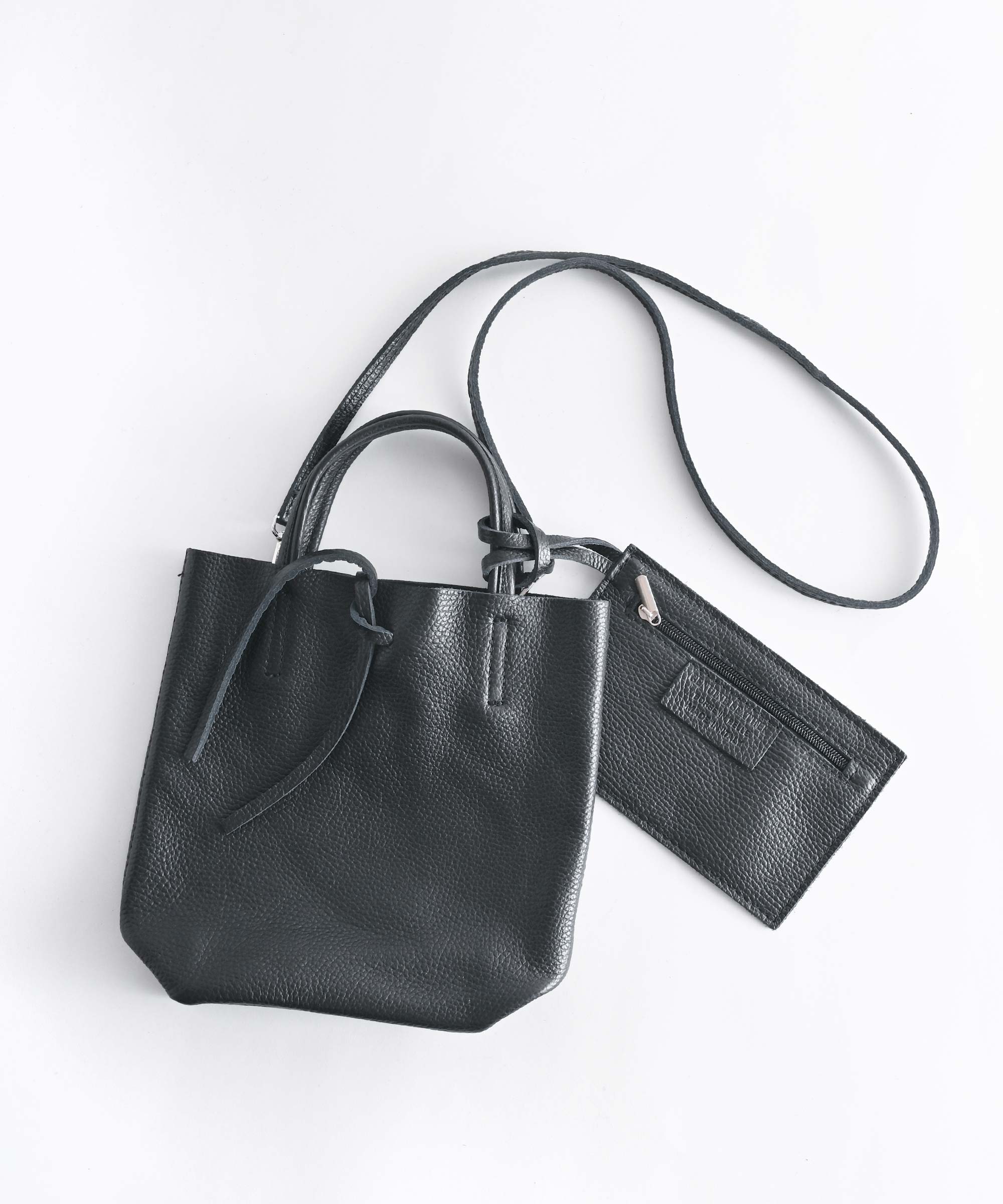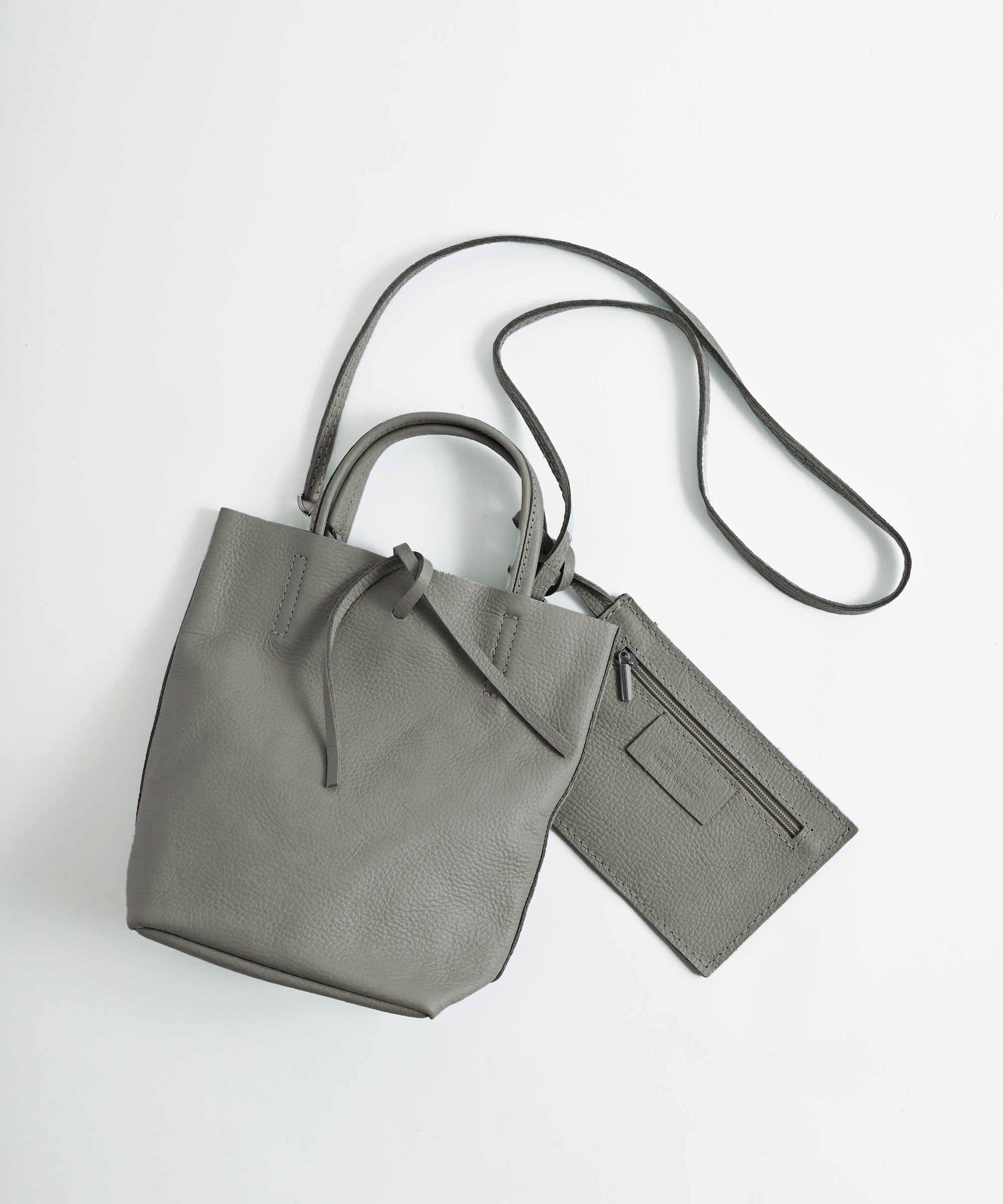内ポケットがない代わりに取り外し可能な同素材のミニポーチ付きで荷物の量に合わせて使い分ける事ができます。