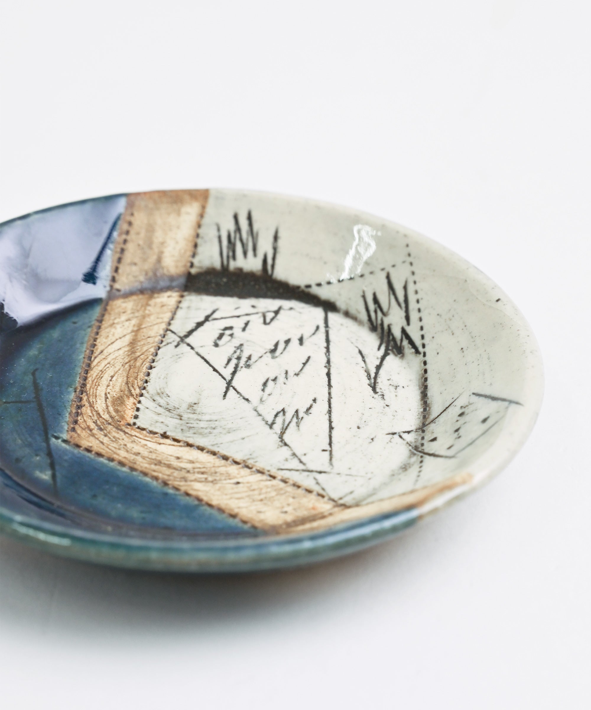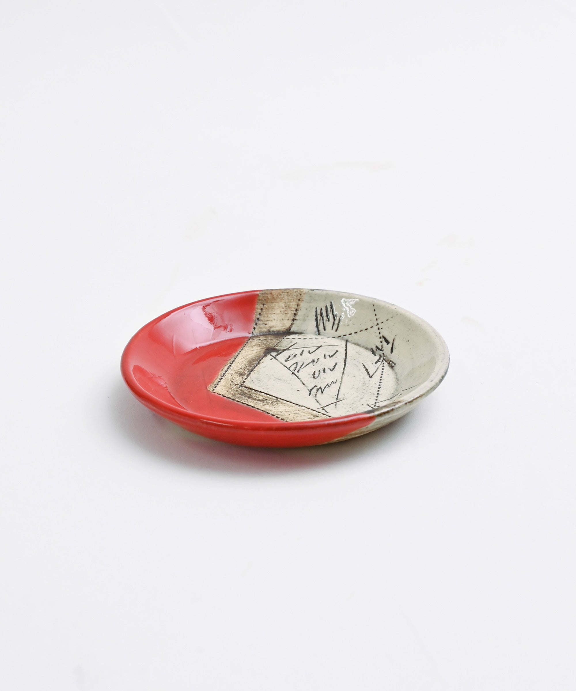 二色線刻 3.5寸皿