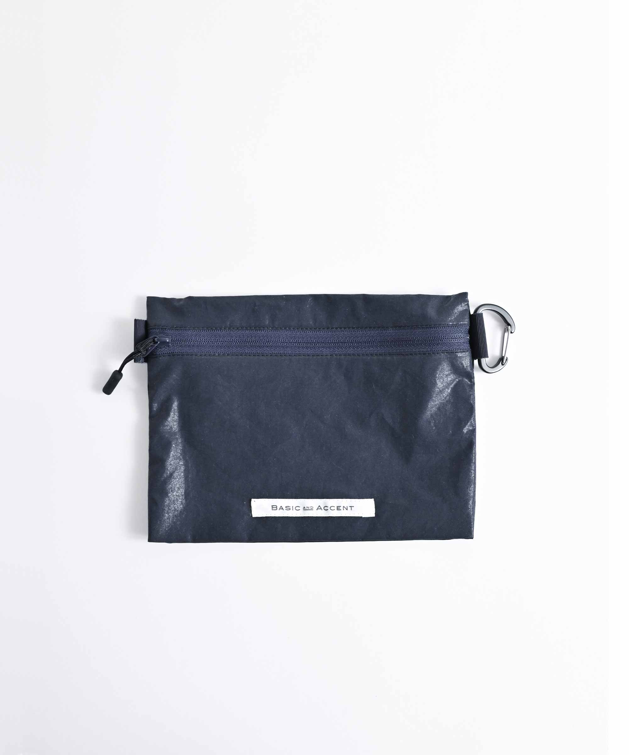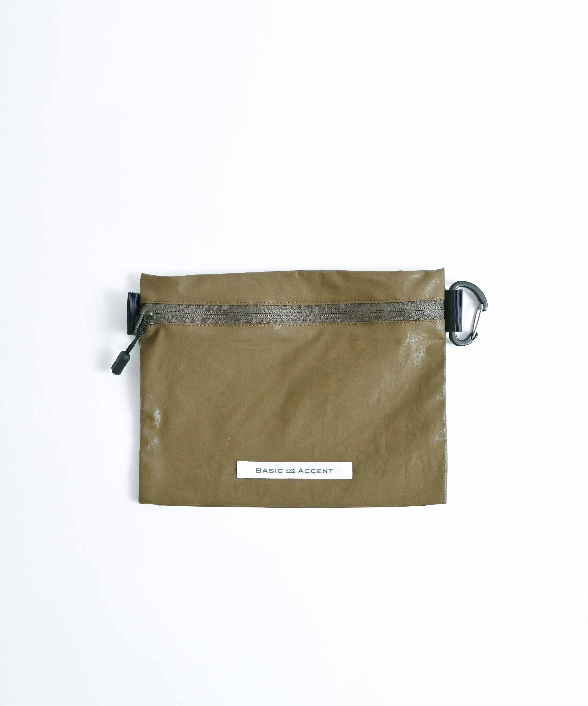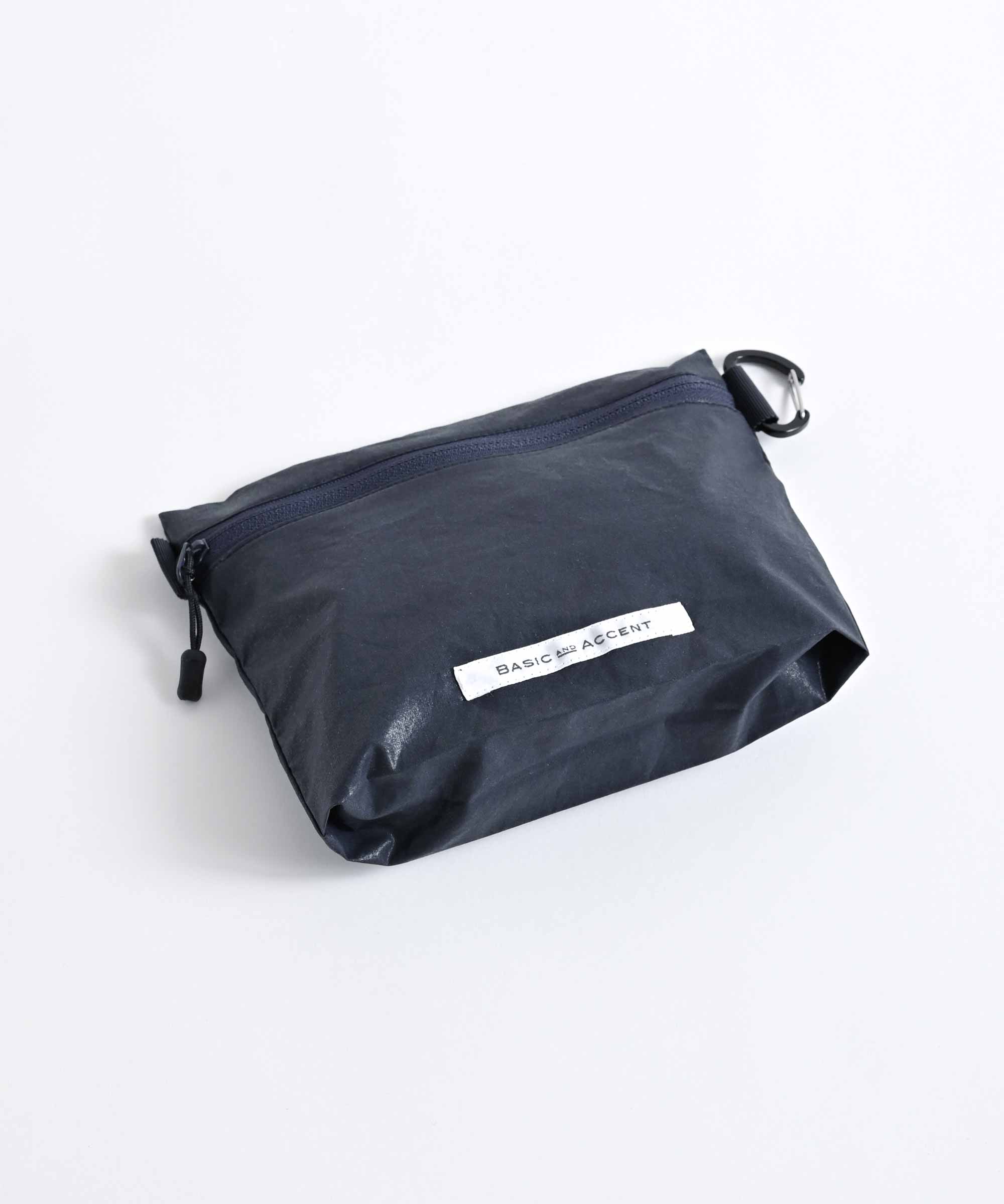 コットン100%の生地に光沢感のある加工を施したBASIC AND ACCENTオリジナルのポーチ。