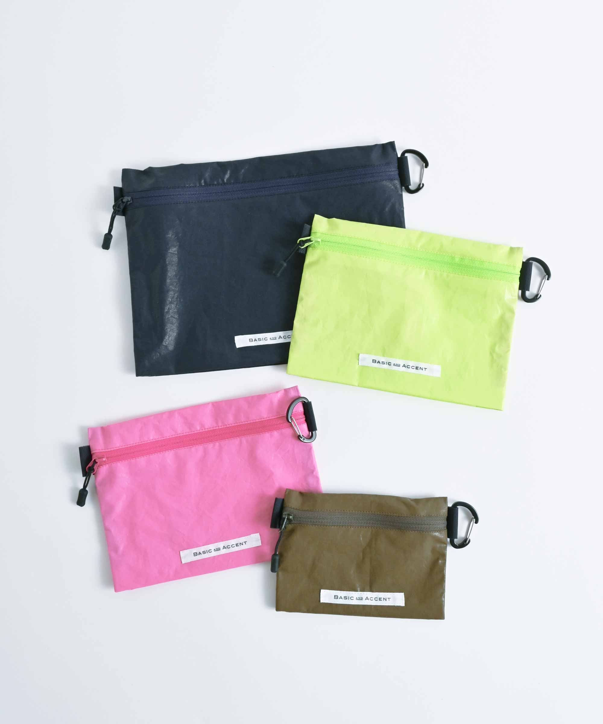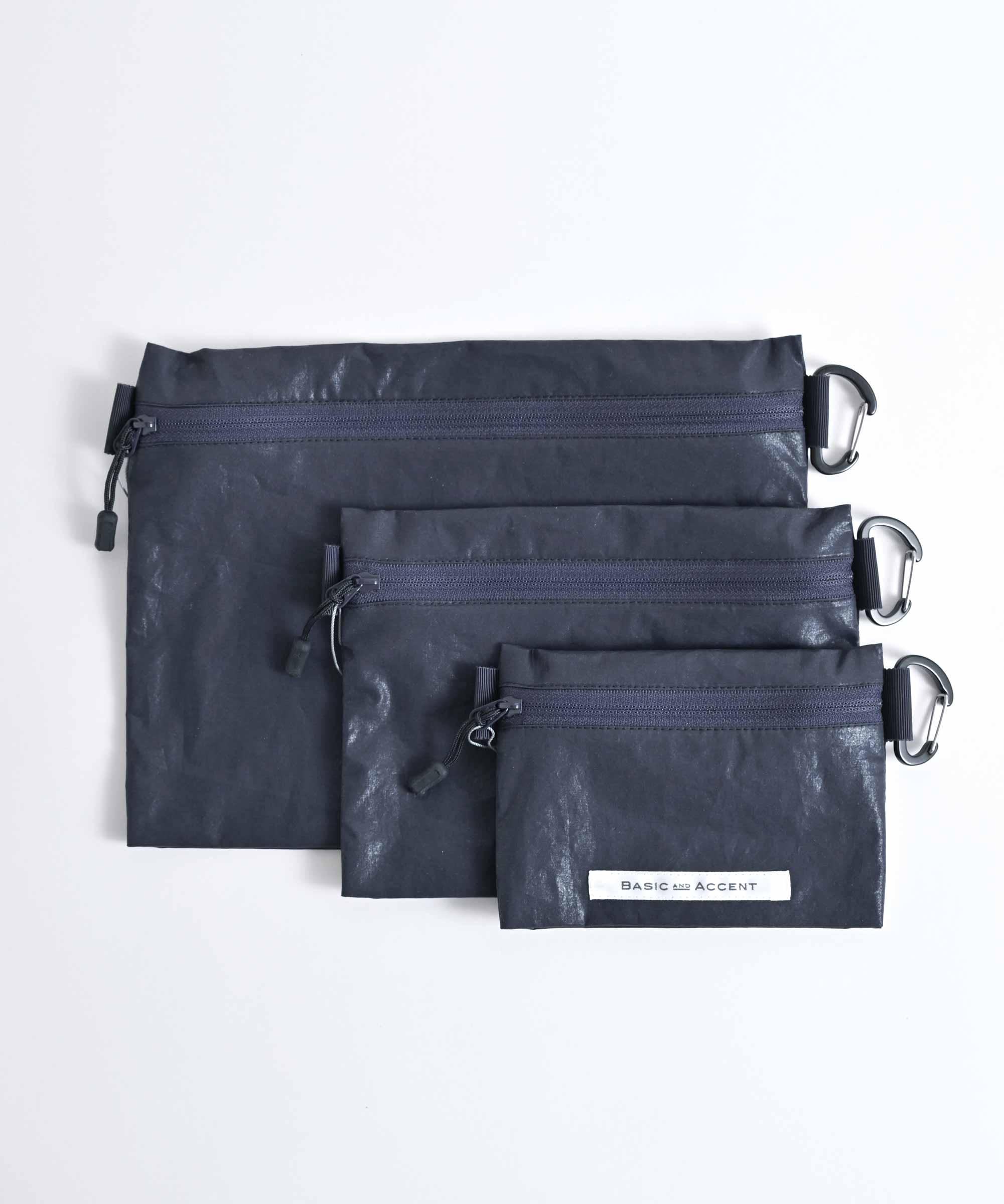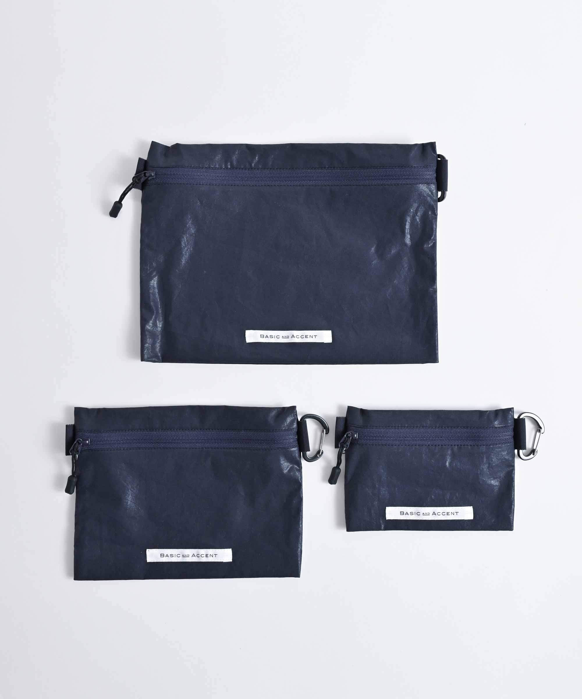 コットン100%の生地に光沢感のある加工を施したBASIC AND ACCENTオリジナルのポーチ。