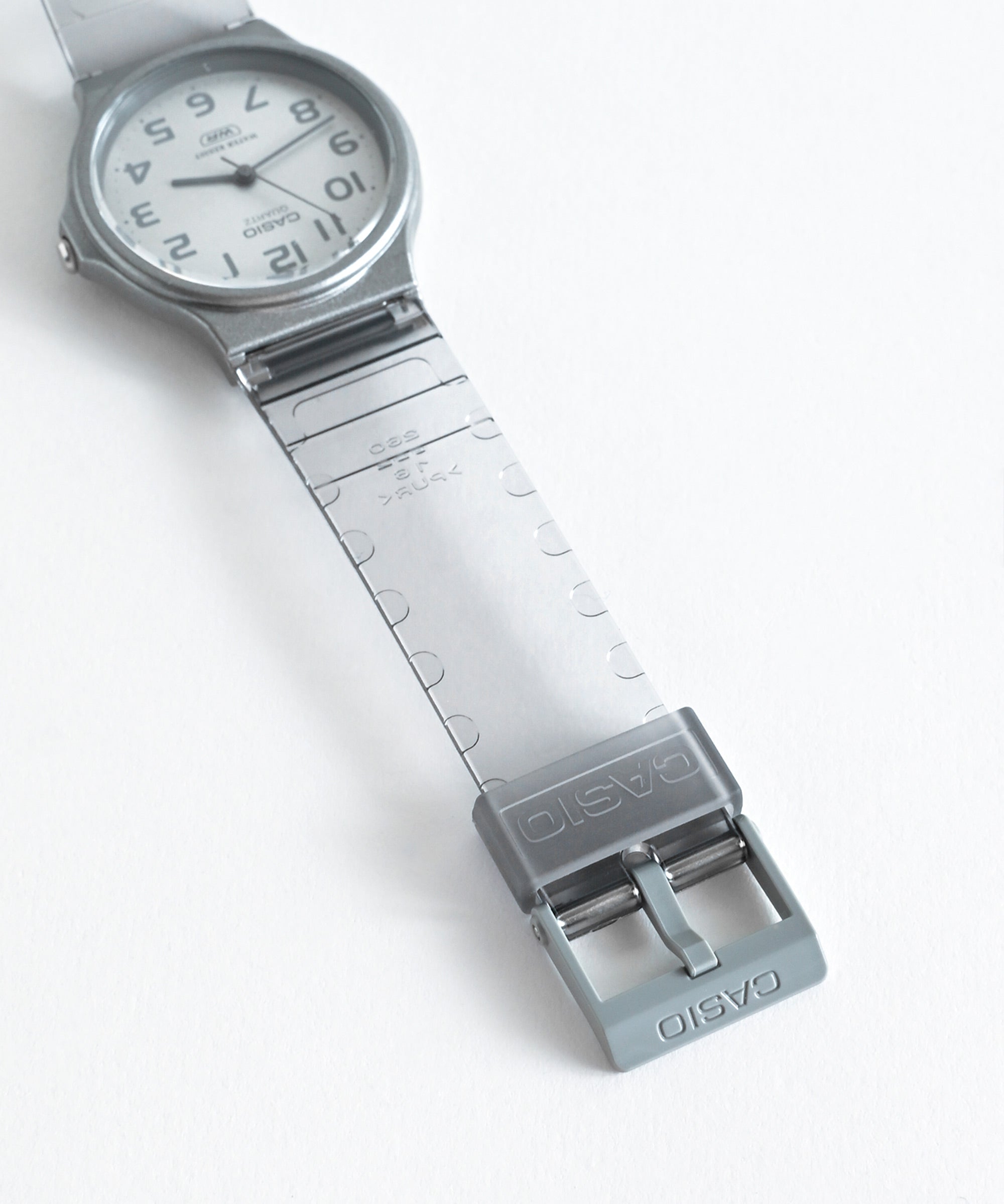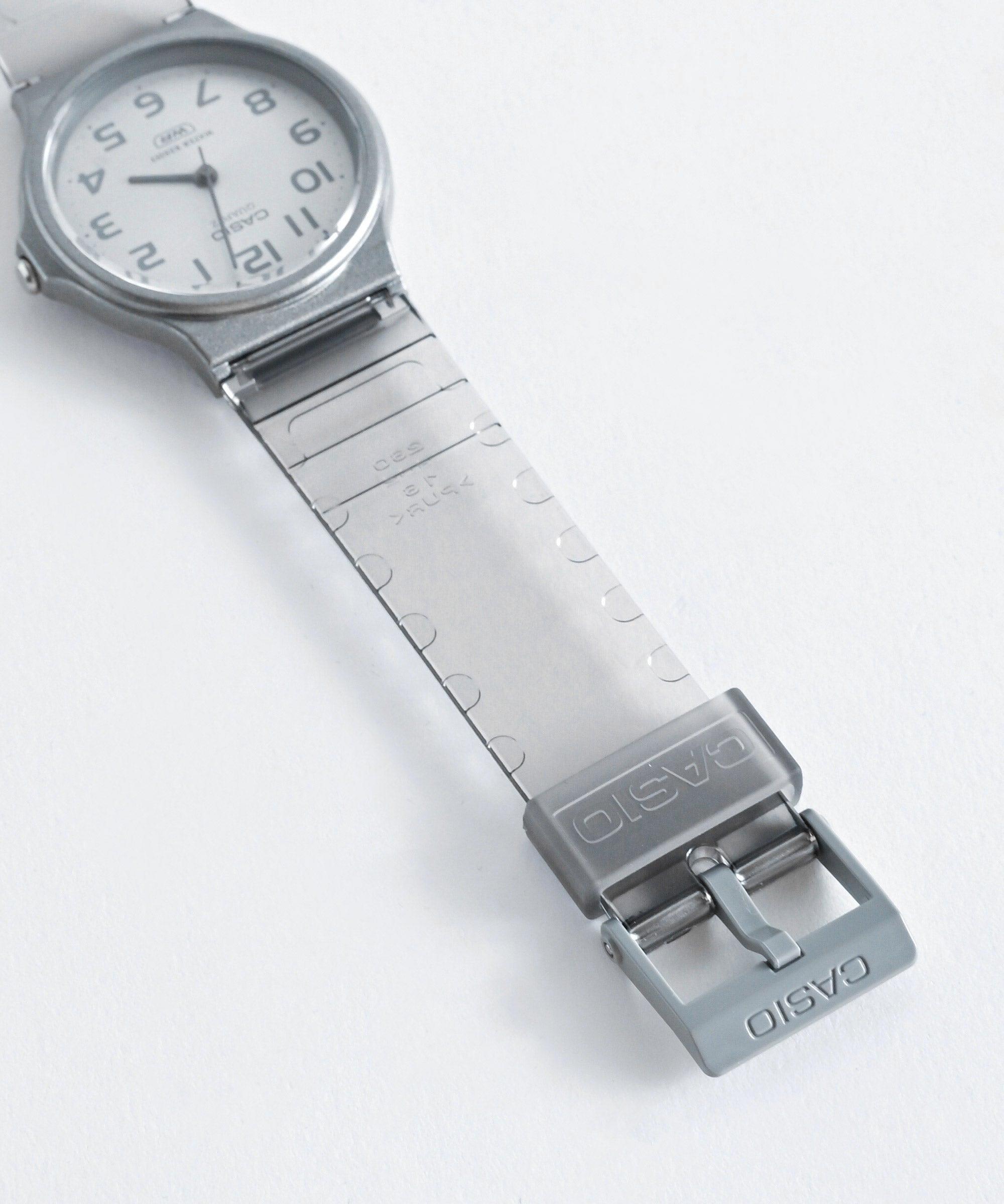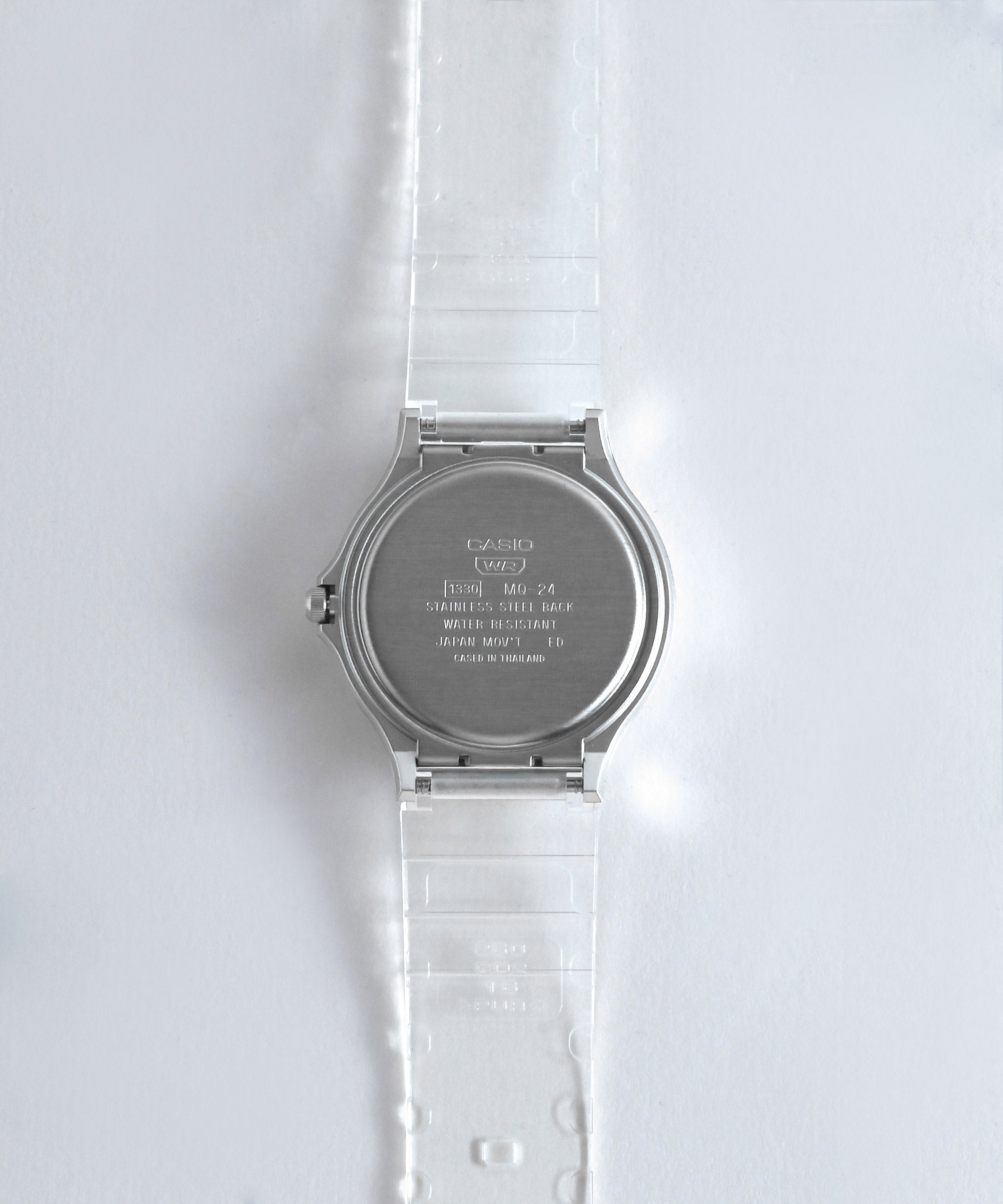 CASIO(カシオ)のロングセラーモデルMQ-24のカラフルなスケルトンカラータイプです。