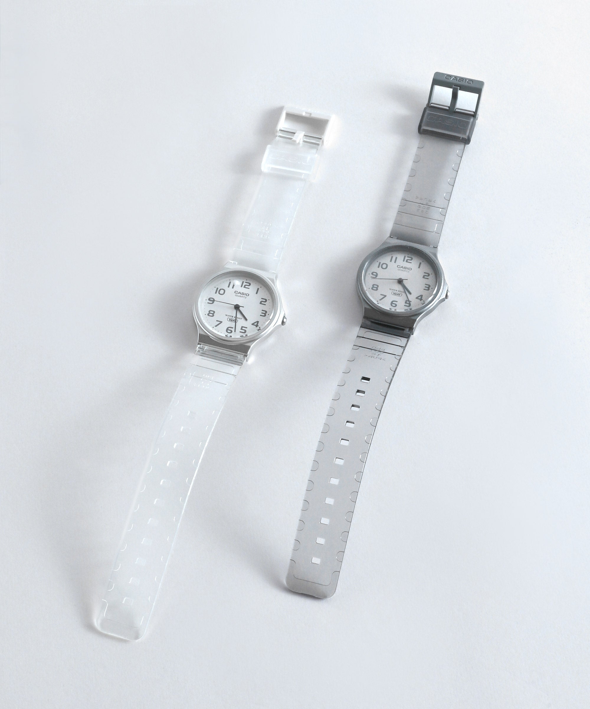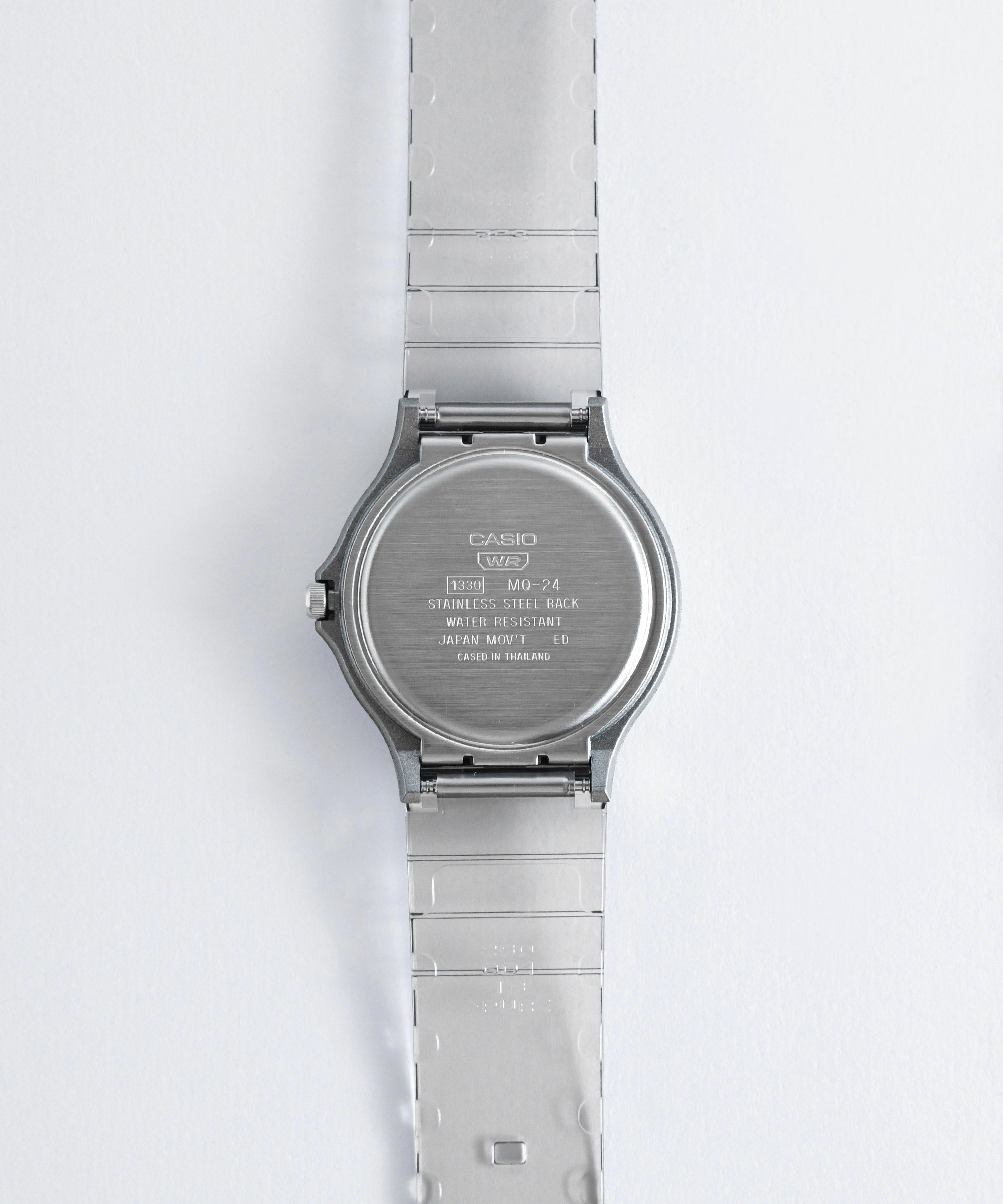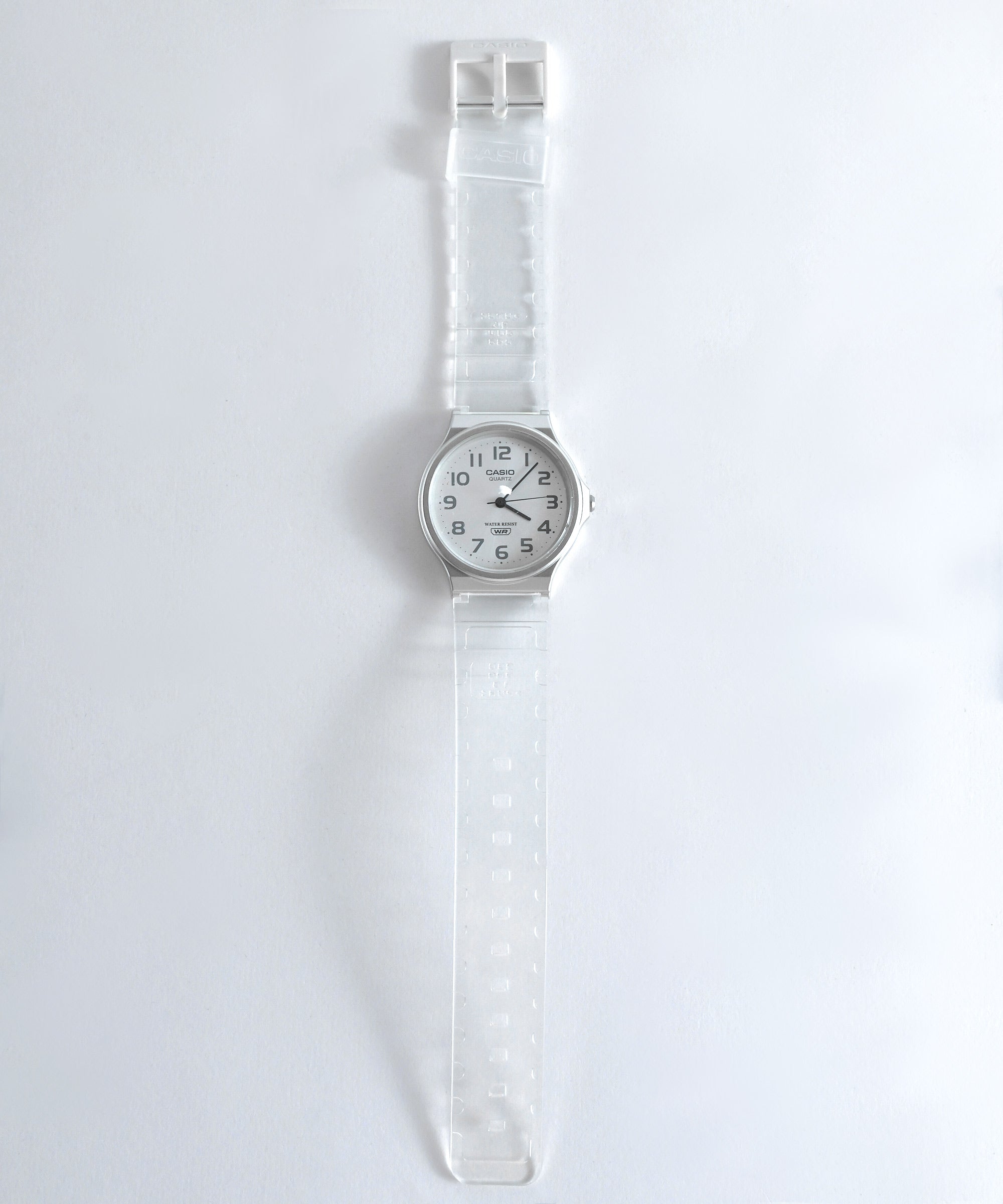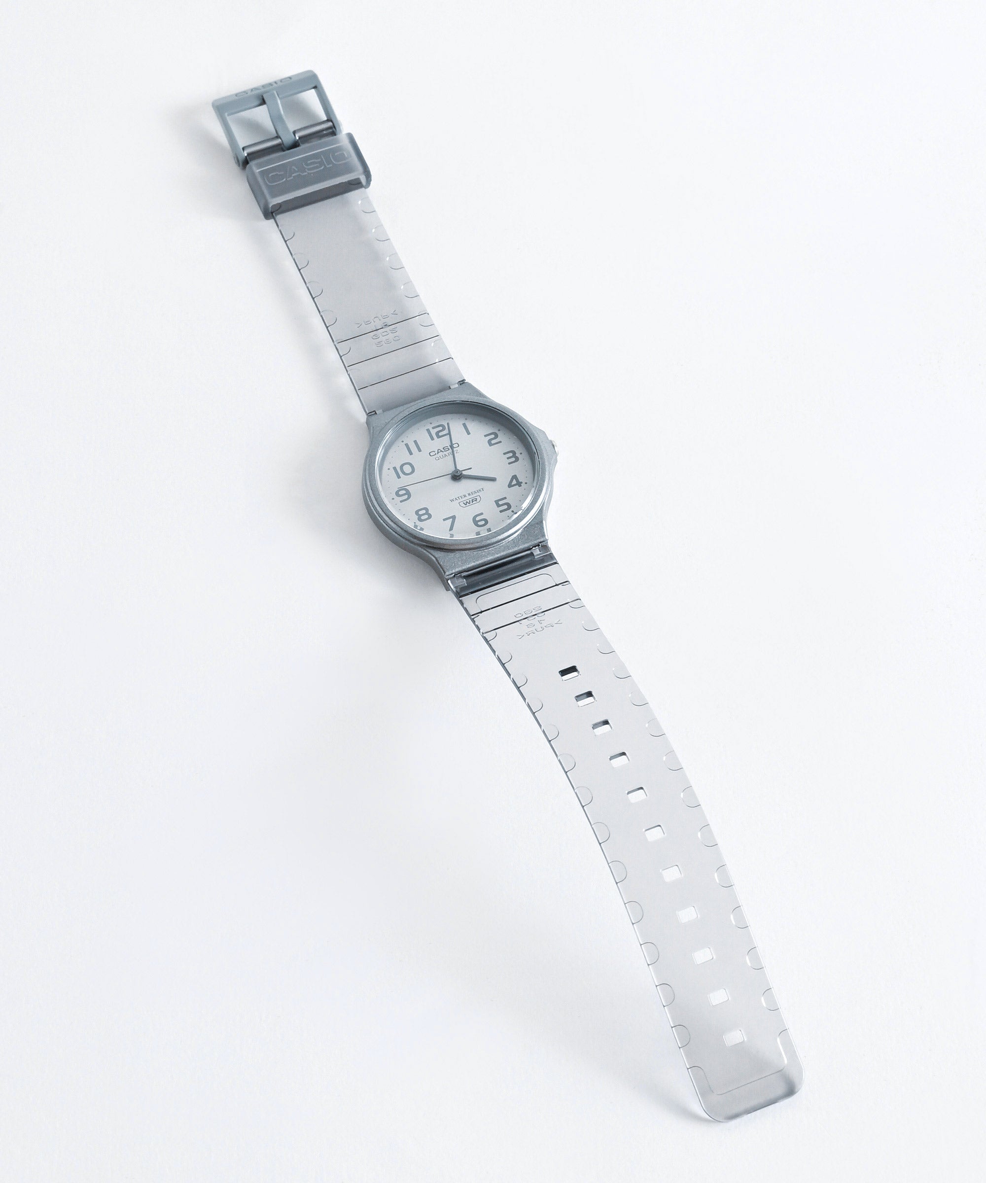 CASIO(カシオ)のロングセラーモデルMQ-24のカラフルなスケルトンカラータイプです。