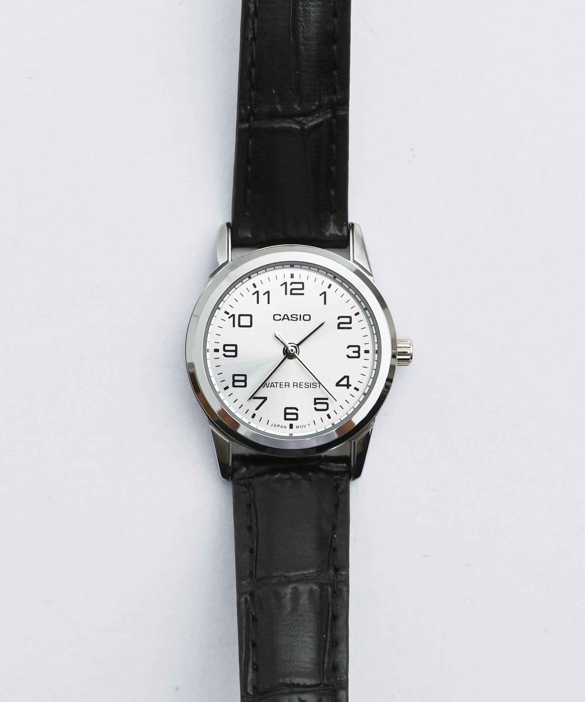 カシオLTP-V001は、公園の時計を想起させるプレーンなデザインの腕時計です。一番の特徴は、時刻が読み取りやすいこと。算用数字が鮮明にプリントされているため、ひと目で時刻が確認可能。長針と短針は、鉛筆のような形をしたペンシル針で、デザイン性も兼ね備えています。ホワイトとゴールドの文字盤は、軽やかで清楚な顔立ちです。シルバーとブラックの文字盤は、四方に光を反射して、太陽が光を放つかのように輝きます。