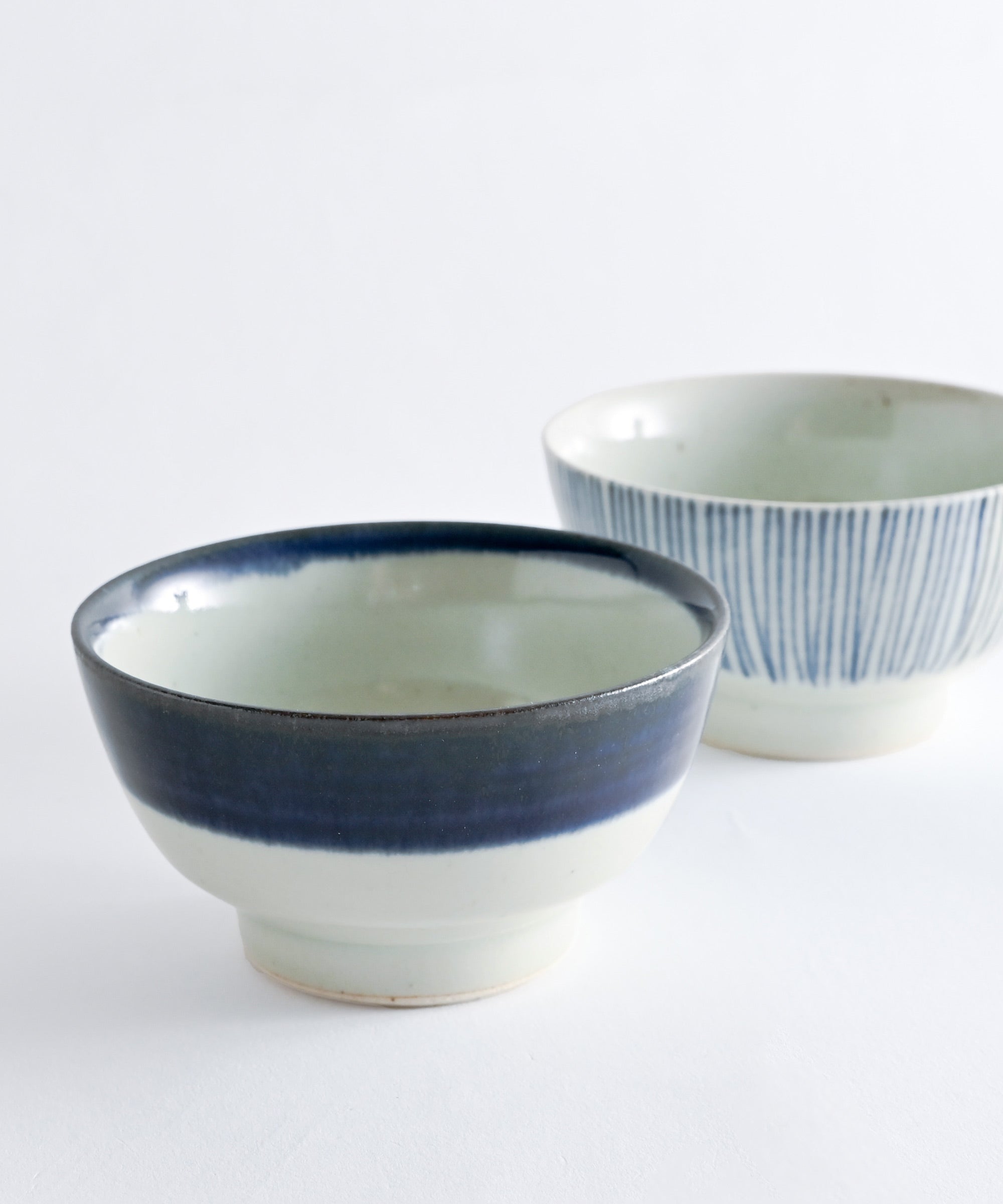 庶民の食文化の発展に大きな影響を与えた波佐見焼の原点に思いを馳せて、日常で使い易い、くらわんか型の飯碗、4寸鉢を、波佐見焼の陶房青さんとBASIC AND ACCENTのコラボで制作したシリーズ。古陶磁のような鉄分が入った素材に、温かみのある灰釉を使用し風合いにこだわっています。藍色の呉須を巻かれた二色の風合いは、熟練した職人の感性を感じる仕上がりになっています。