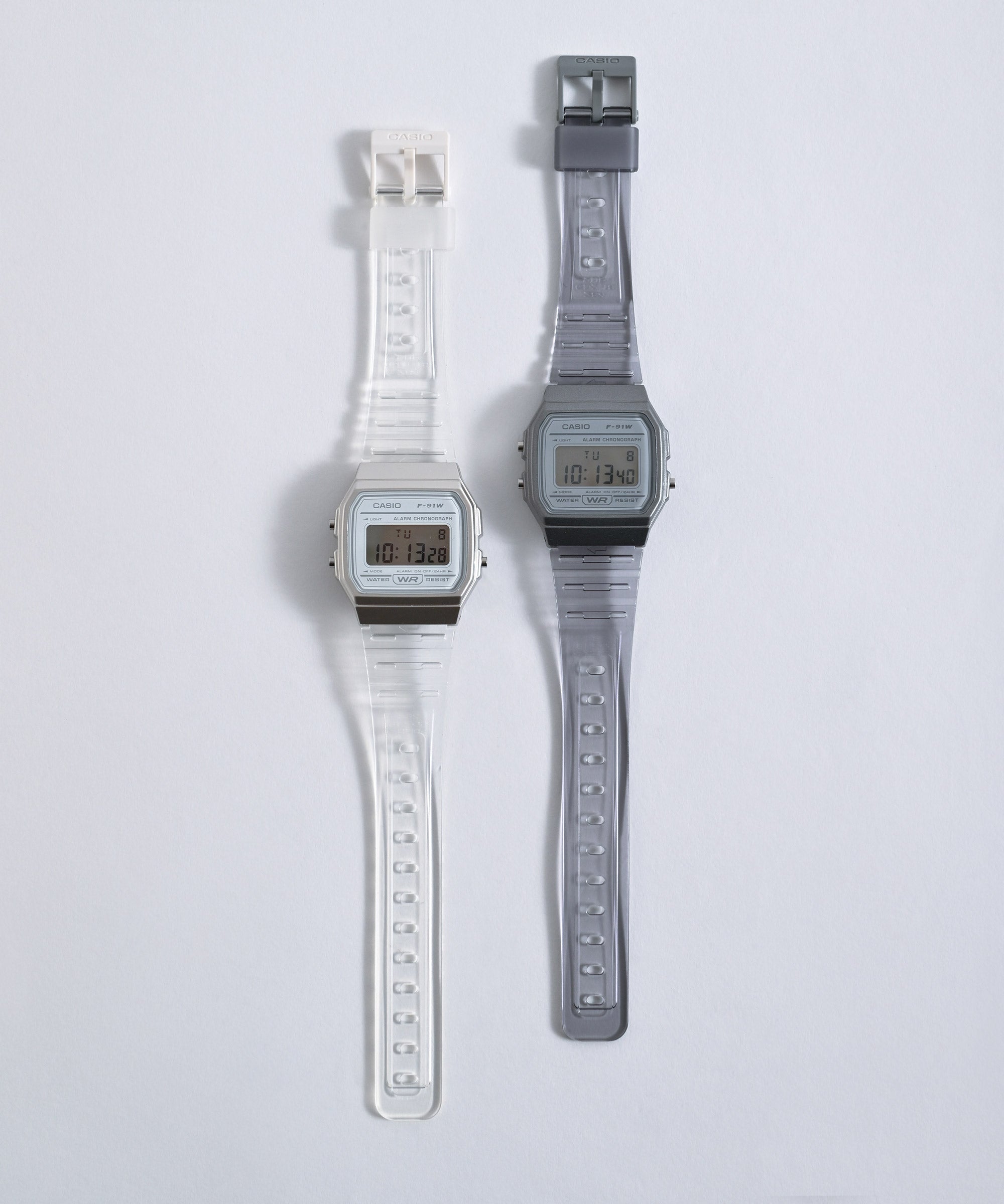 クールなメタリックと爽やかなクリアーカラーを組み合わせた、ポップなデジタルウォッチ。