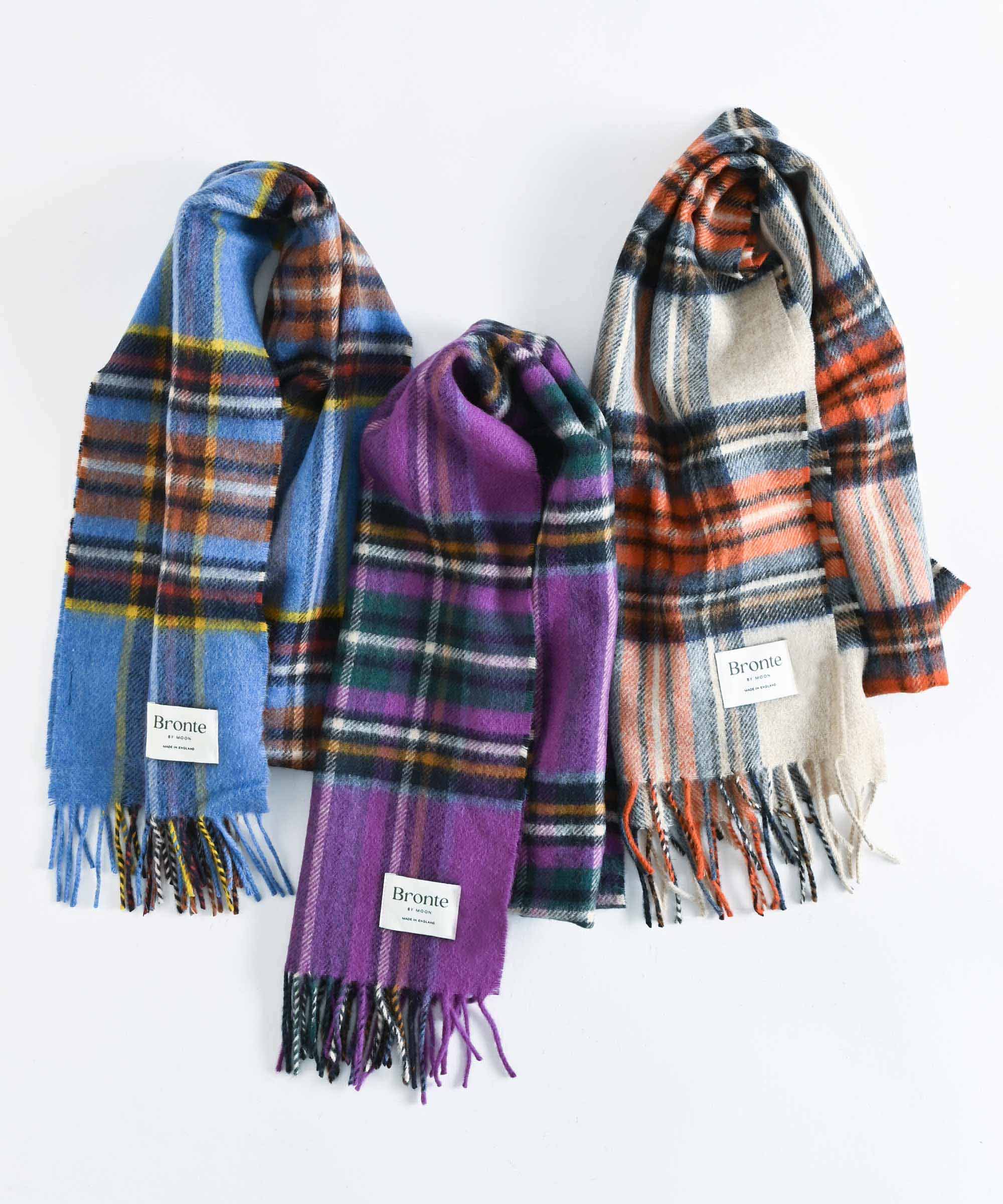 滑らかな肌触りのメリノウールを使用したチェック柄マフラー。