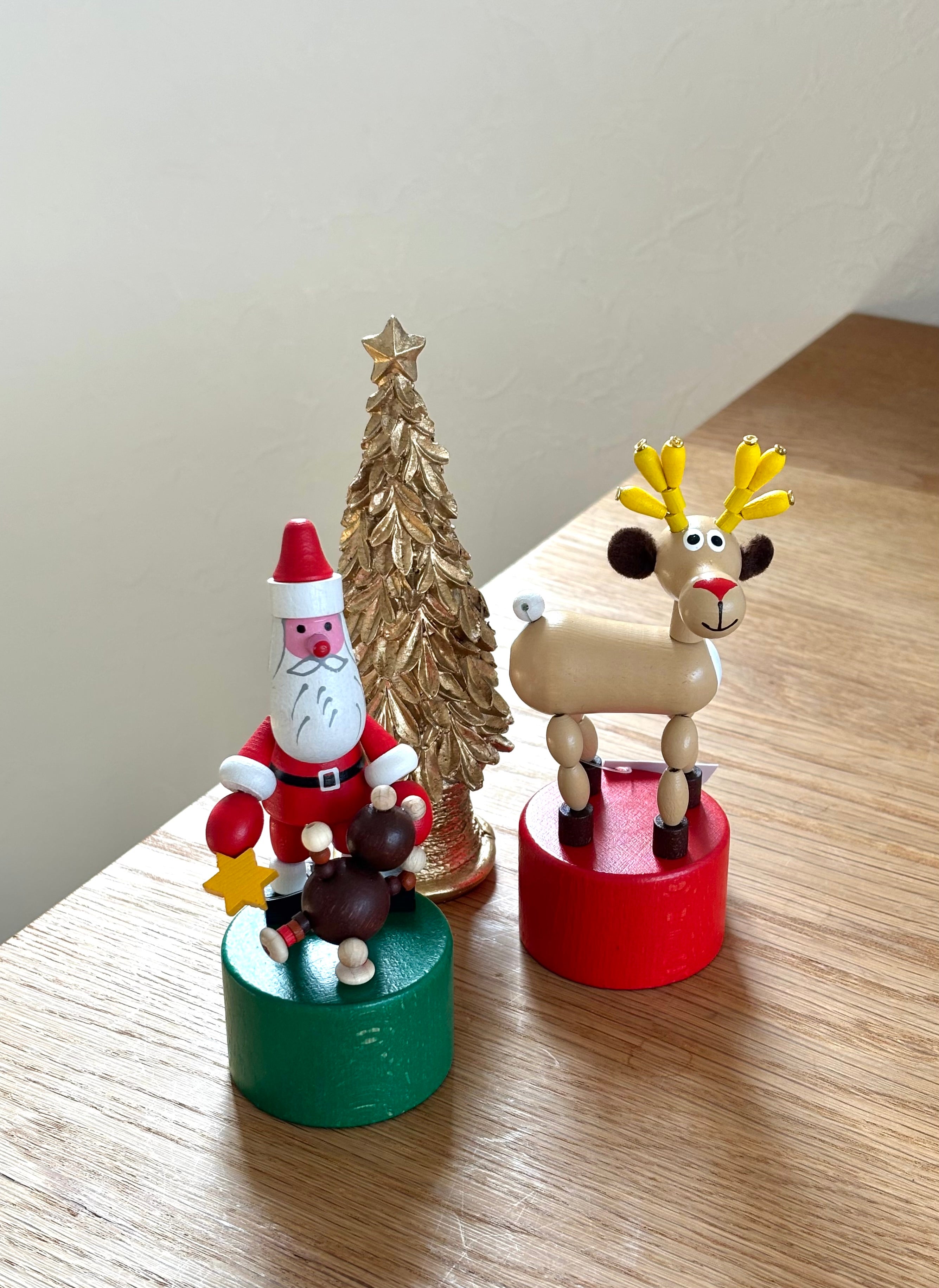 チェコで作られたトナカイの木製プッシュアップトイ。