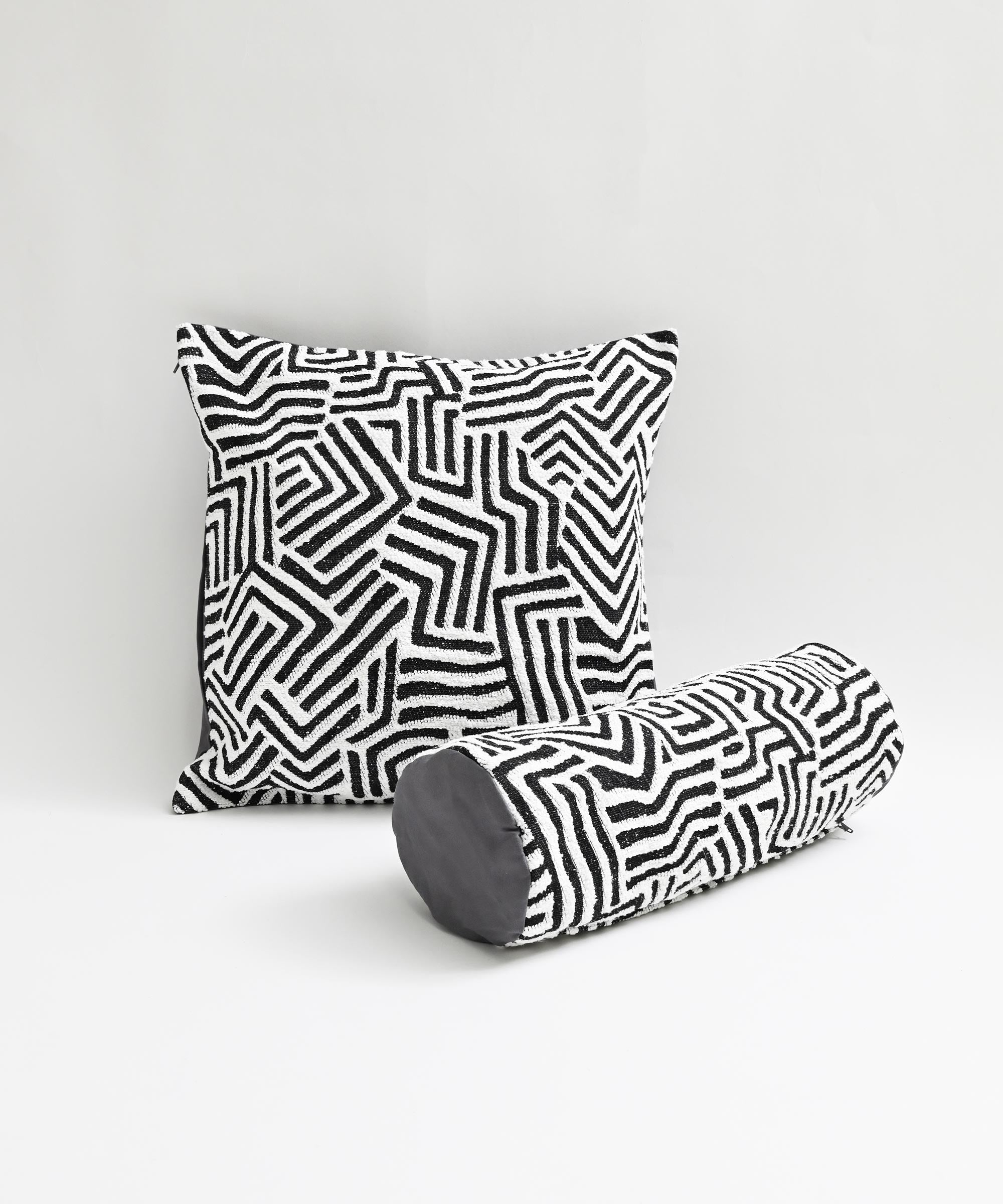 メソポタミア文明で使用された楔形文字のような幾何学柄をモノトーンでシンプルにデザインされた柄で、お部屋のアクセントにおすすめ。