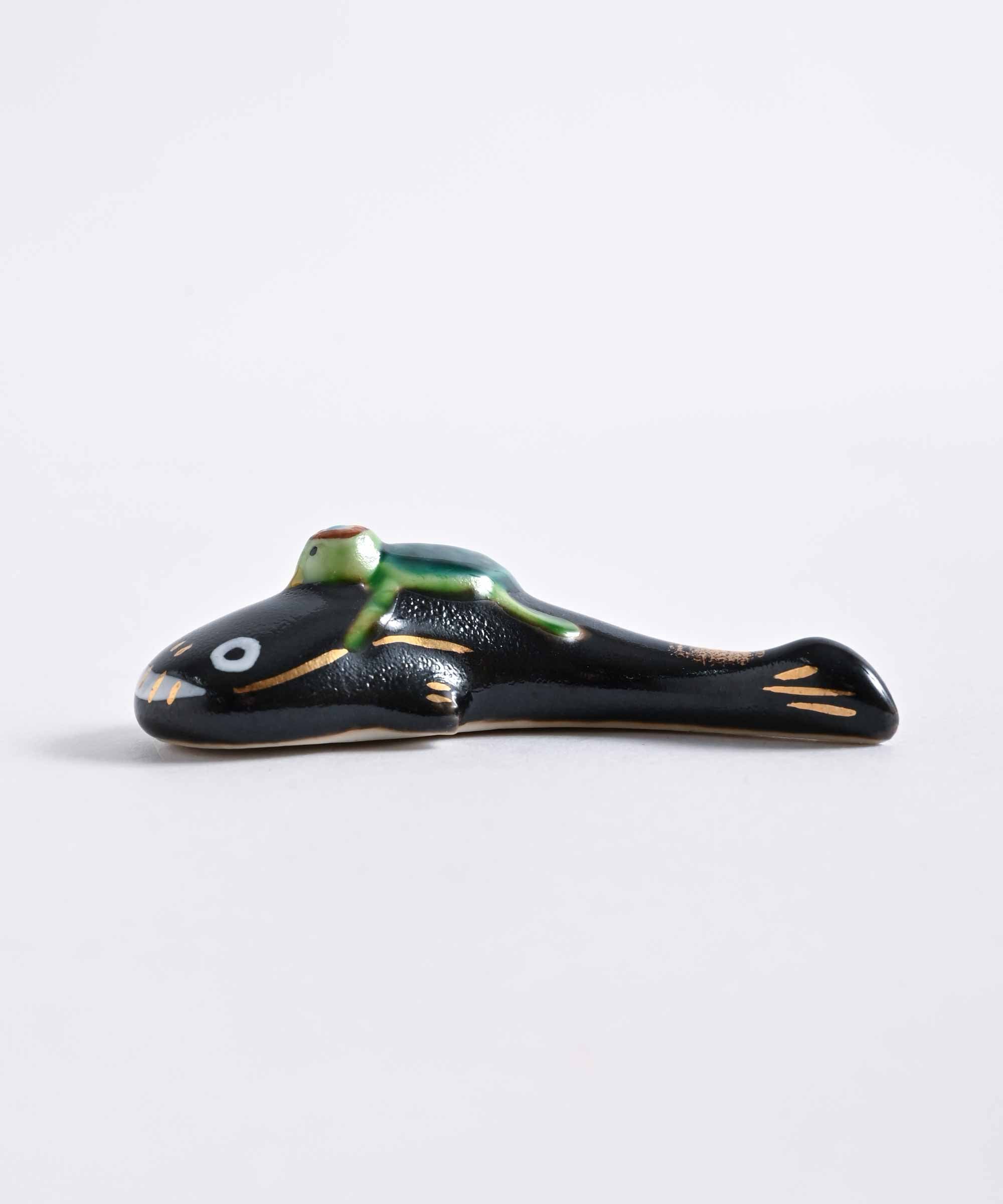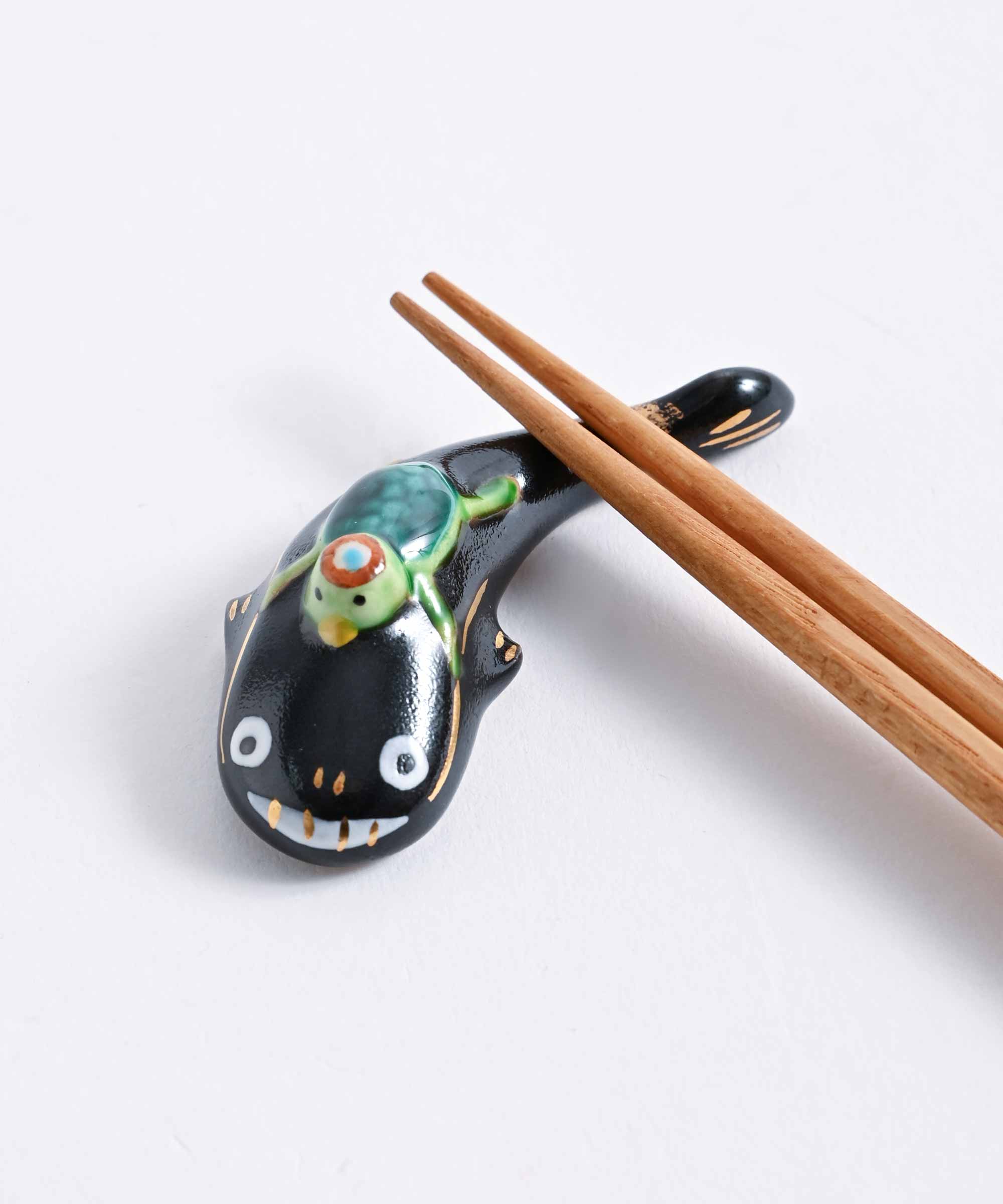 京焼・清水焼の窯元・紫泉窯のかっぱなまずの箸置きです。