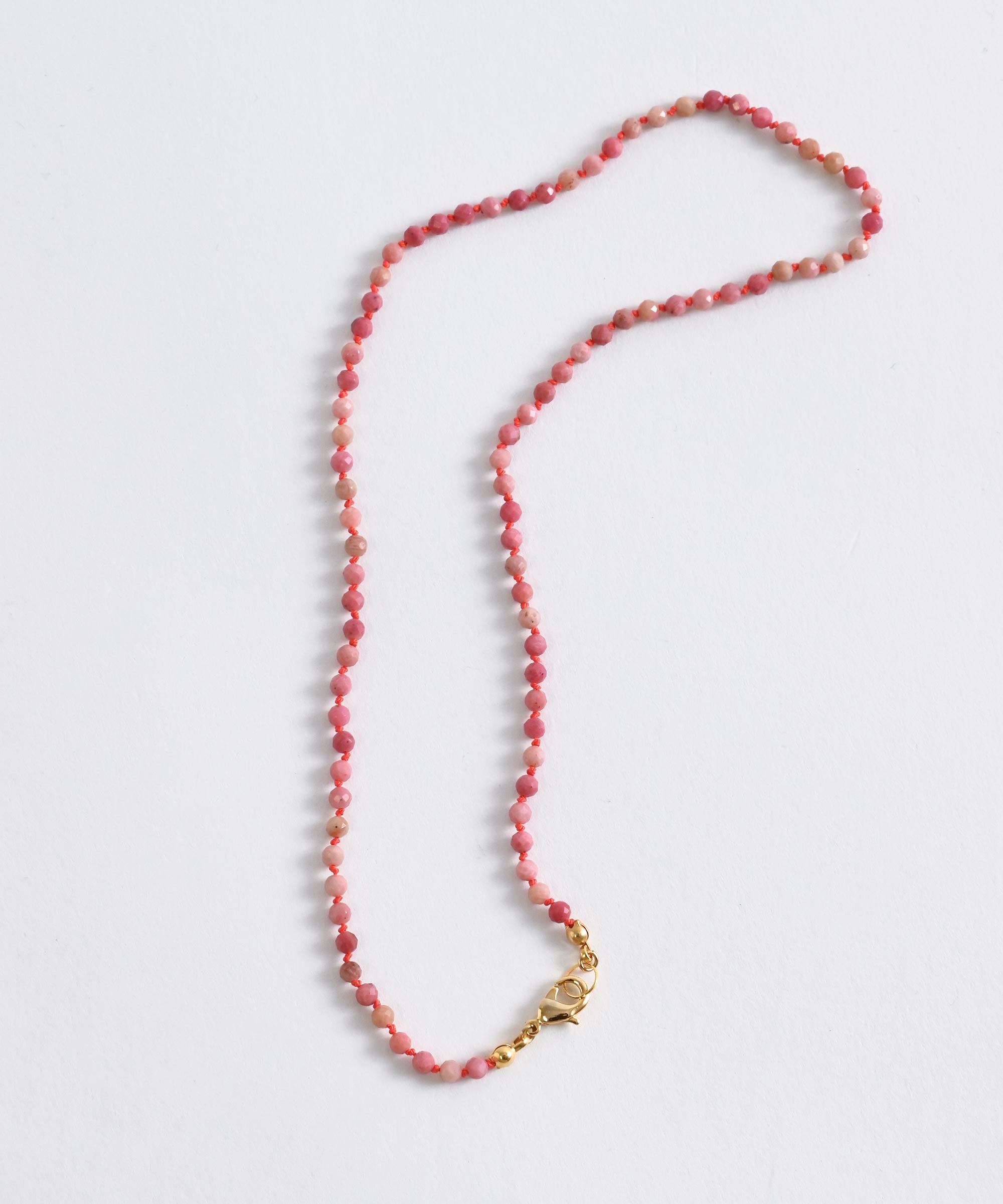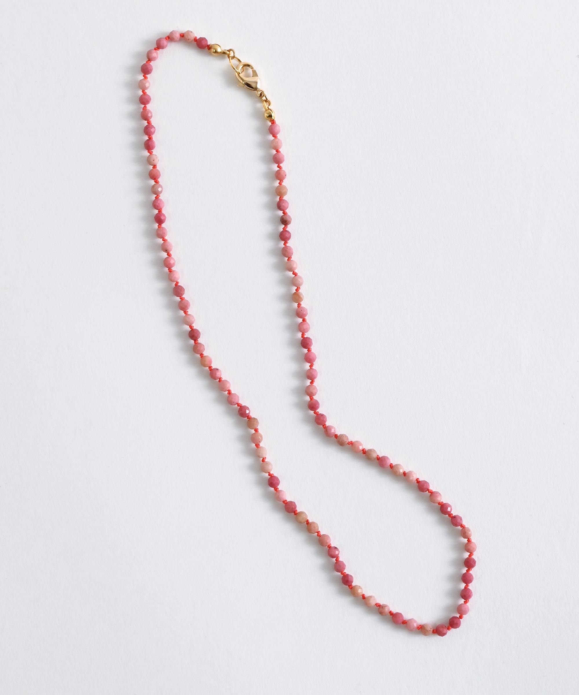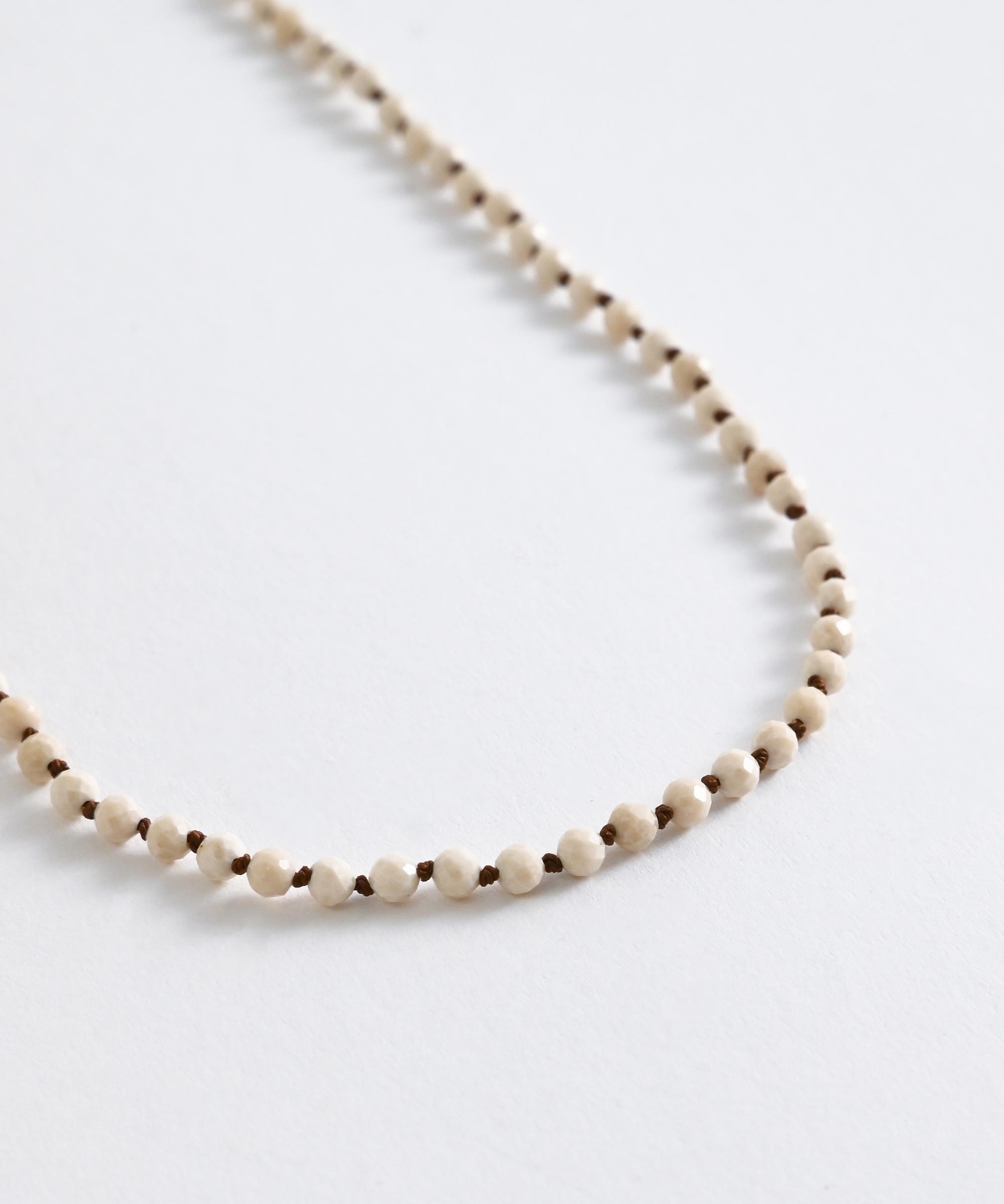 天然石のビーズの間に1つづつ丁寧に結び目を入れたオールノットタイプのネックレス。