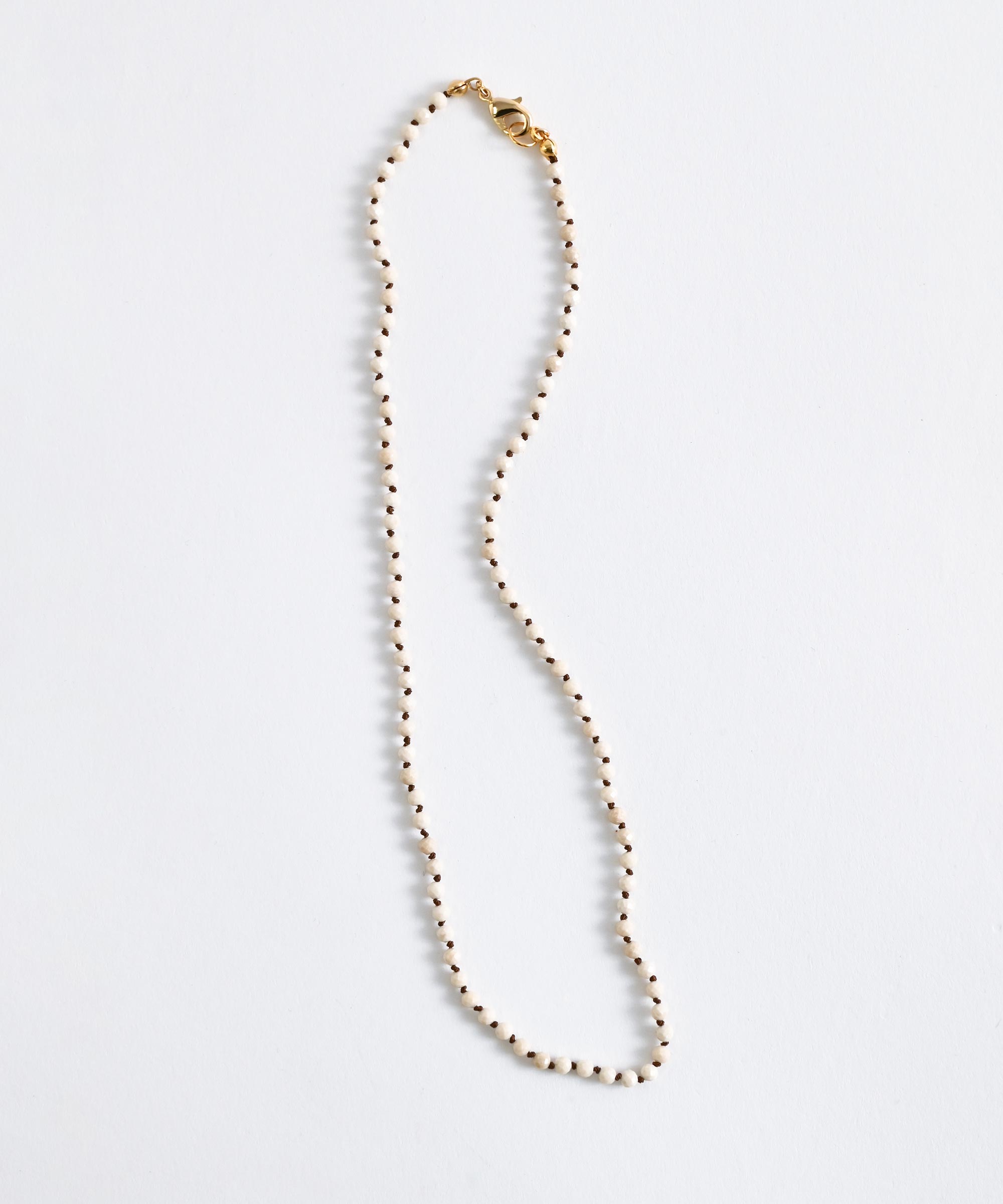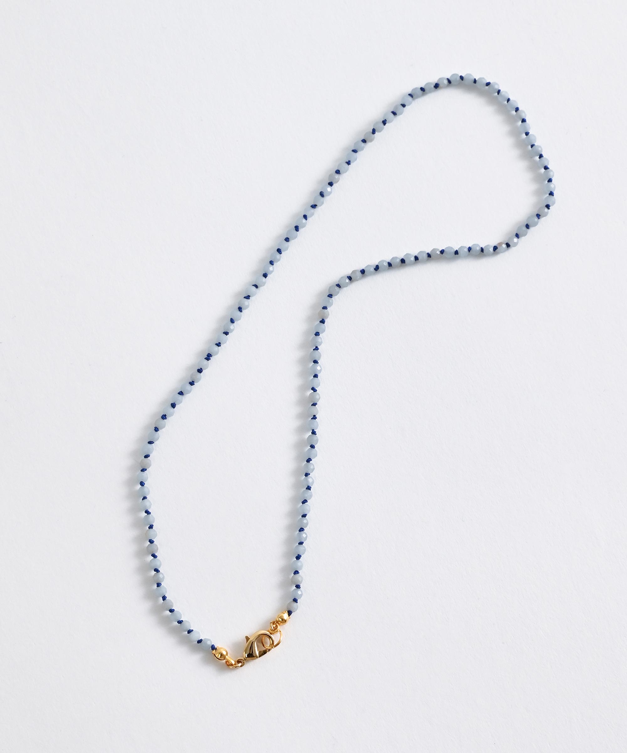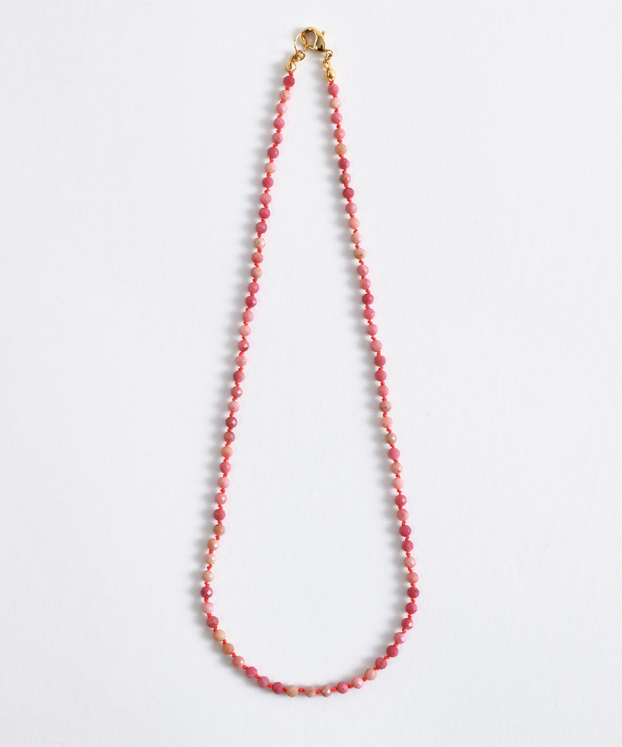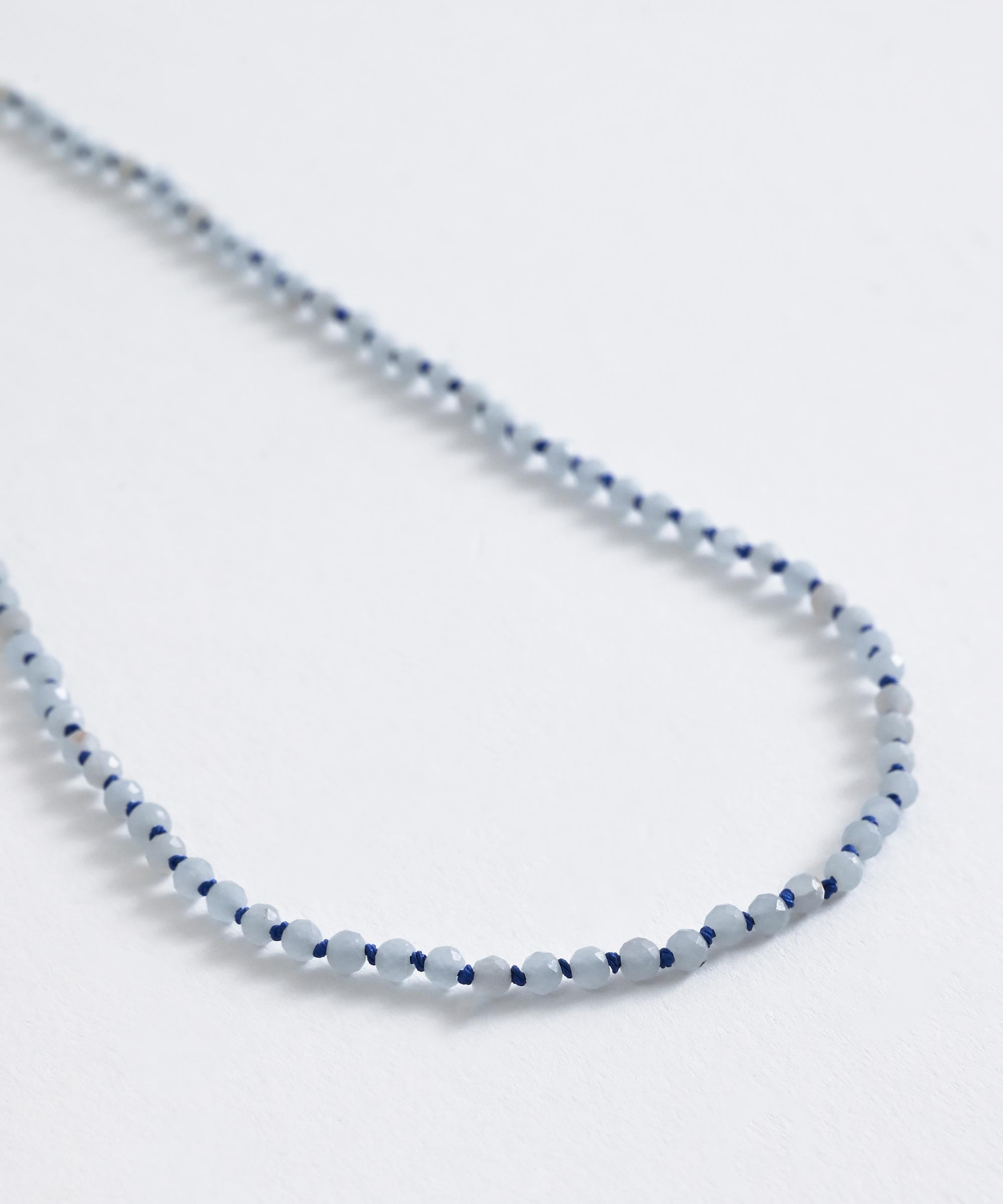 天然石のビーズの間に1つづつ丁寧に結び目を入れたオールノットタイプのネックレス。
