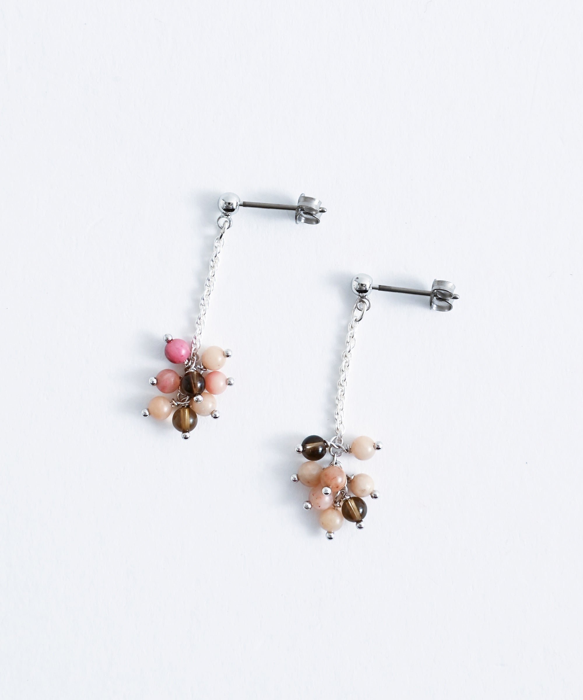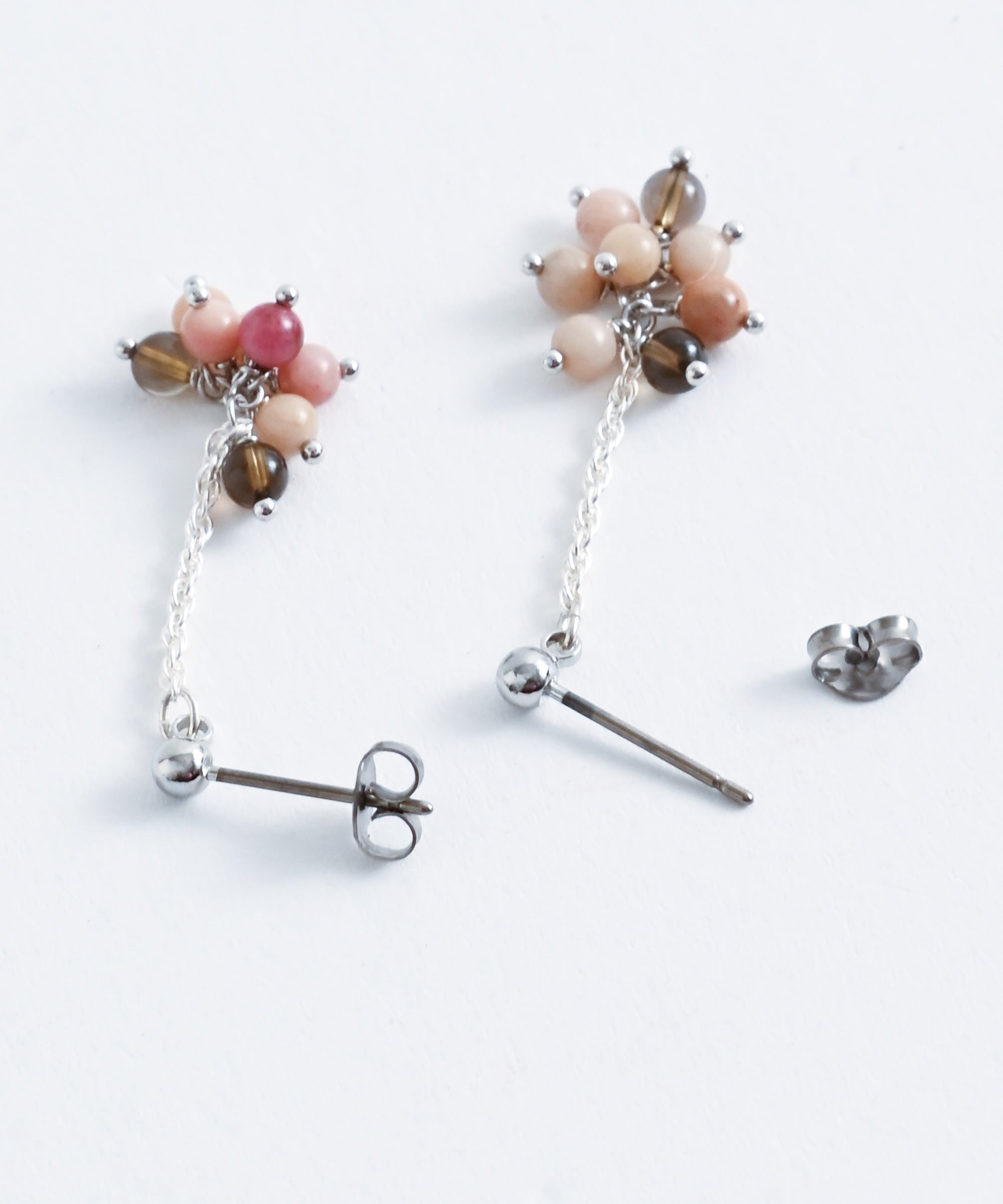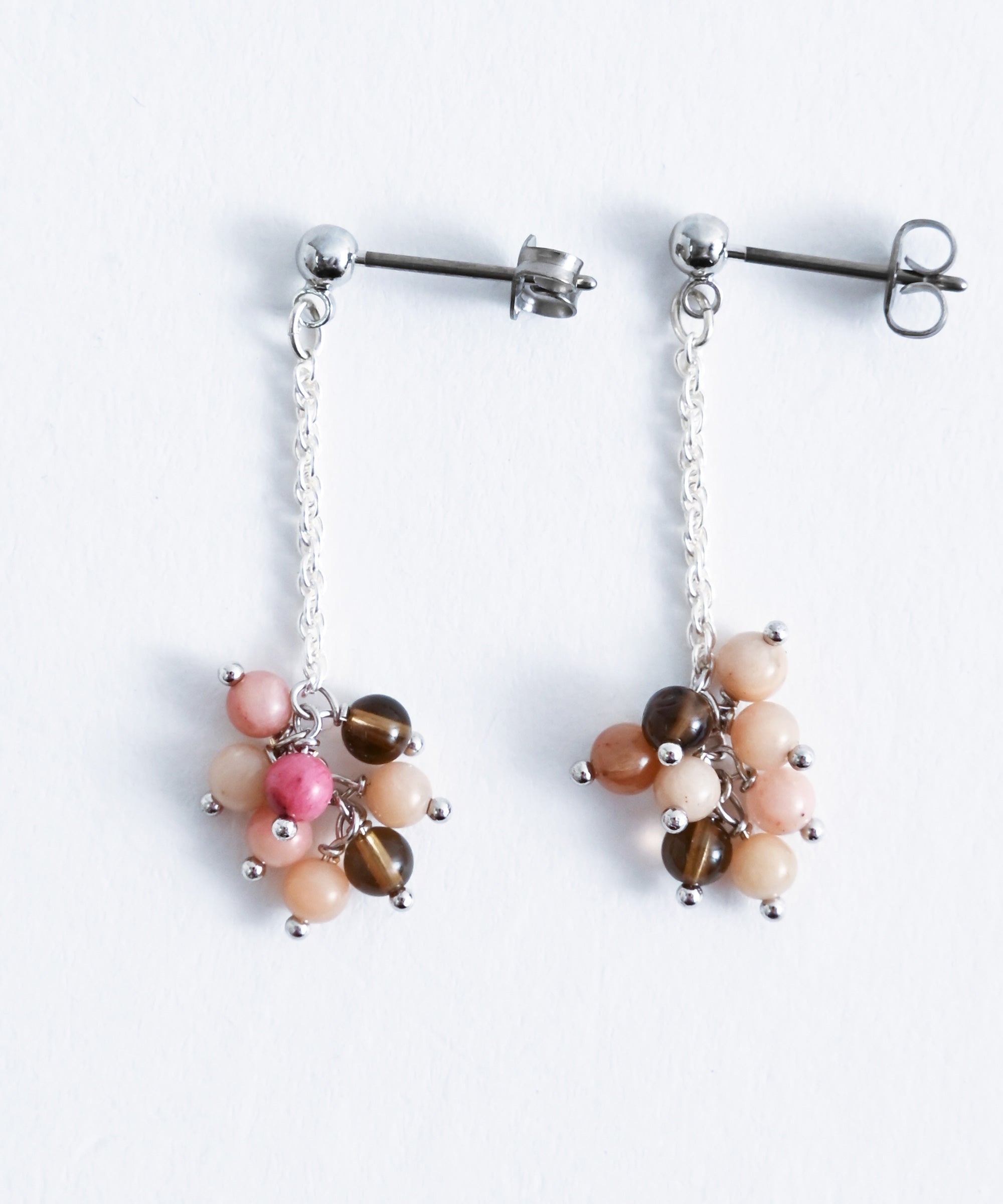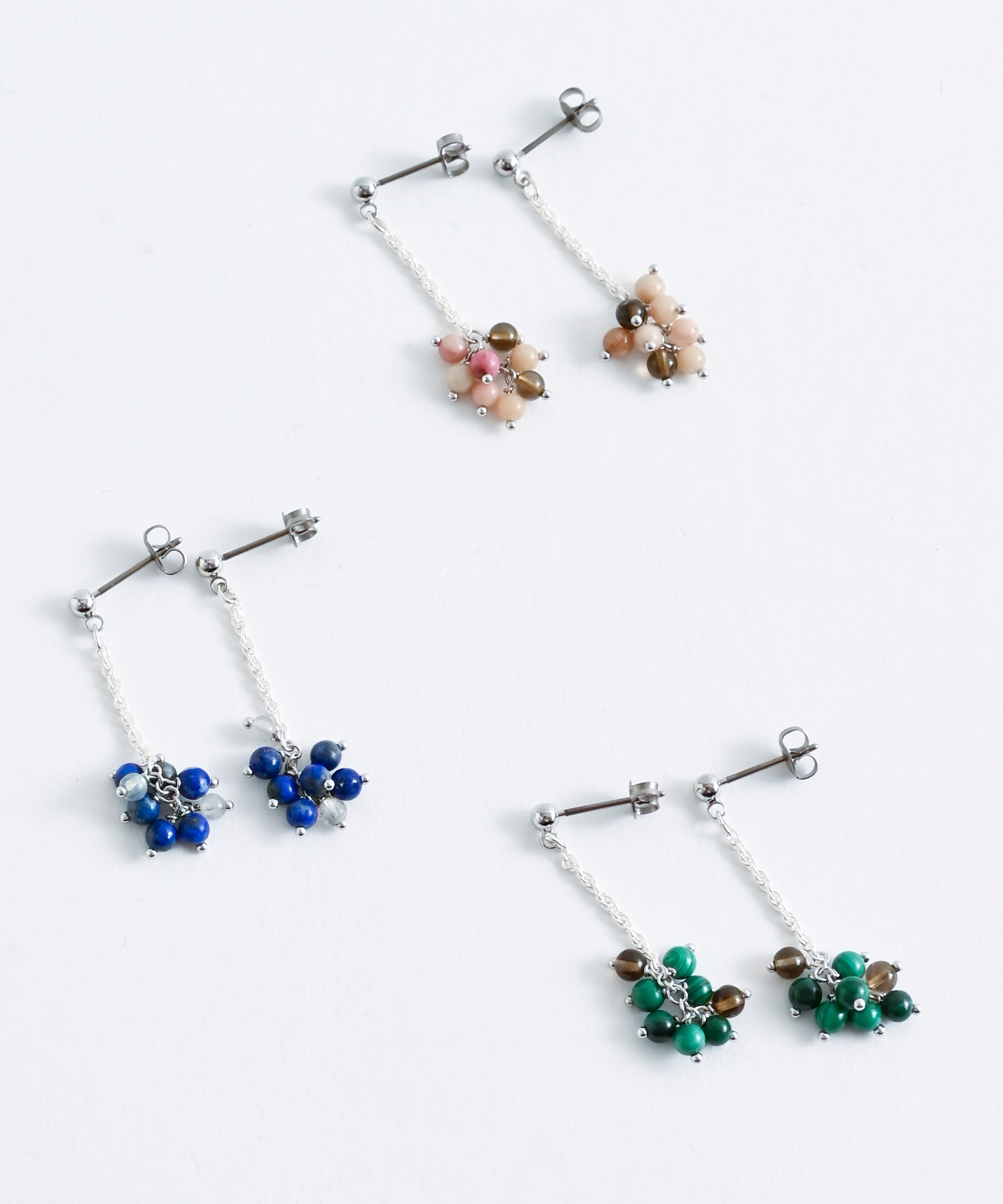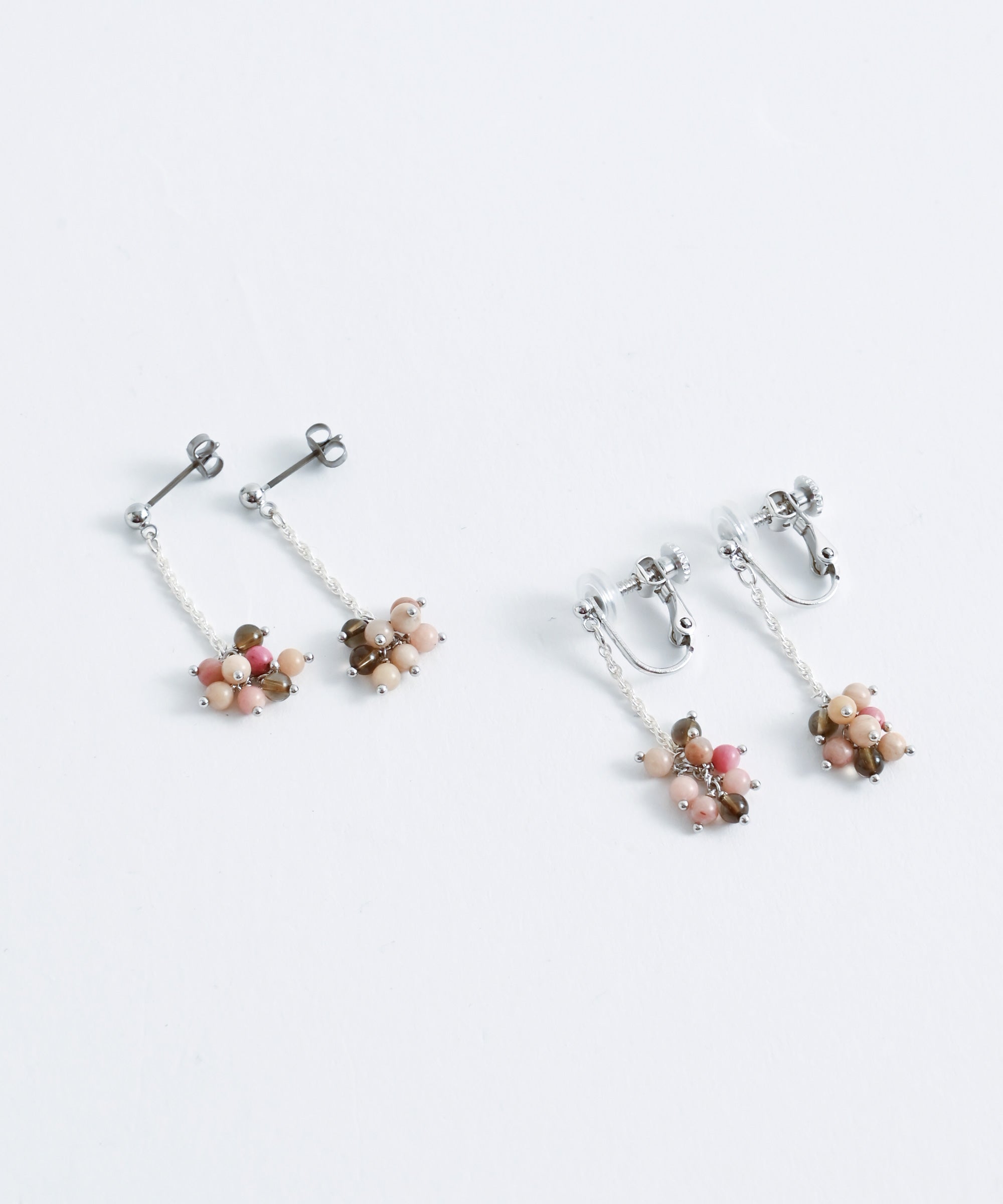 色の異なる天然石のビーズを組み合わせたピアス。