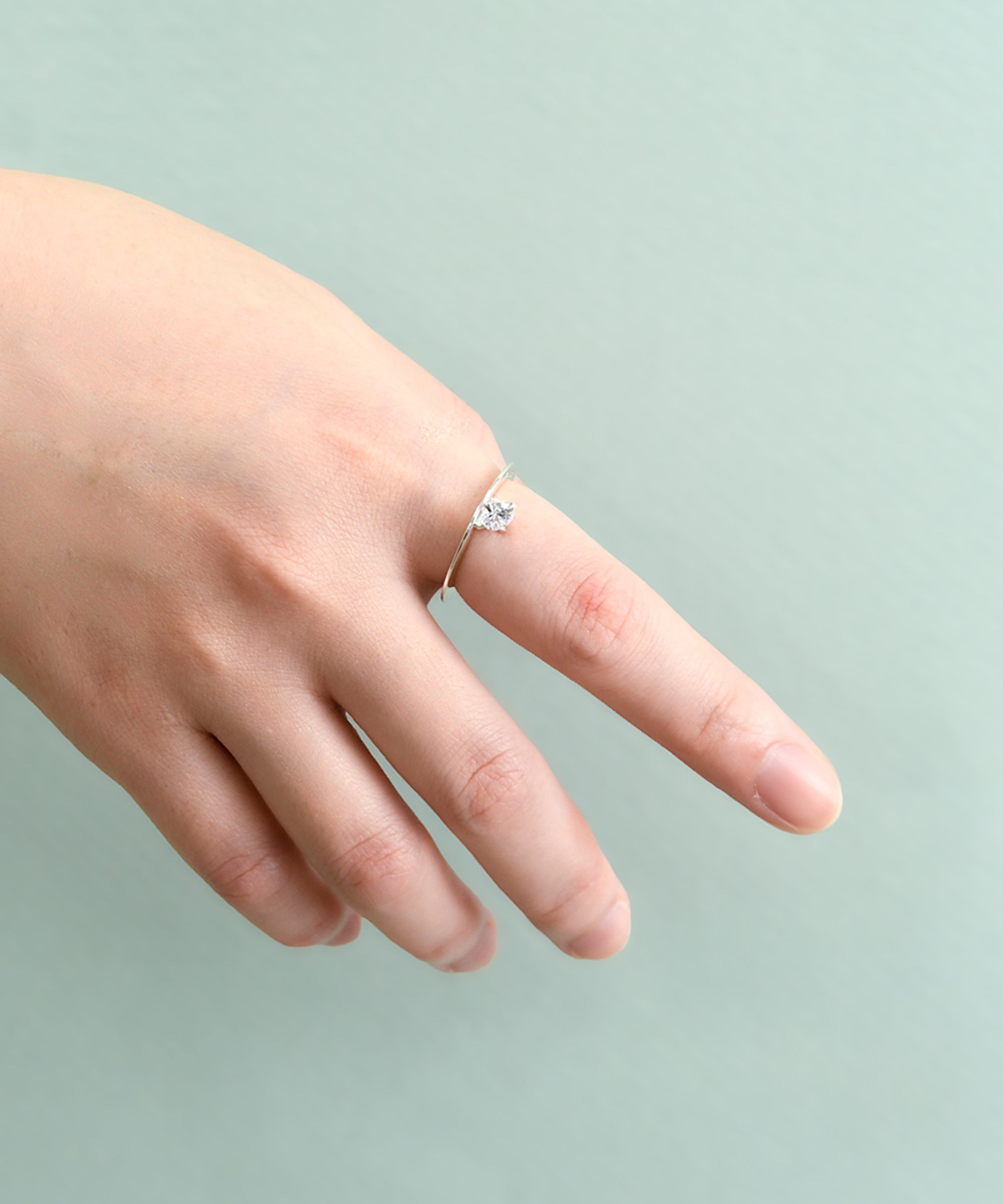 薄い平打ちのリングに斜めにセッティングされたクリアのジルコニア。
