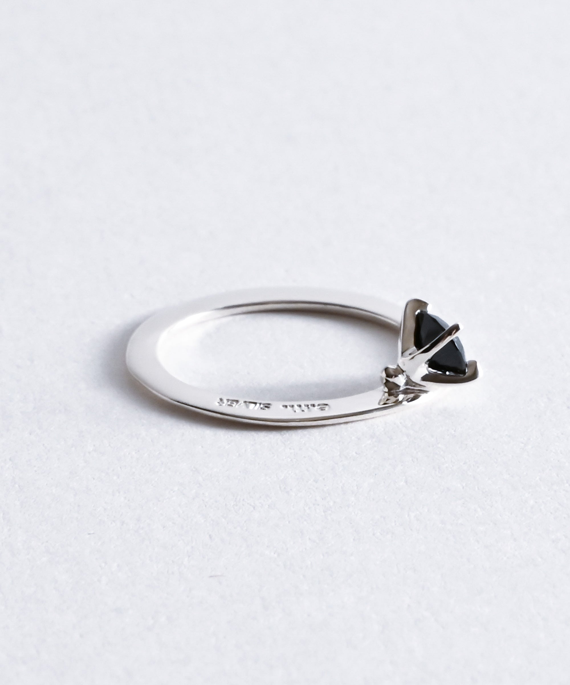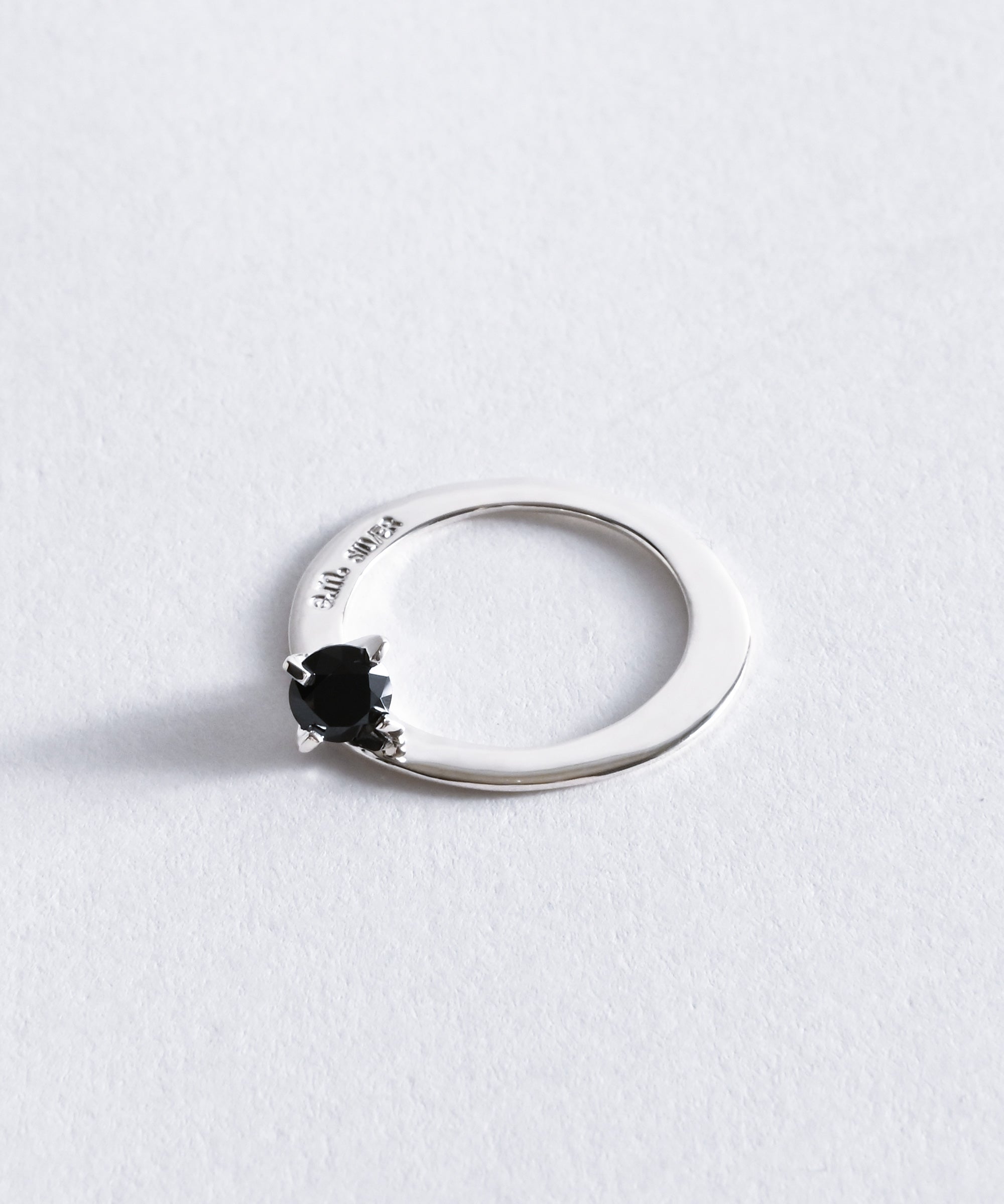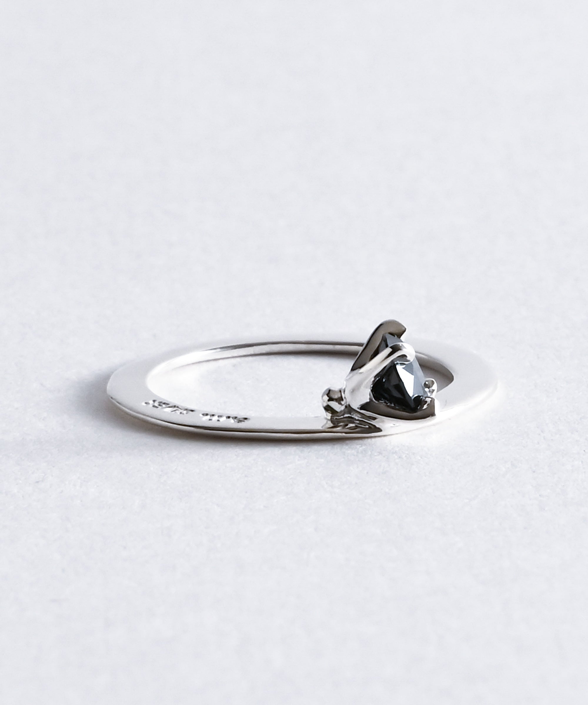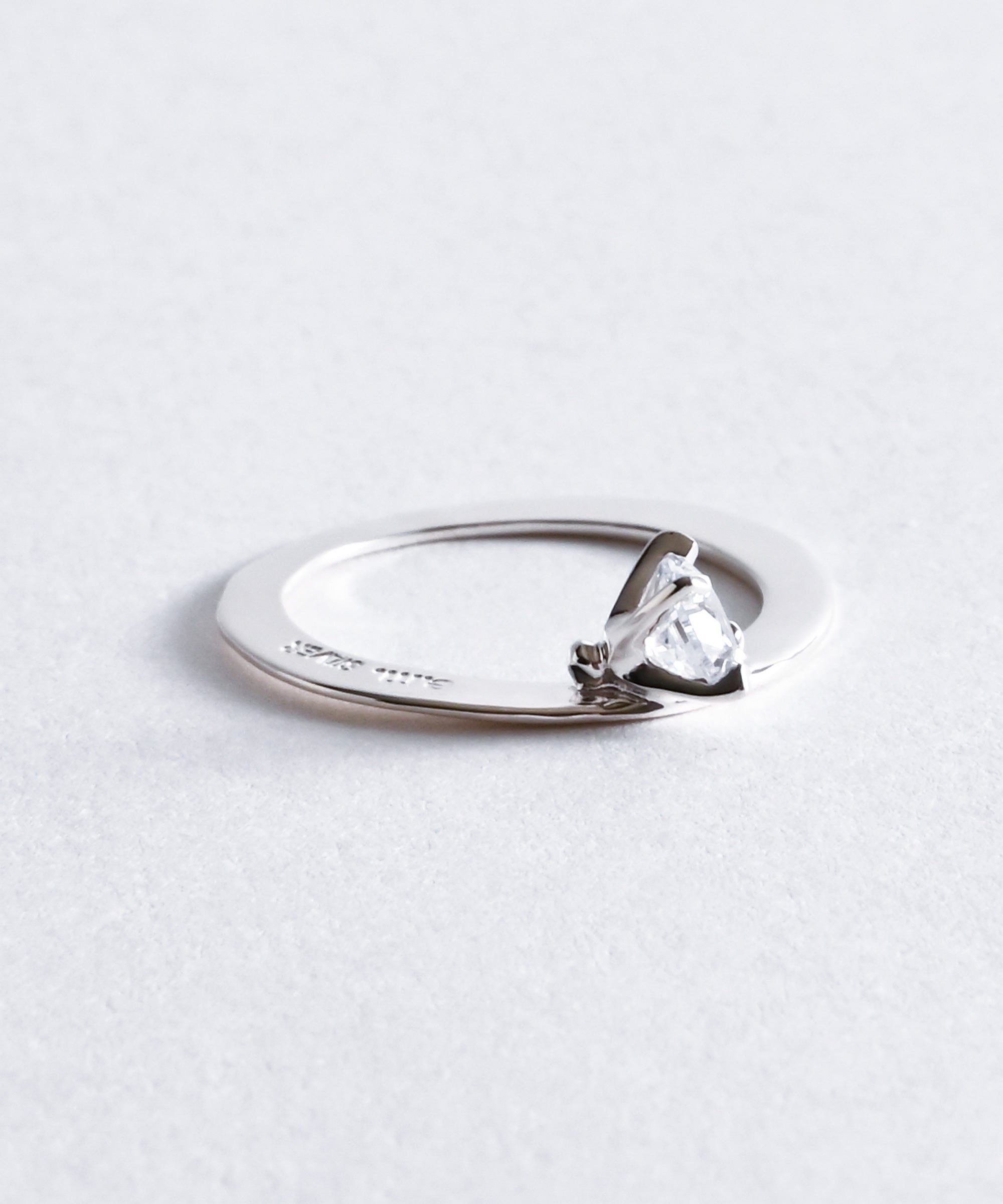 薄い平打ちのリングに斜めにセッティングされたクリアのジルコニア。