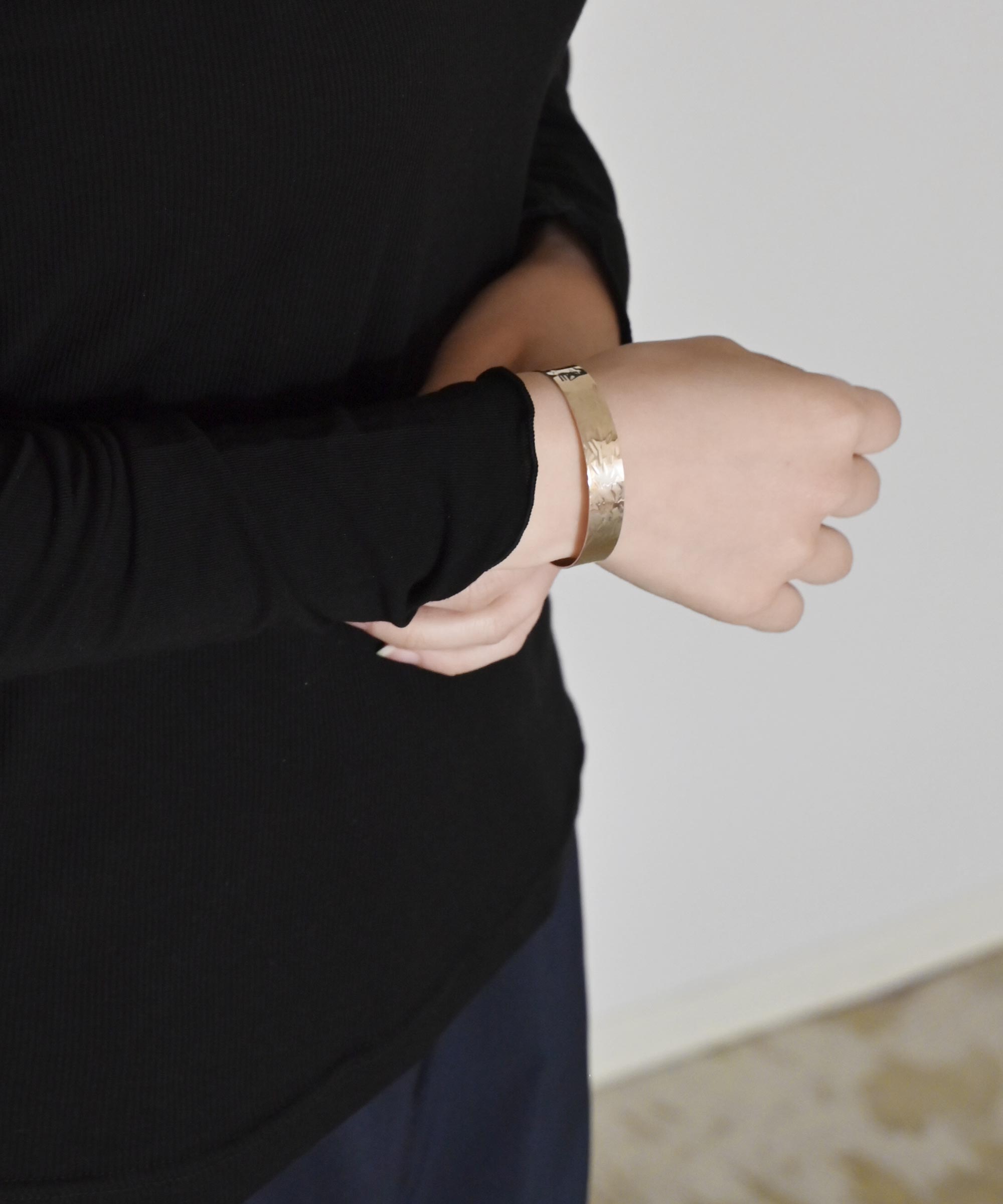 ゆるやかな叩きの加工で使い込むほどに味が出るジュエリーです。
