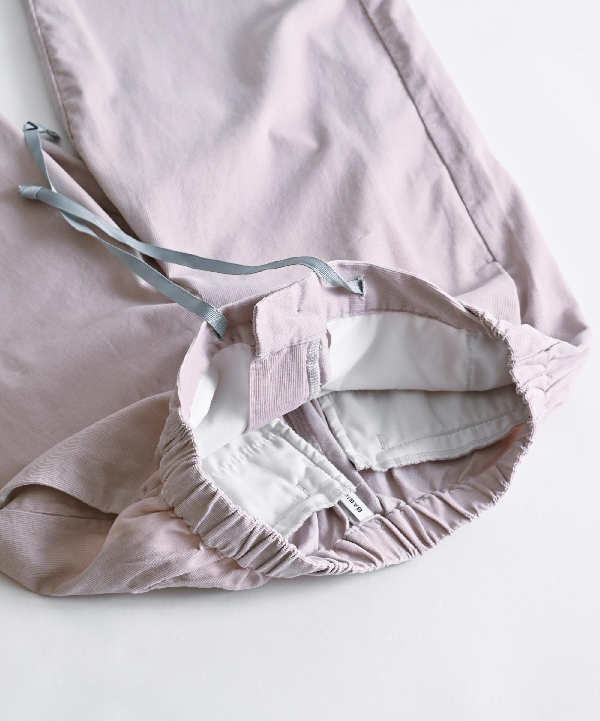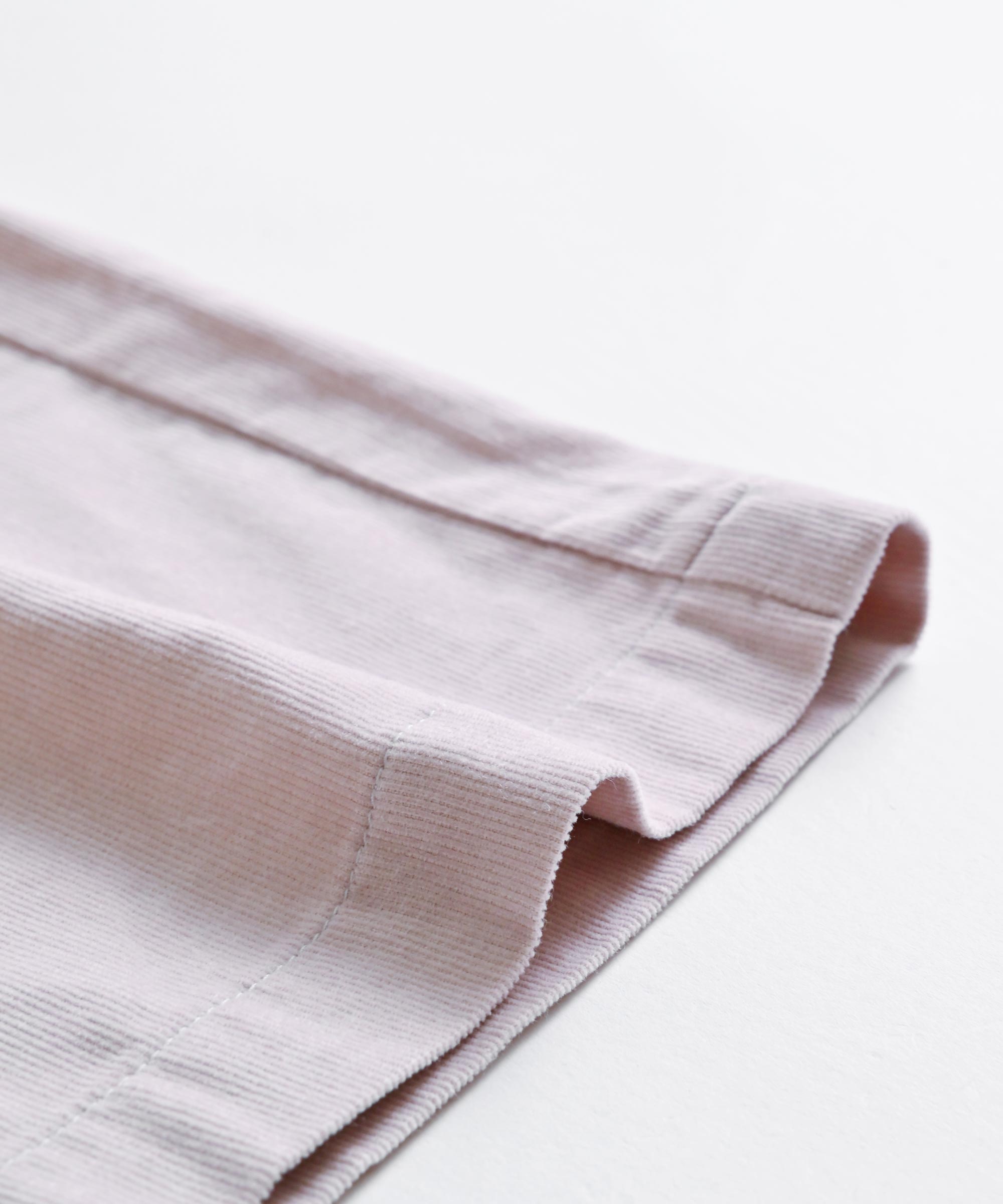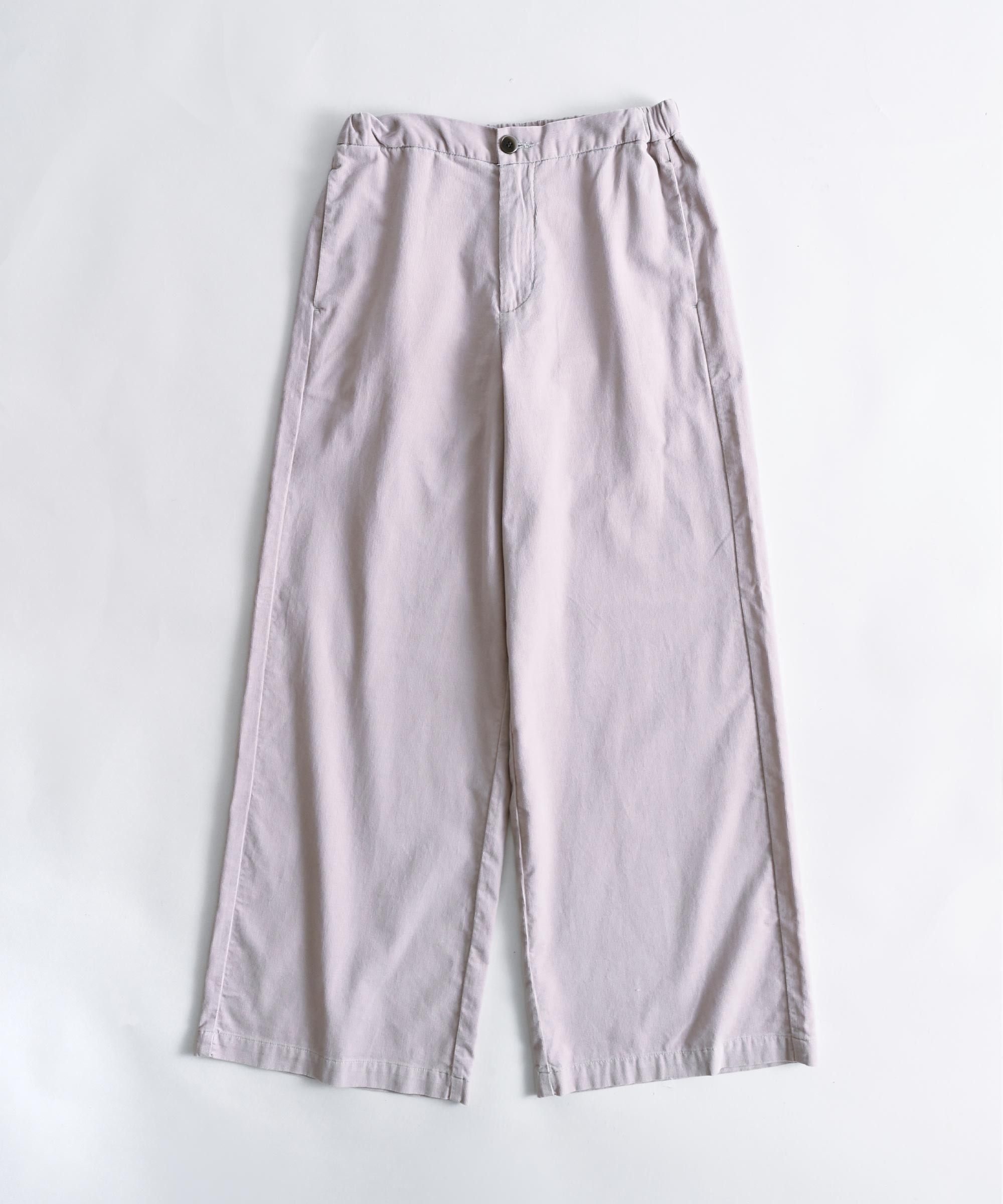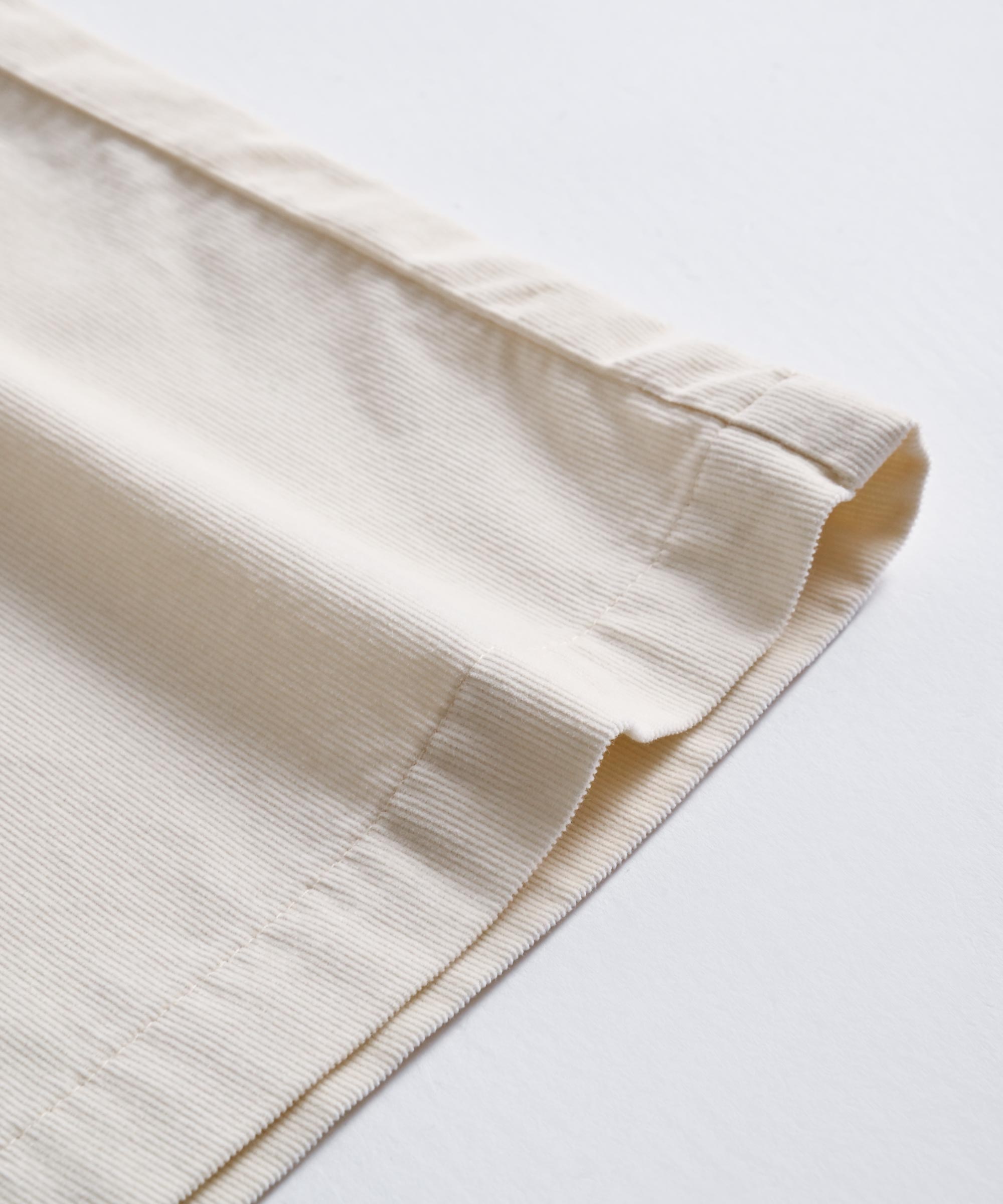 細かい畔コーデュロイならではの落ち感と柔らかさを活かし、裾巾を広めに、丈も眺めにデザイン。