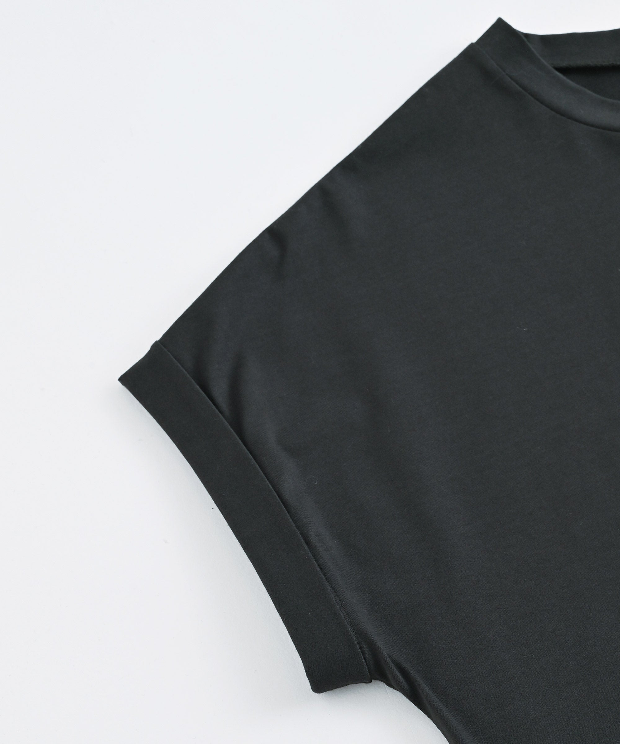 肩に接ぎのない仕立てで、袖口に同生地をロールアップ風につけたデザイン。