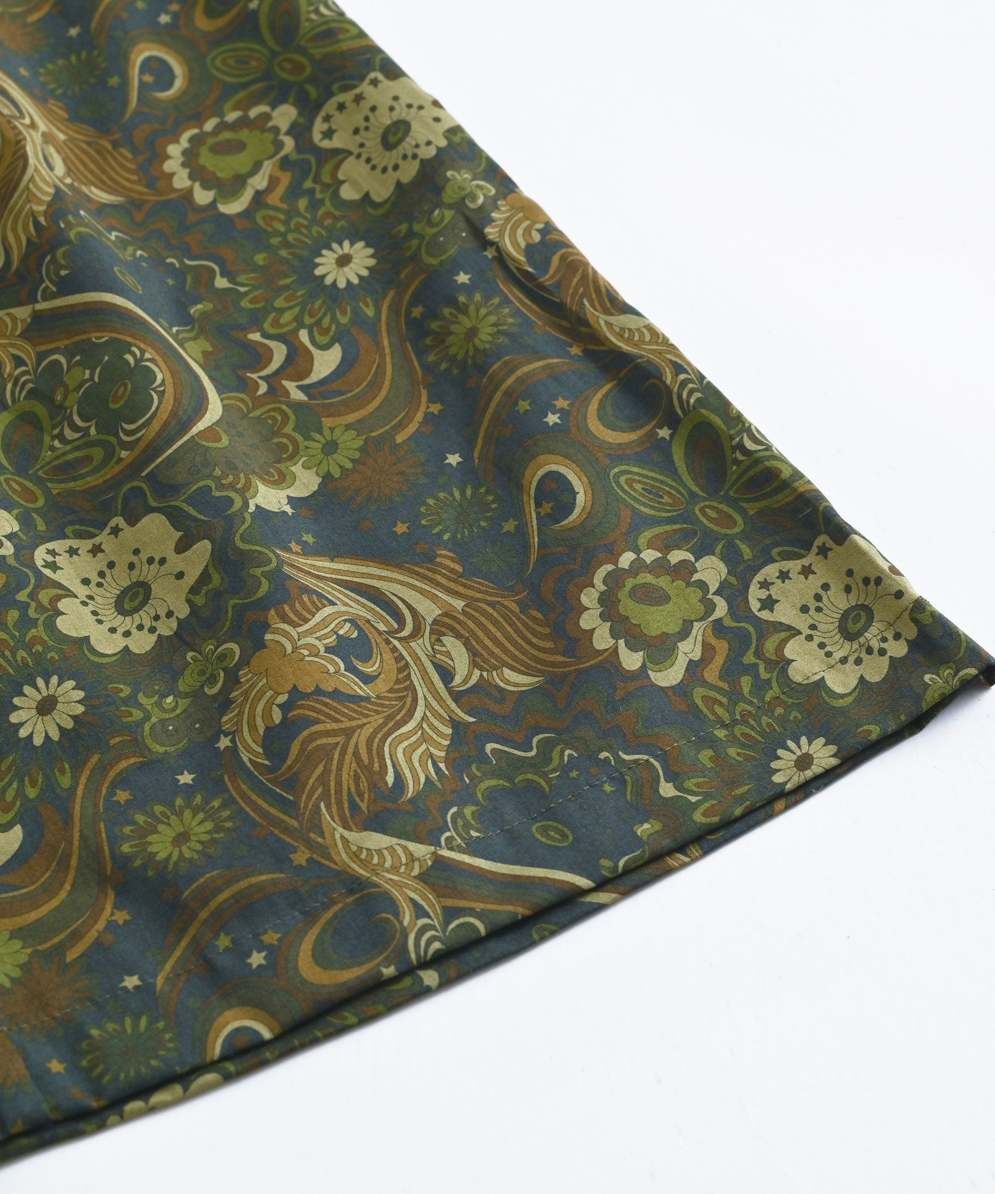 ロンドンで開催された「ブリティッシュ・ミュージック博物館」を訪れたことからヒントを得て創られました。1970年代の野性的で大胆な花柄と、対称的に配した渦巻き模様が象徴的なフラワー・パワーのモチーフ。
