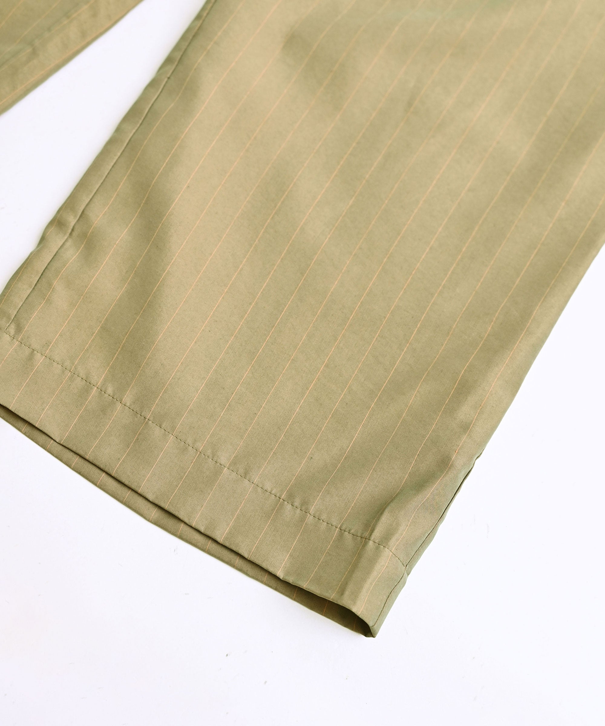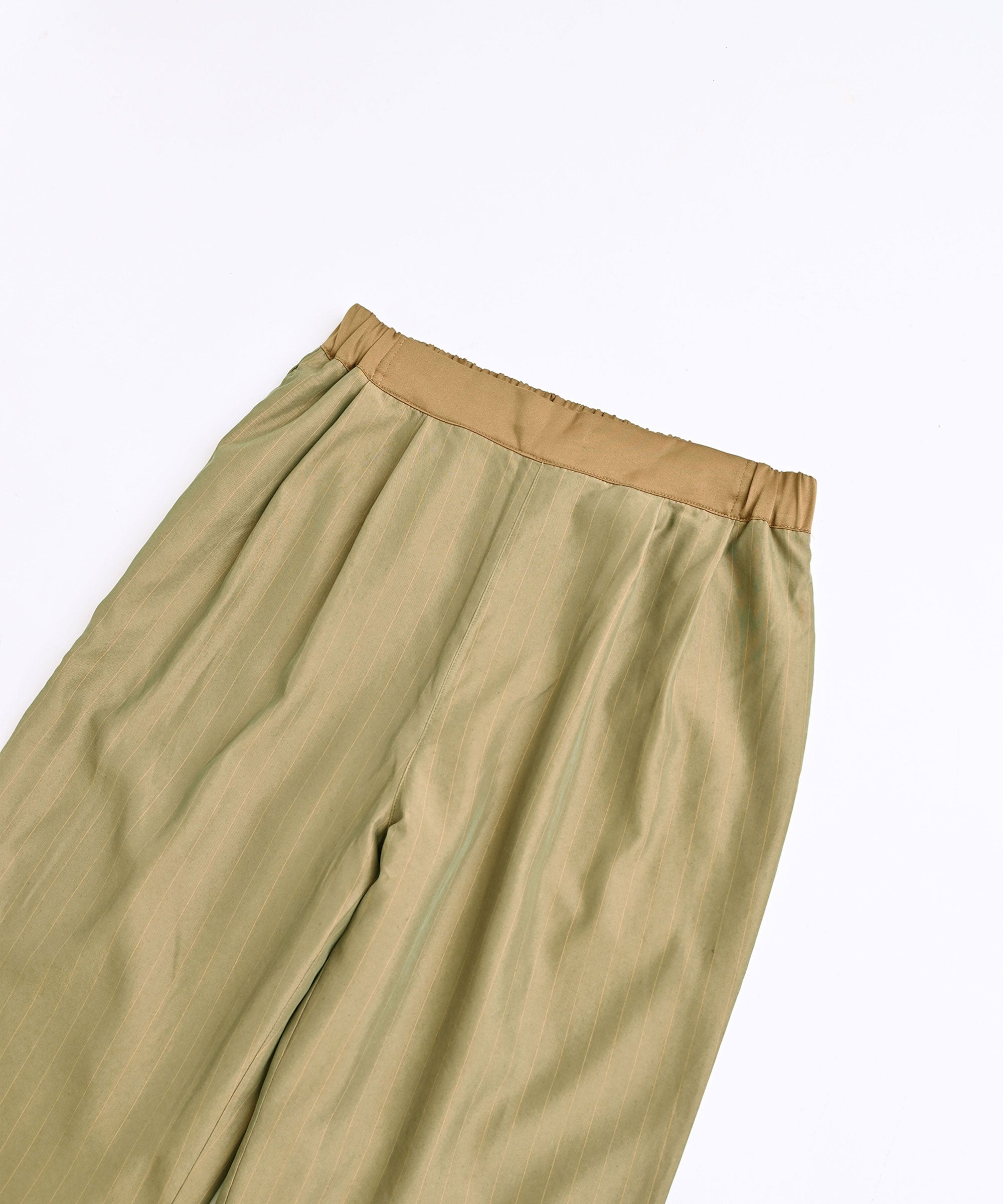 2種類の糸を使用したシャンブレー生地で作ったパンツ。