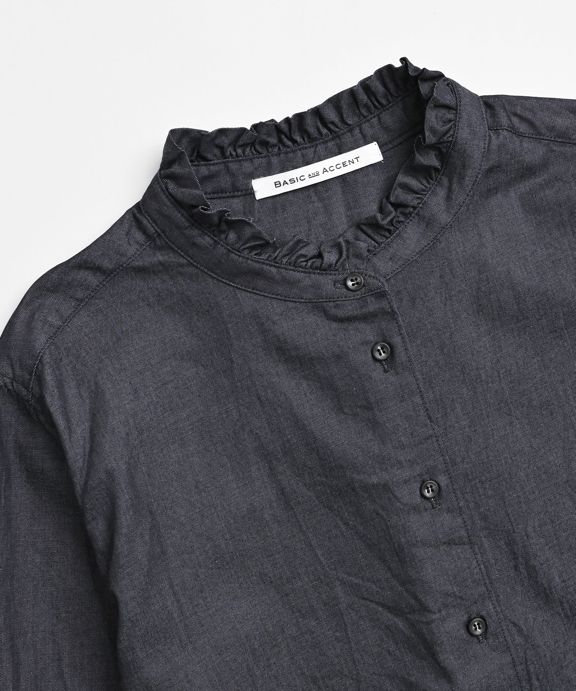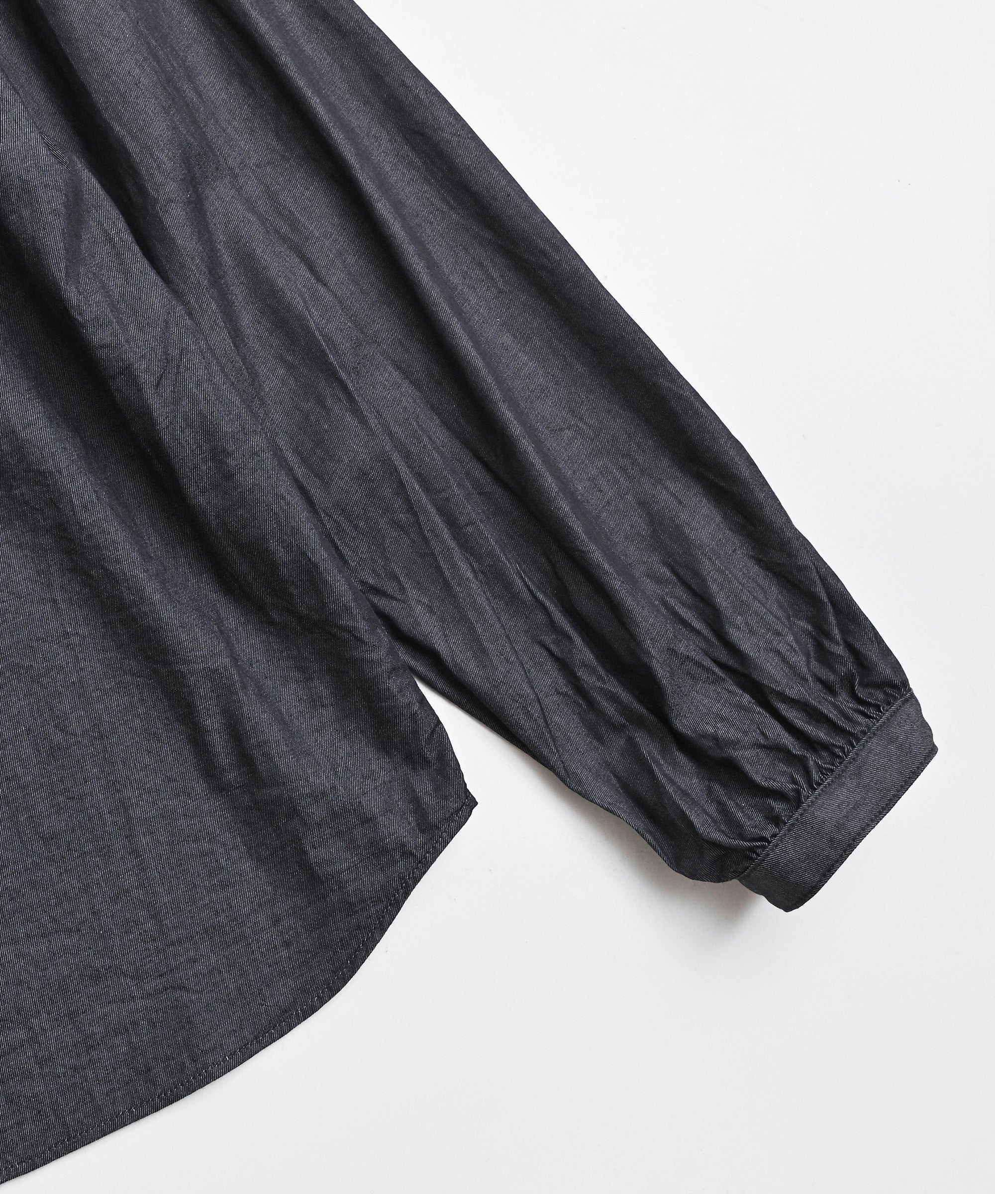 薄く軽いデニム生地を使用し、ギャザーやステッチ、袖口の仕様にこだわりました。季節の変わり目に活躍するアイテムです。