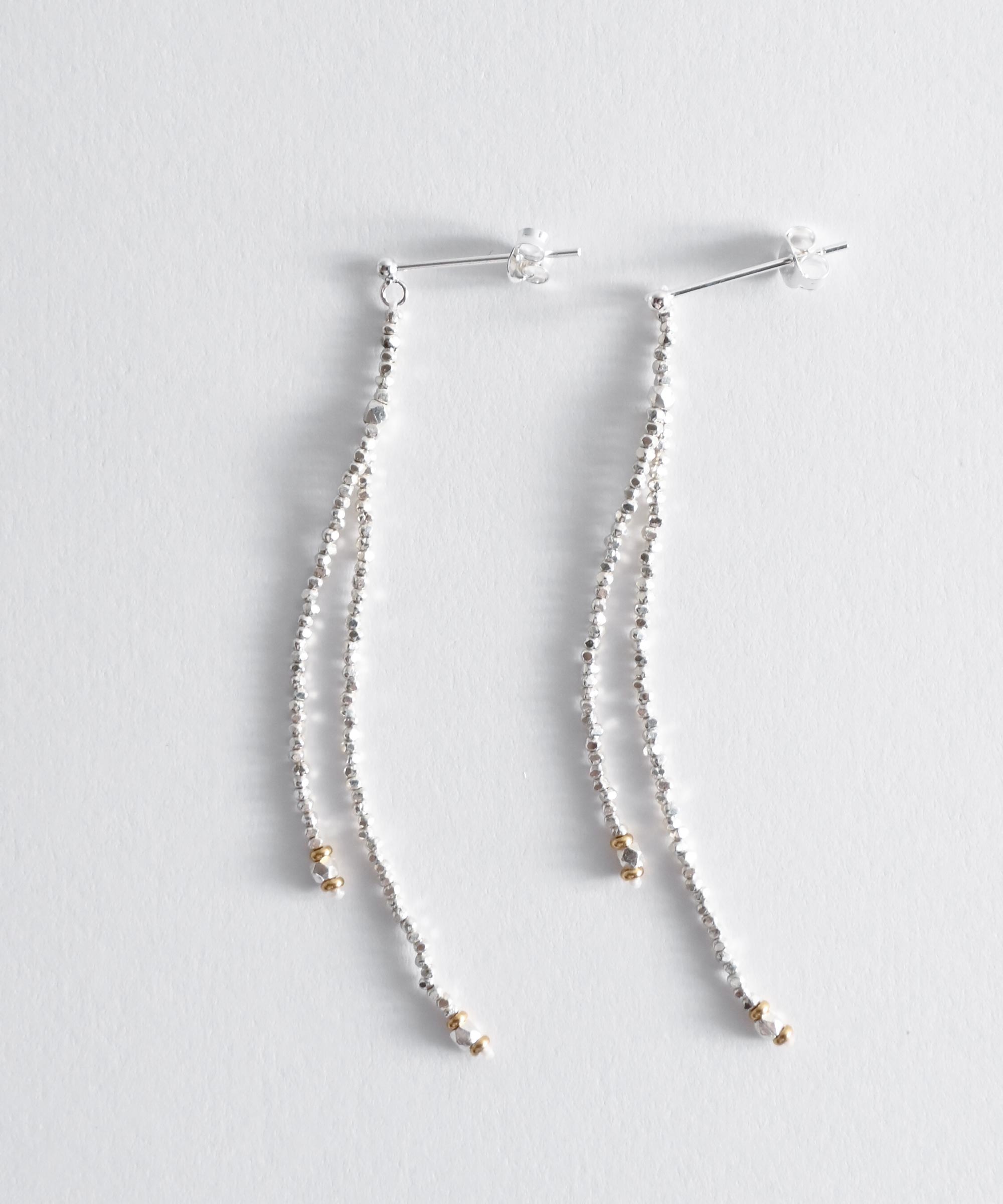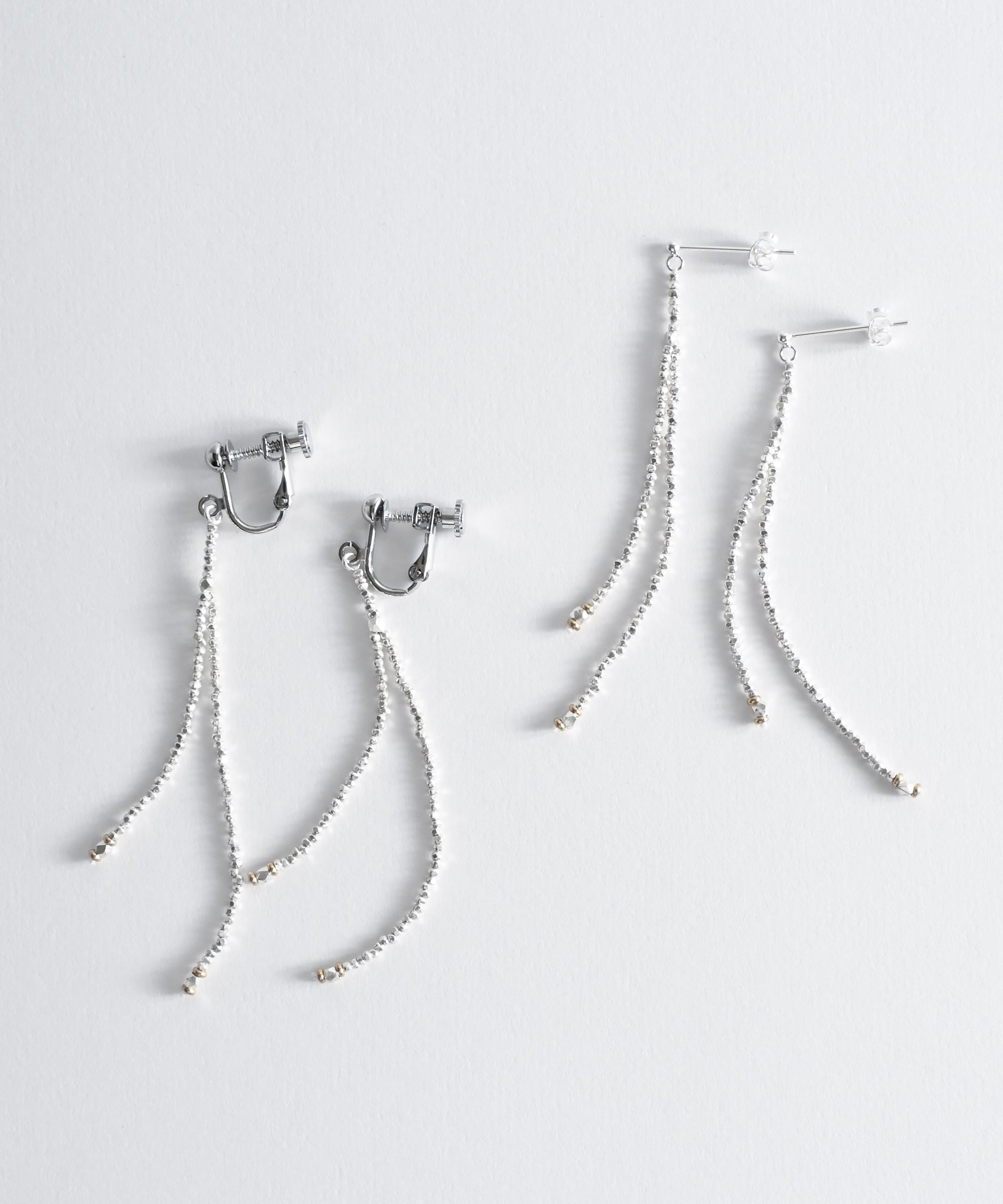 上品にキラッと光るように繊細なカットが施された極小のシルバービーズのピアス。
