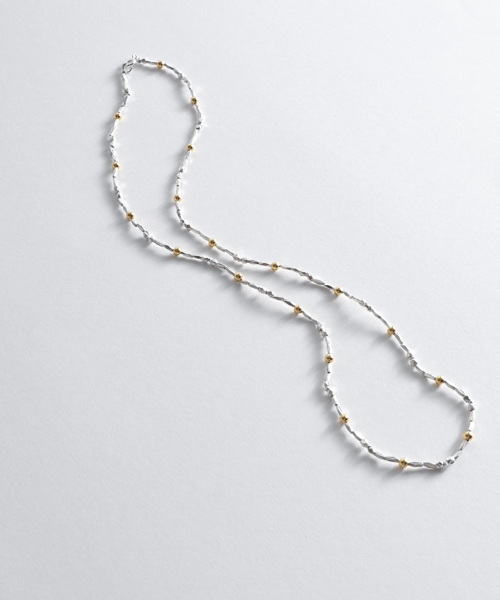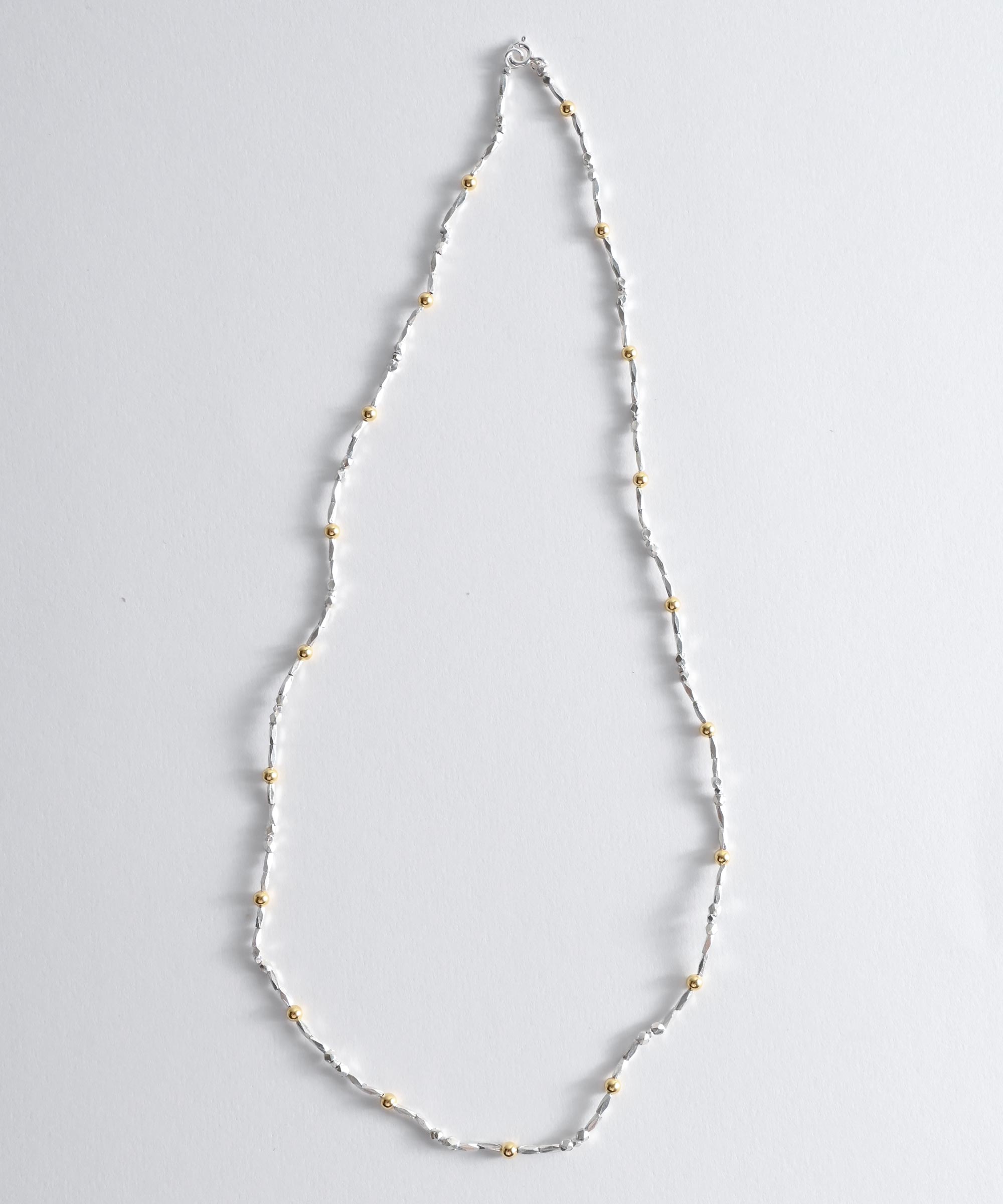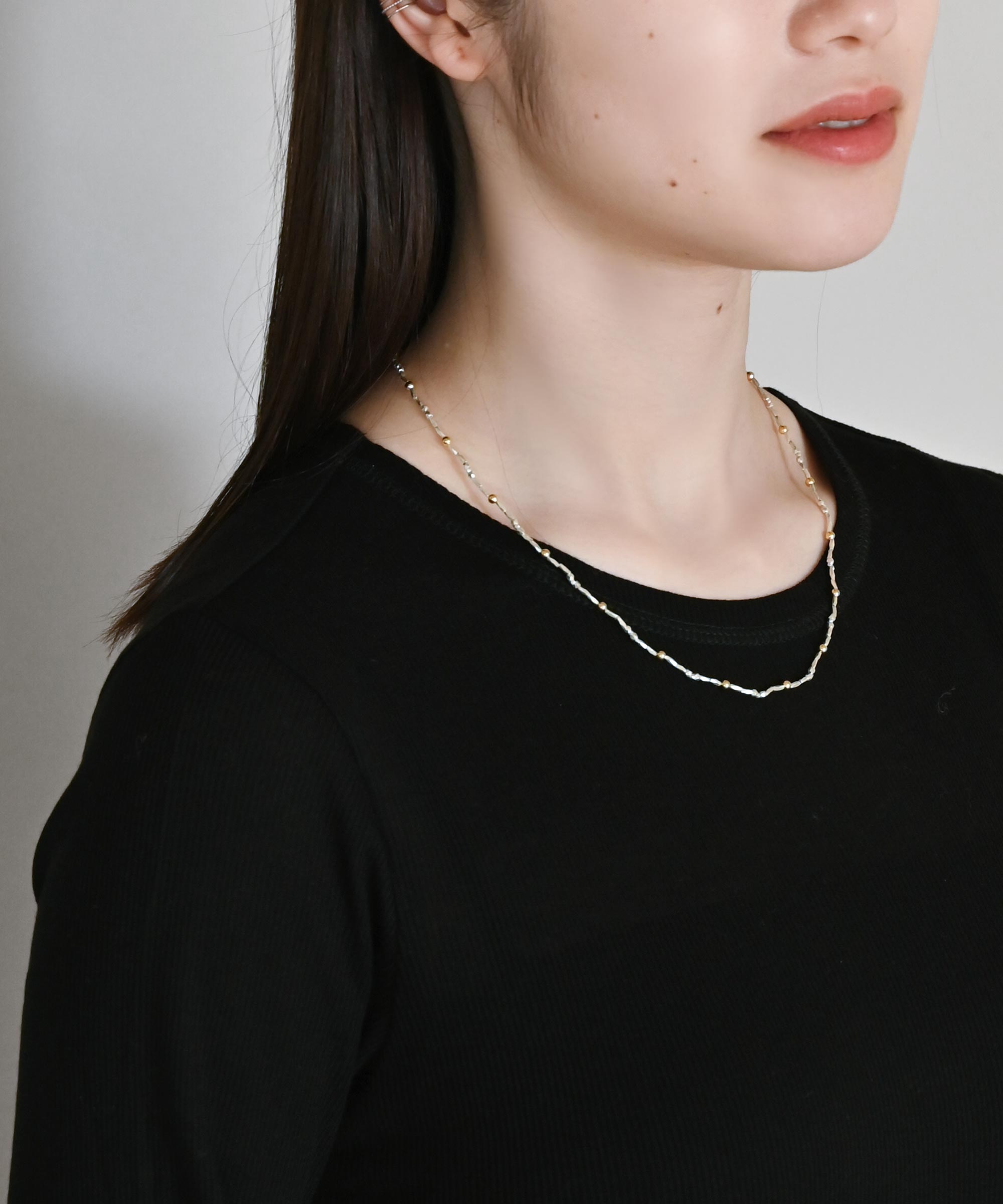 925のシルバービーズと22KメッキのゴールドパーツMIXさせたネックレスは