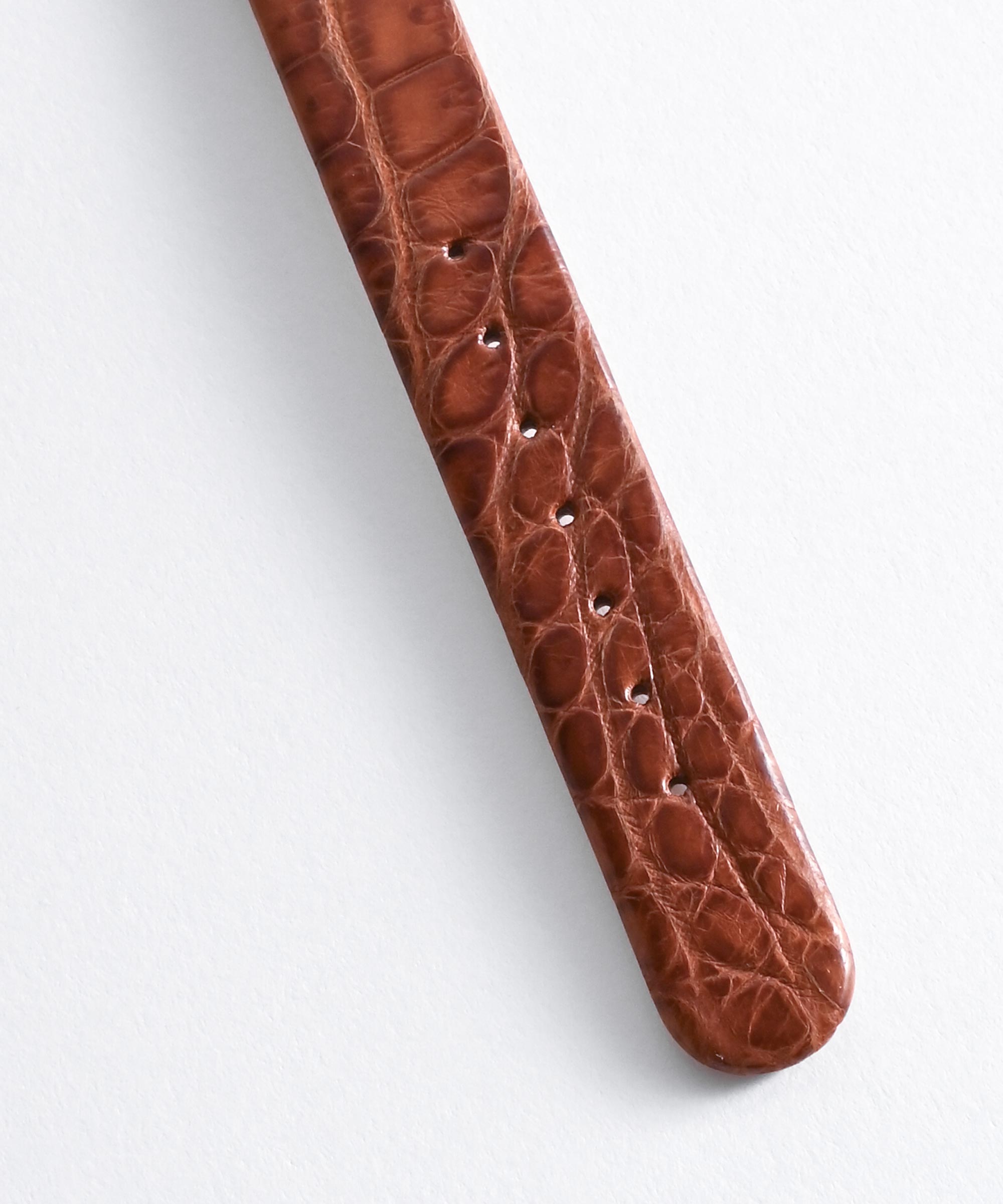 クロコダイルベルトをあしらった大人なモデル、”COUSSIN 12”。 文字盤はモデル名の通り、“12”のみ表示したミニマムなデザイン。 この“12”はよく見るとプリントではなく、立体的な作り(アップライトインデックス)になっているのがポイント。 ベルトは国産のクロコダイルを使用したこだわりの作りで、 シンプルな文字盤デザインと相まって"大人の装い"を演出します。 ブランドの特徴でもあるエージング加工を施した本体ケースは 長い時間を経てきたような風合いを表現しています。 オンオフ問わず、ユニセックスで使っていただけるアイテムです。 ギフトなどにもおすすめです。