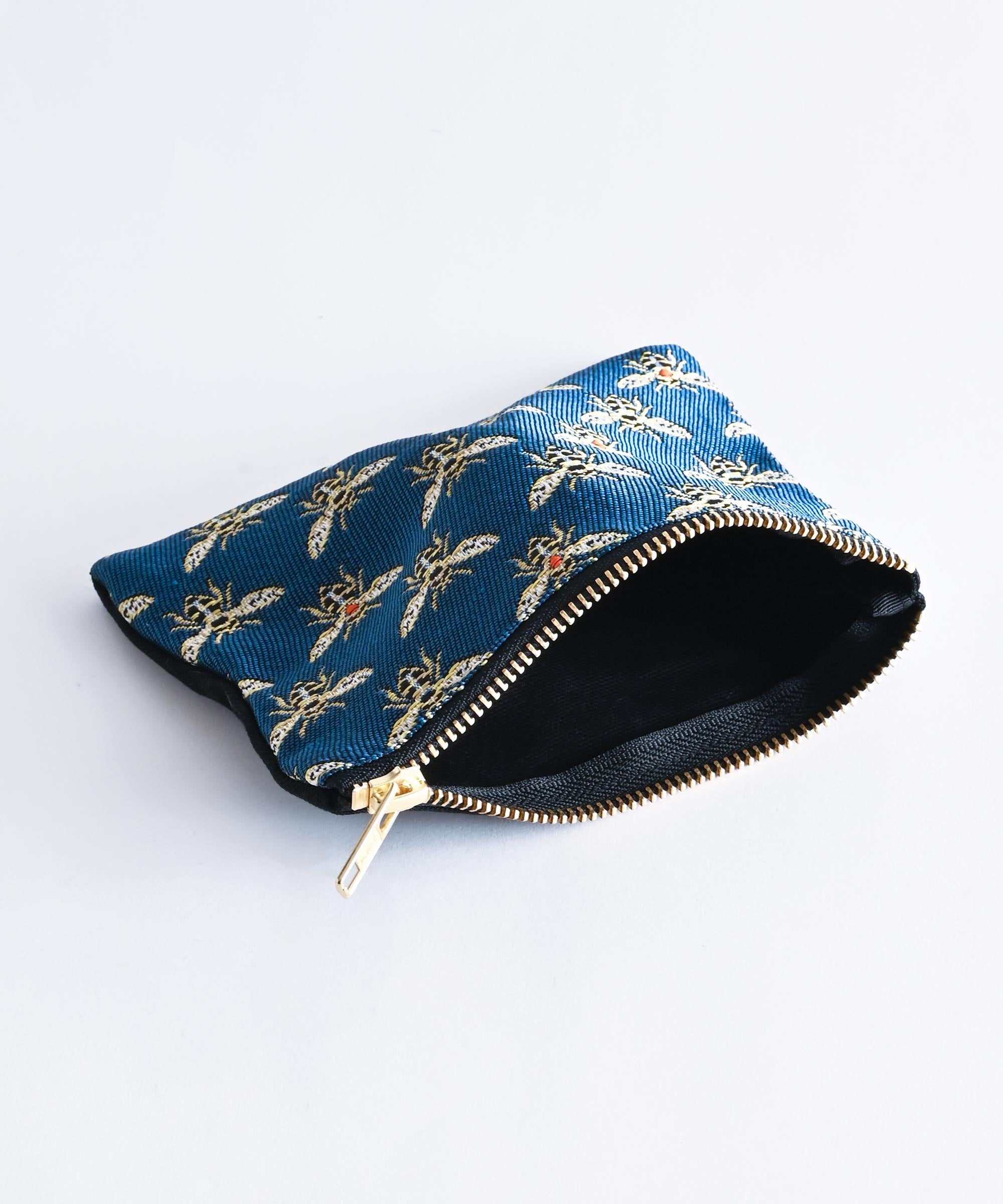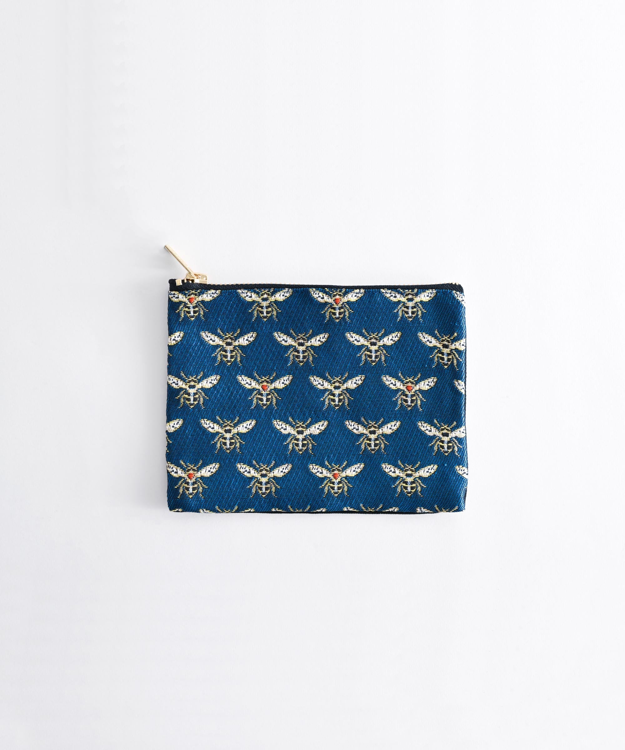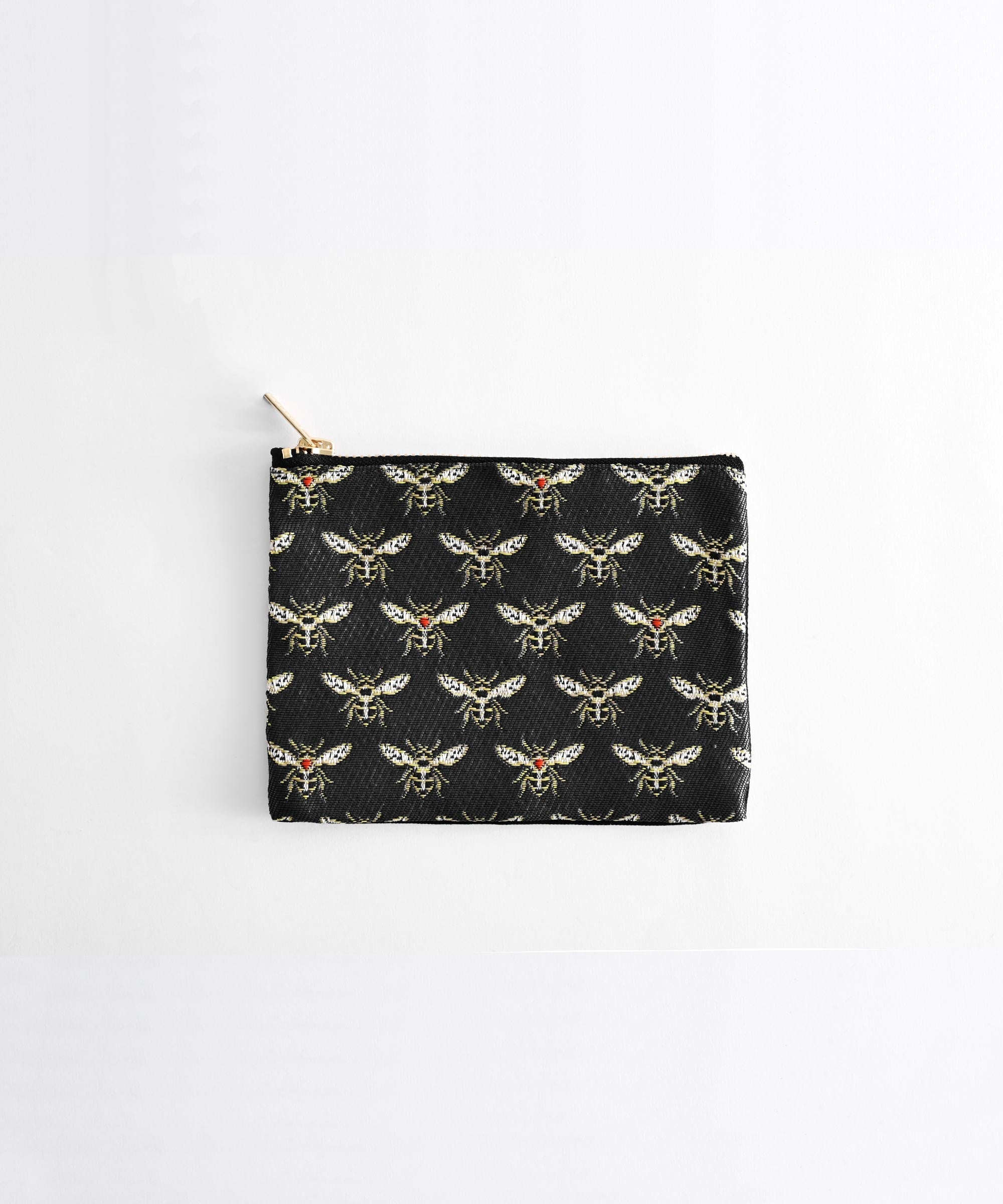 蜂がモチーフのジャガード織りの生地を使用したポーチ。用途に応じて使い分けられる2サイズ展開です。