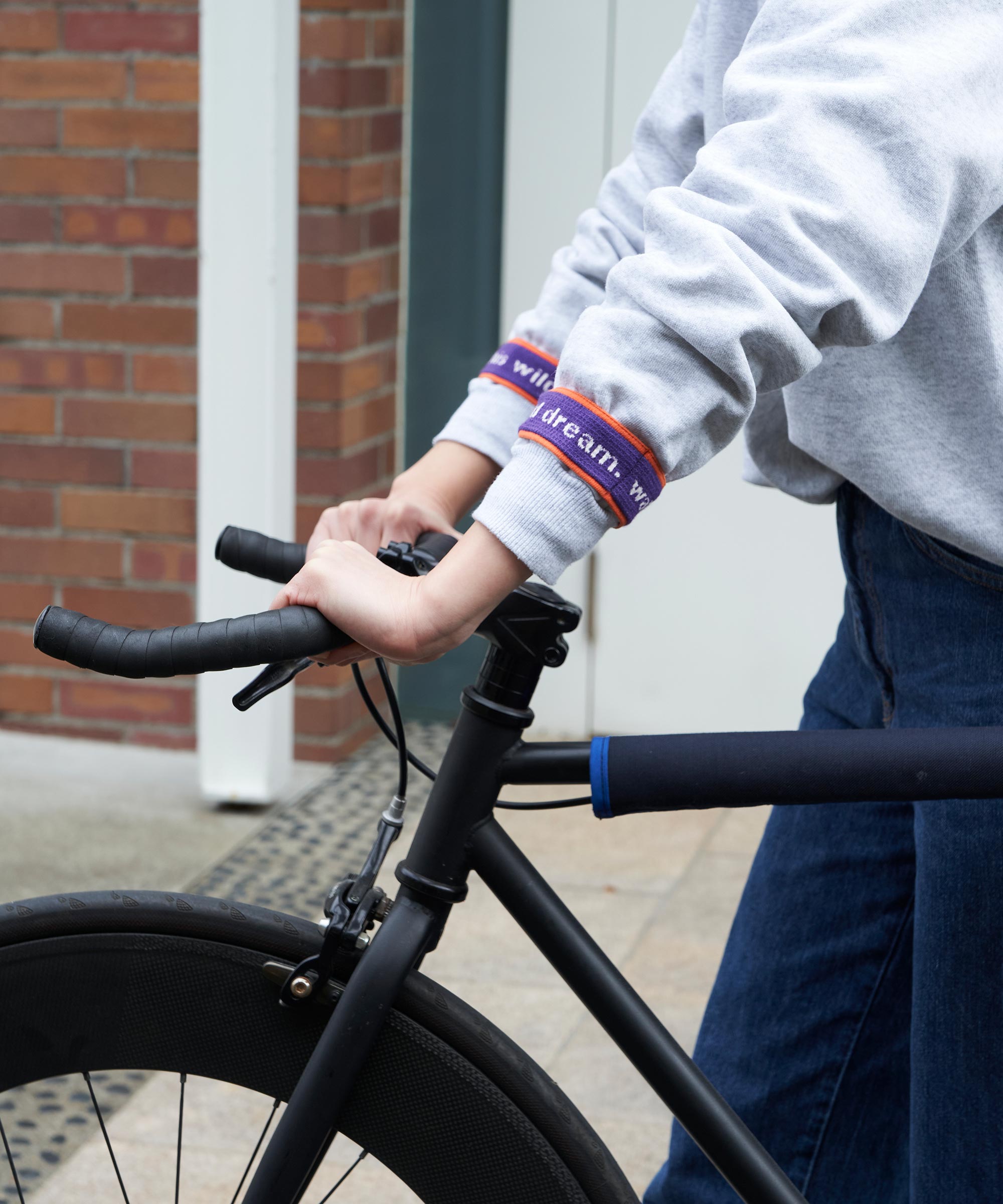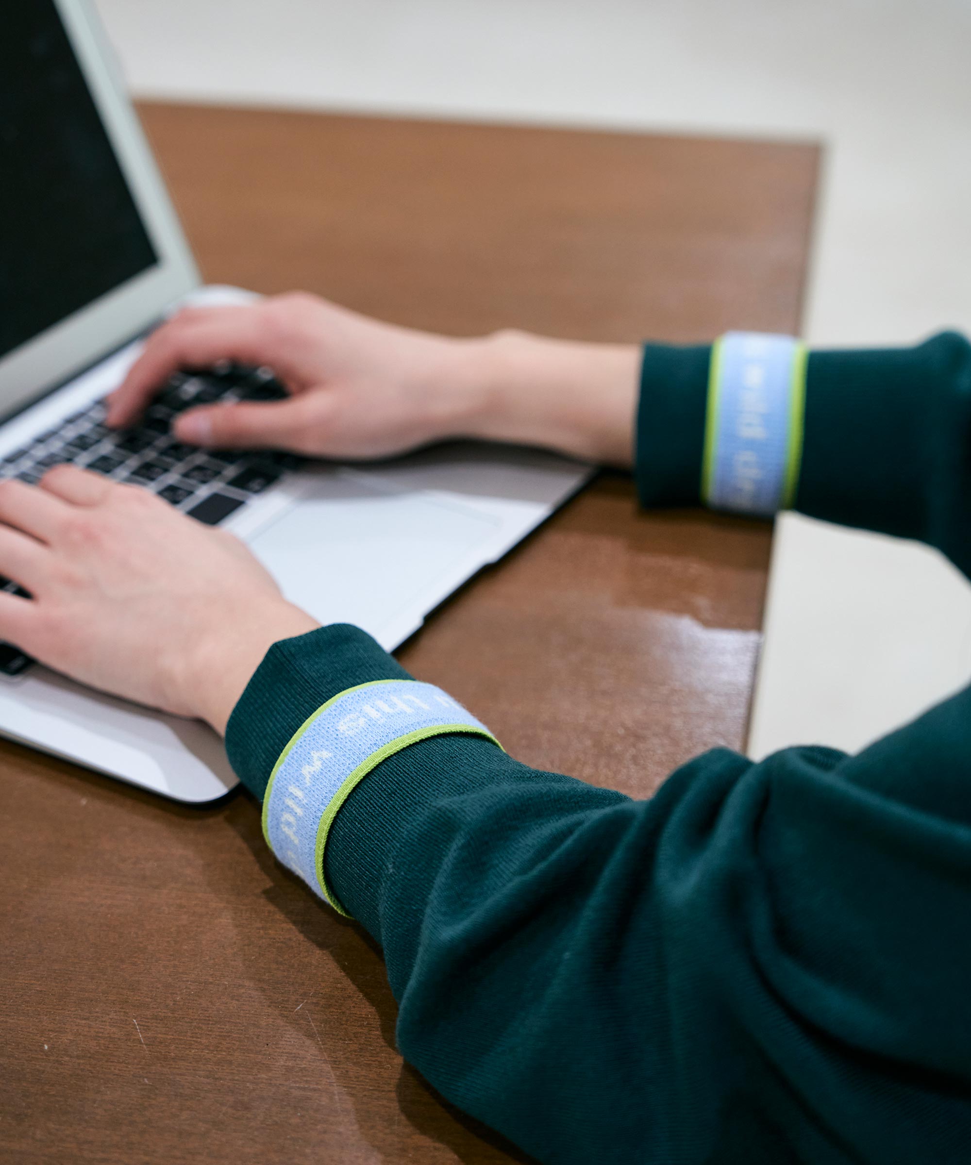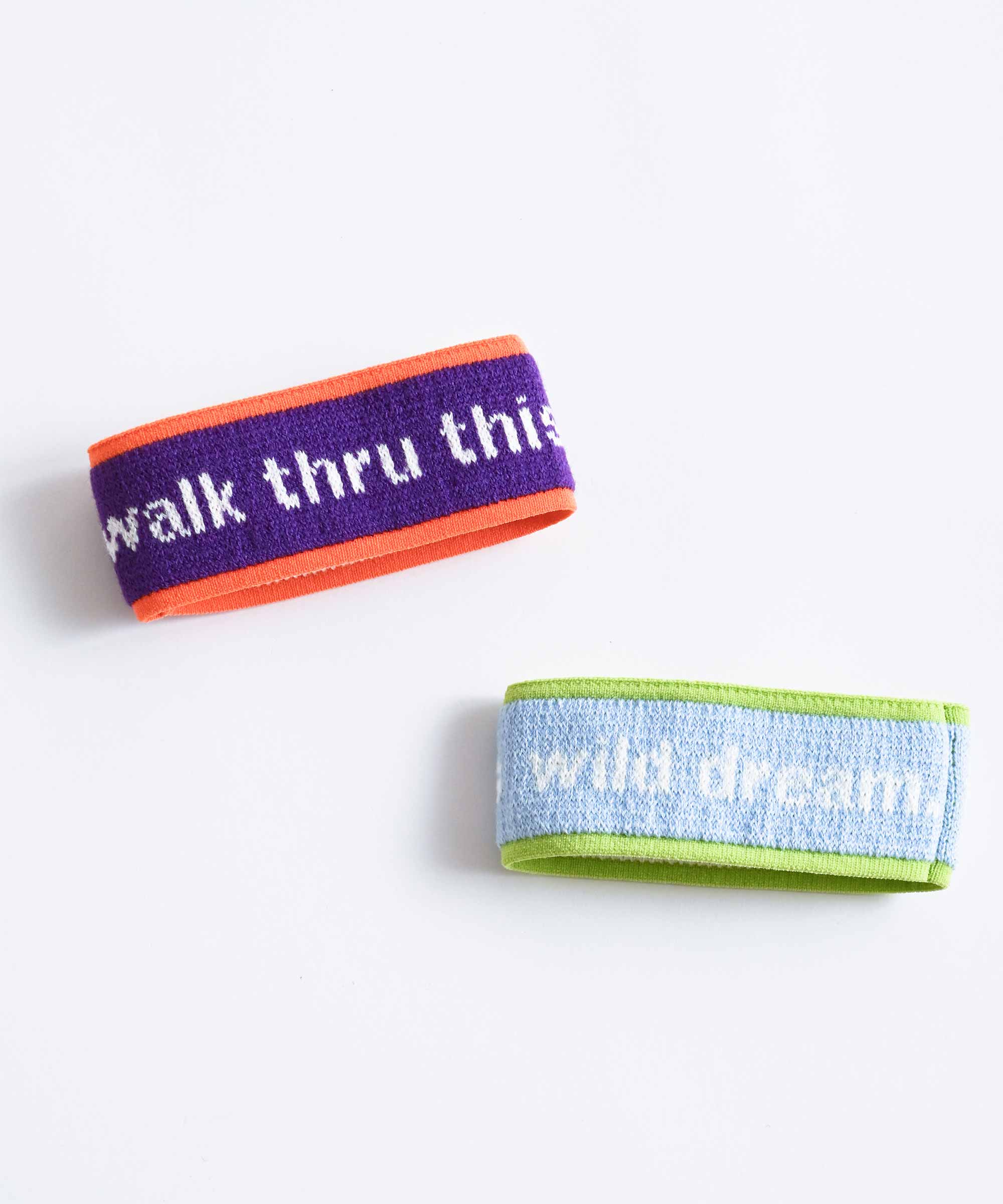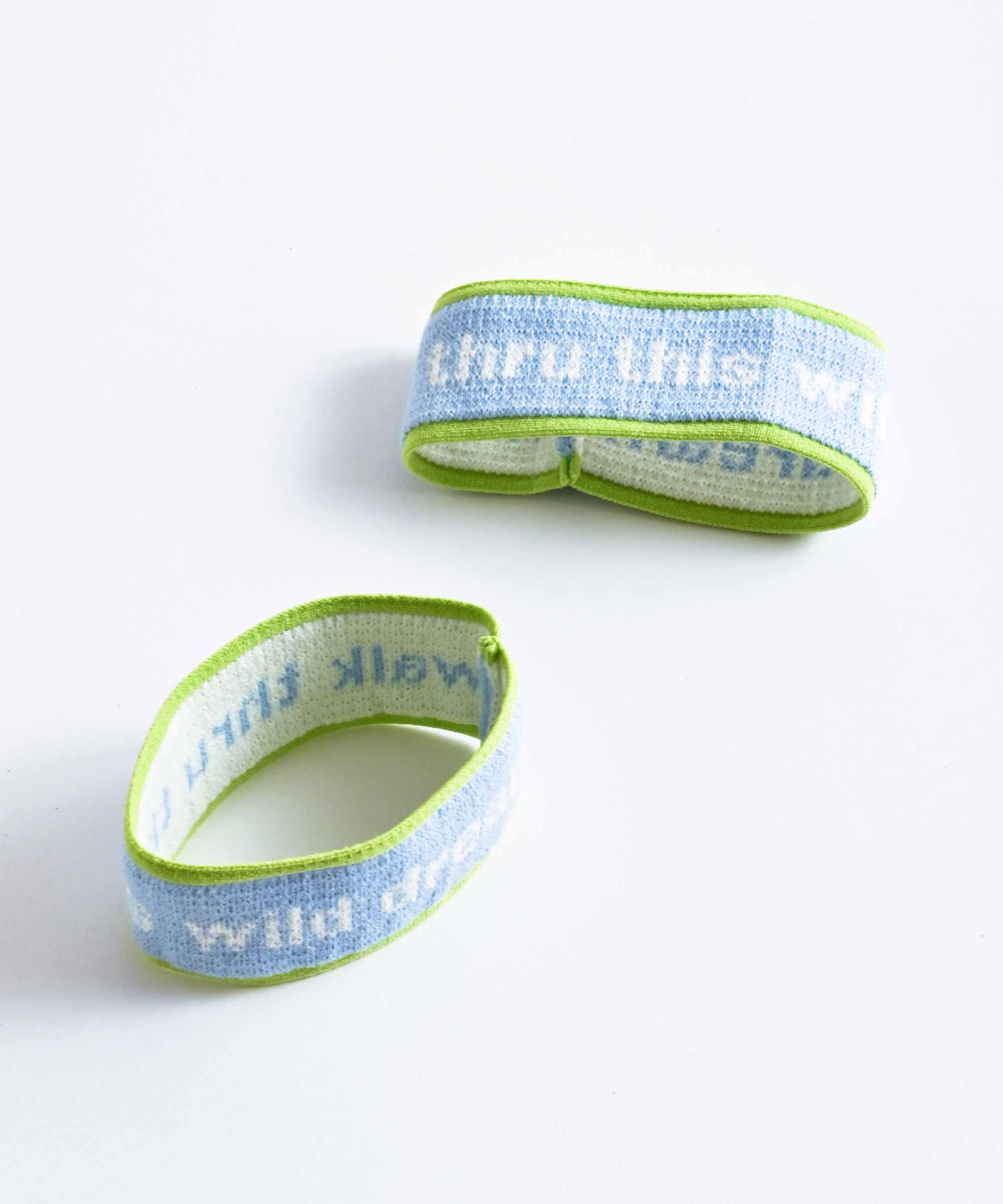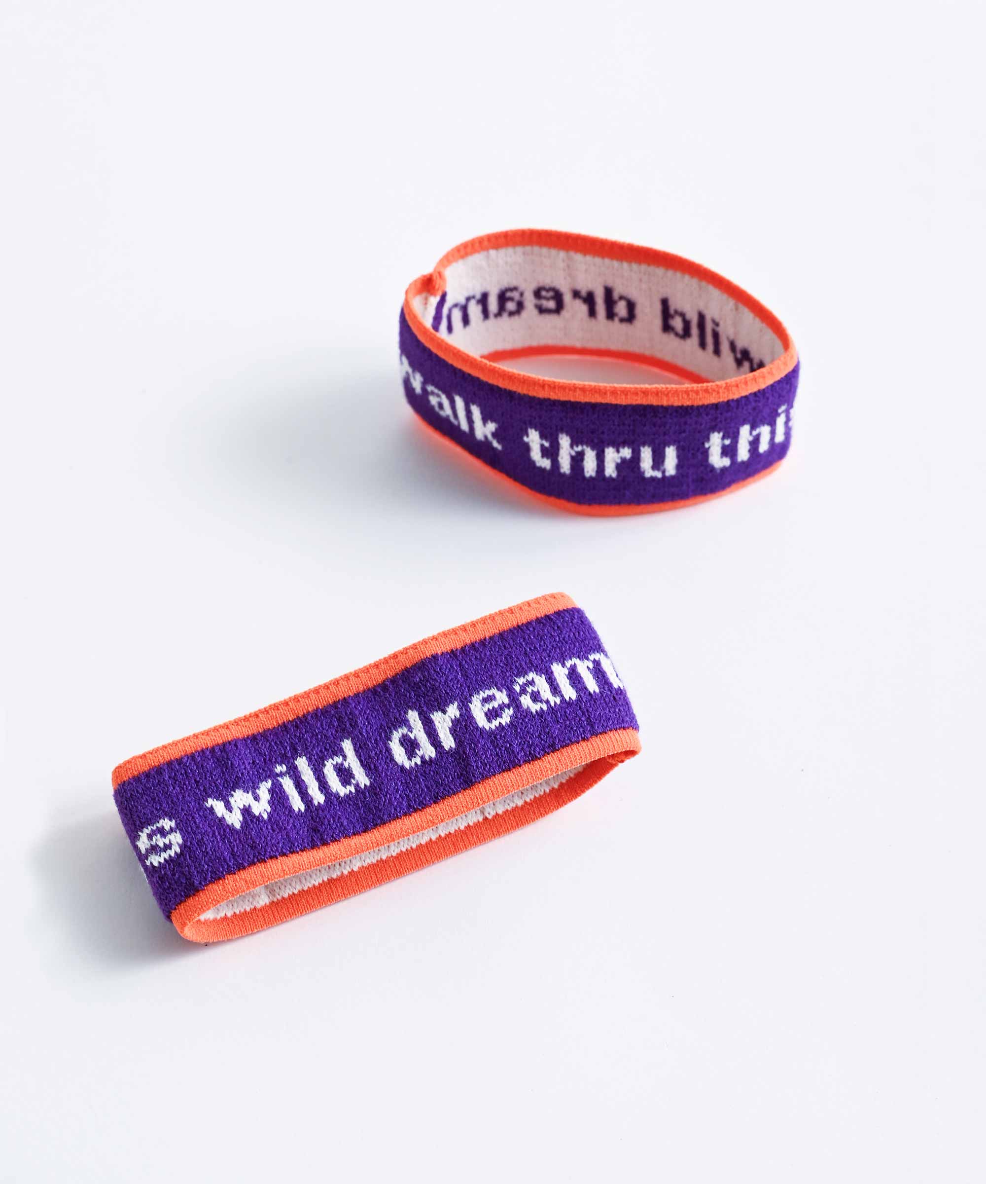 ”walk thru this wild dream.”というスローガン編まれたレッグバンド/アームバンド。