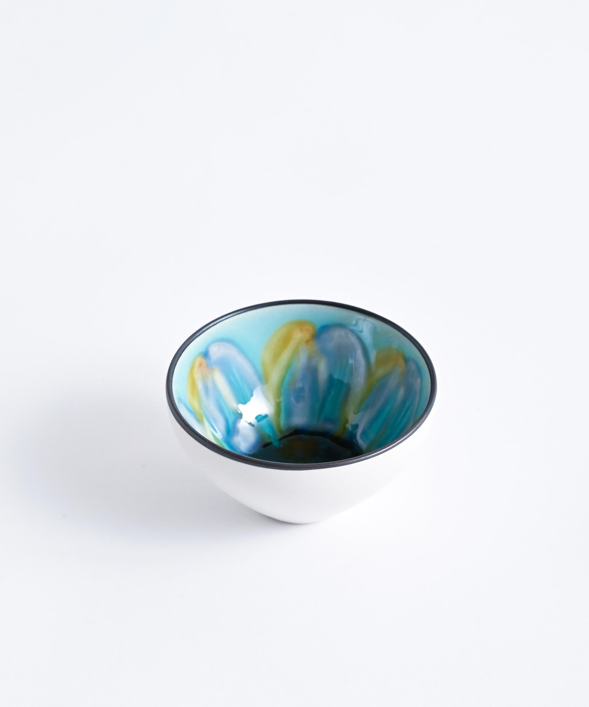 内面に描かれた独特のマーブルのモチーフは、釉薬が折り重なり花のような模様が浮かび上がったもの。