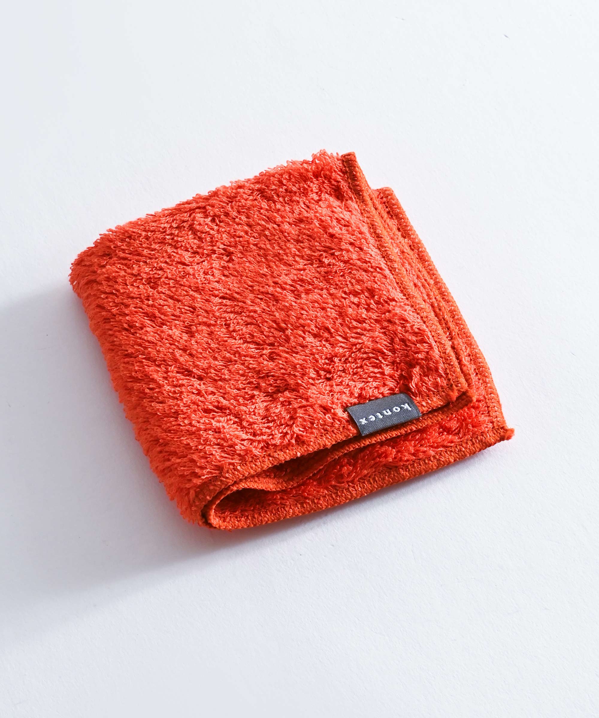 kontexが手掛けるタオルは、安全性を重視し、四国山系を源とする天然ミネラル水をたっぷりと使いながら、植物性の純石鹸や天然抽出オレンジオイルなどで丁寧に洗い上げています。