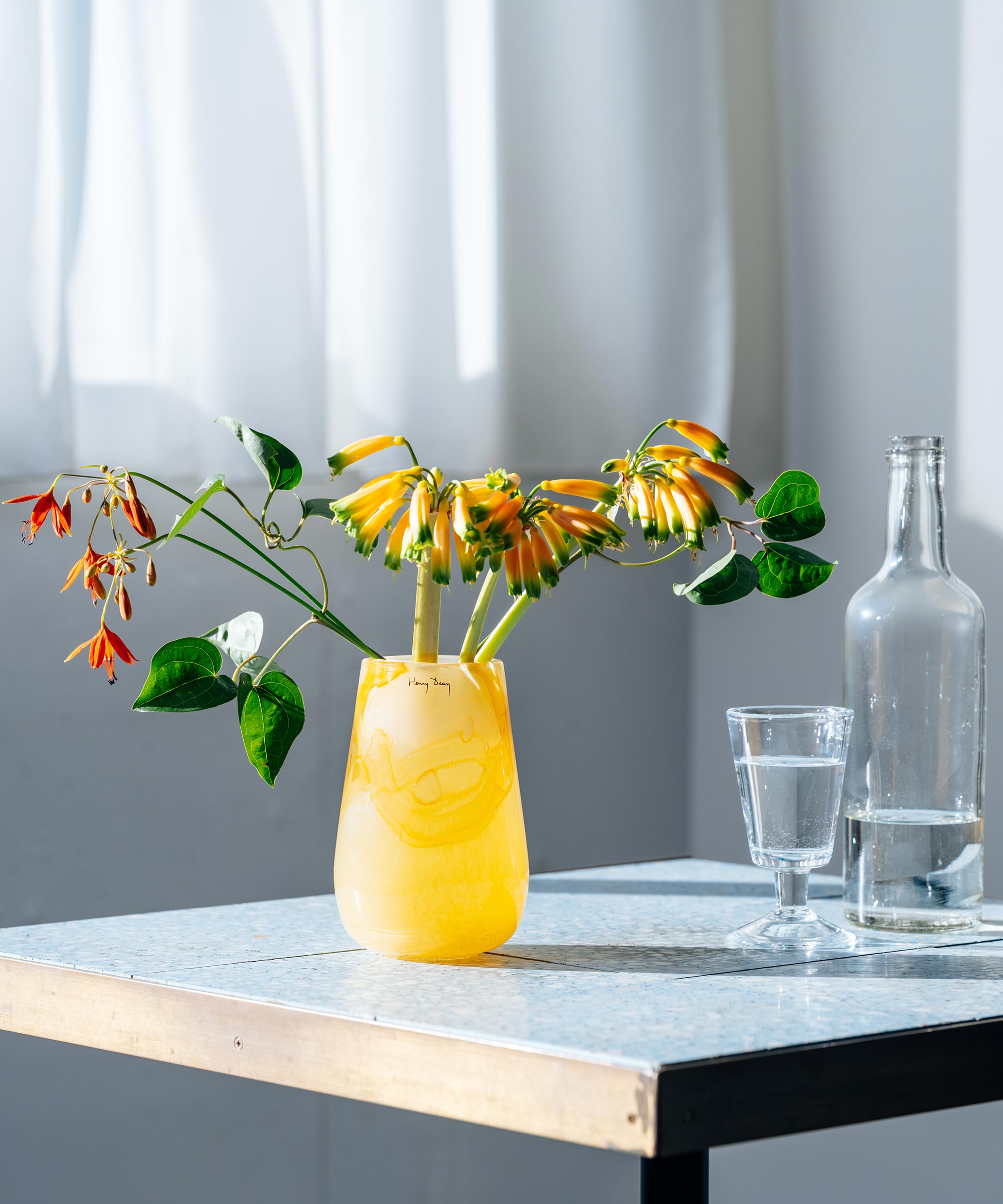 1977年にヘンリー・ディーンが創設したベルギーのフラワーベースブランド。昔ながらの手吹きガラスの手法によって生まれるやわらかなフォルムと揺らぎ、自然や日常のワンシーンから想起する洗練された色をまとったフラワーベースは、アートピースのような佇まいと温かみをもっています。植物を引き立てるHenry Deanのフラワーベースは、日本をはじめ世界中のフローリストから愛されています。