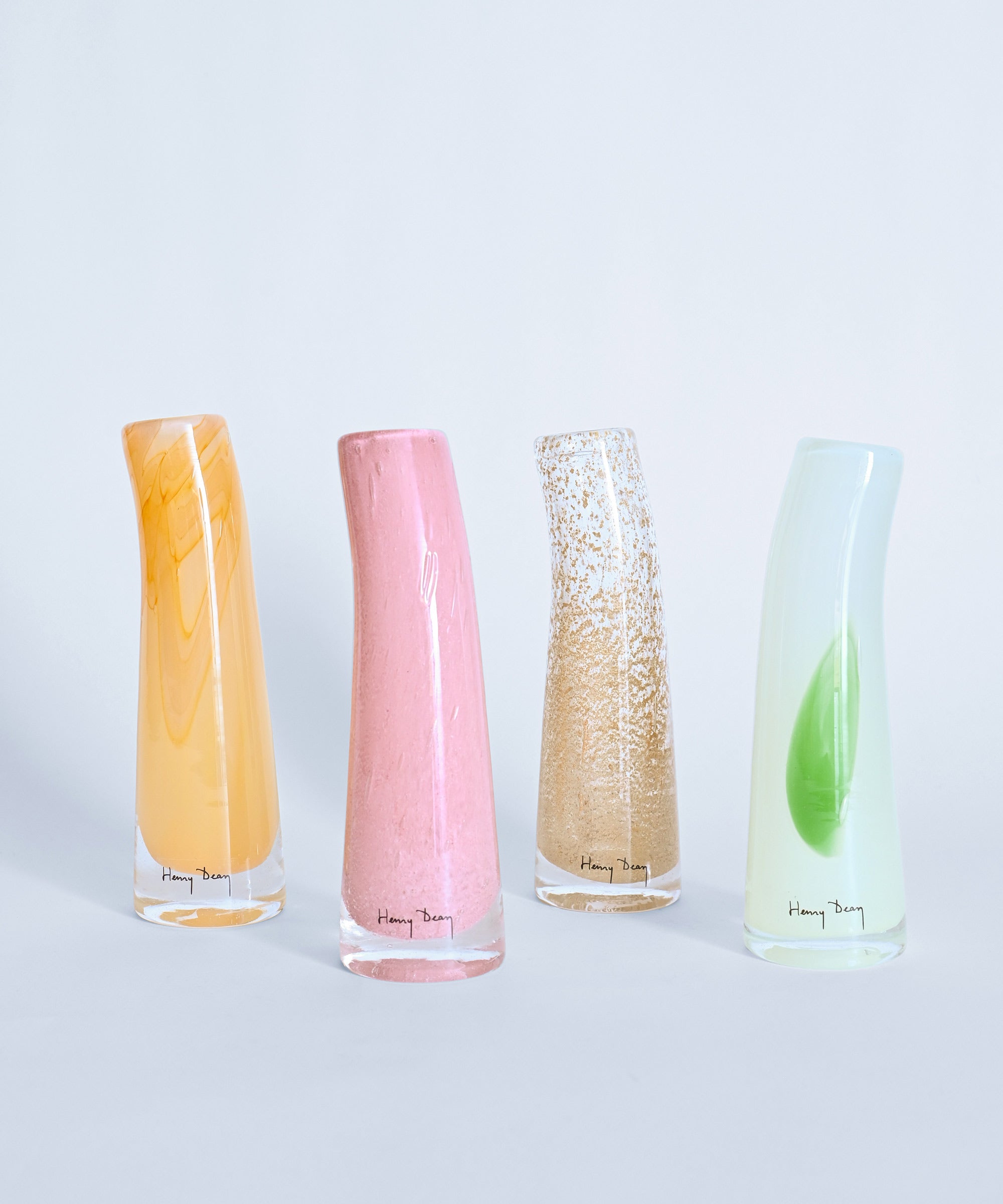 1977年にヘンリー・ディーンが創設したベルギーのフラワーベースブランド。昔ながらの手吹きガラスの手法によって生まれるやわらかなフォルムと揺らぎ、自然や日常のワンシーンから想起する洗練された色をまとったフラワーベースは、アートピースのような佇まいと温かみをもっています。植物を引き立てるHenry Deanのフラワーベースは、日本をはじめ世界中のフローリストから愛されています。