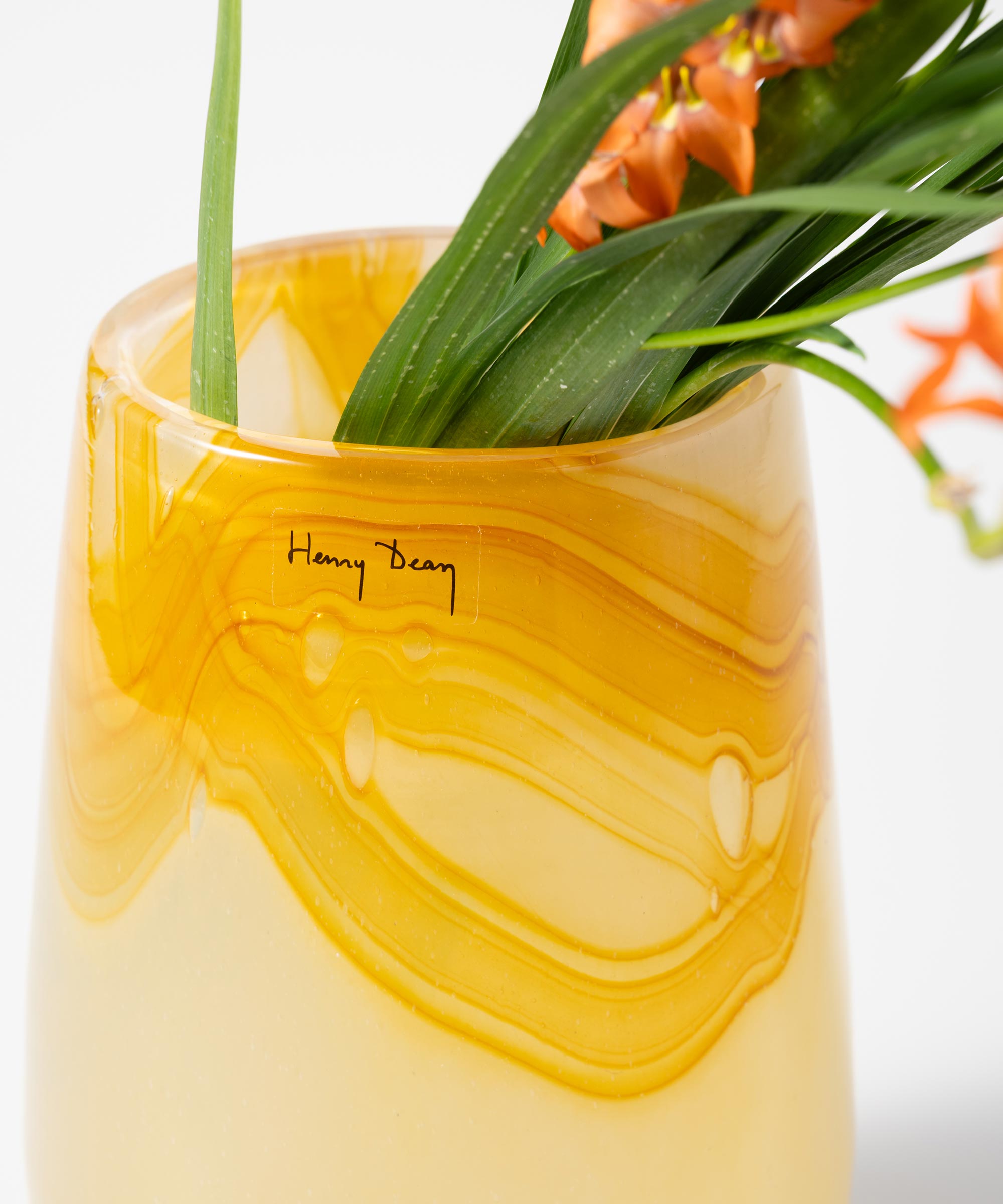 1977年にヘンリー・ディーンが創設したベルギーのフラワーベースブランド。昔ながらの手吹きガラスの手法によって生まれるやわらかなフォルムと揺らぎ、自然や日常のワンシーンから想起する洗練された色をまとったフラワーベースは、アートピースのような佇まいと温かみをもっています。植物を引き立てるHenry Deanのフラワーベースは、日本をはじめ世界中のフローリストから愛されています。