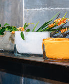 たっぷりと花を活けられる「August(オーガスト)」は厚みのあるガラスで安定感があり、高さが低いのでテーブルのコーディネートにもおすすめです。