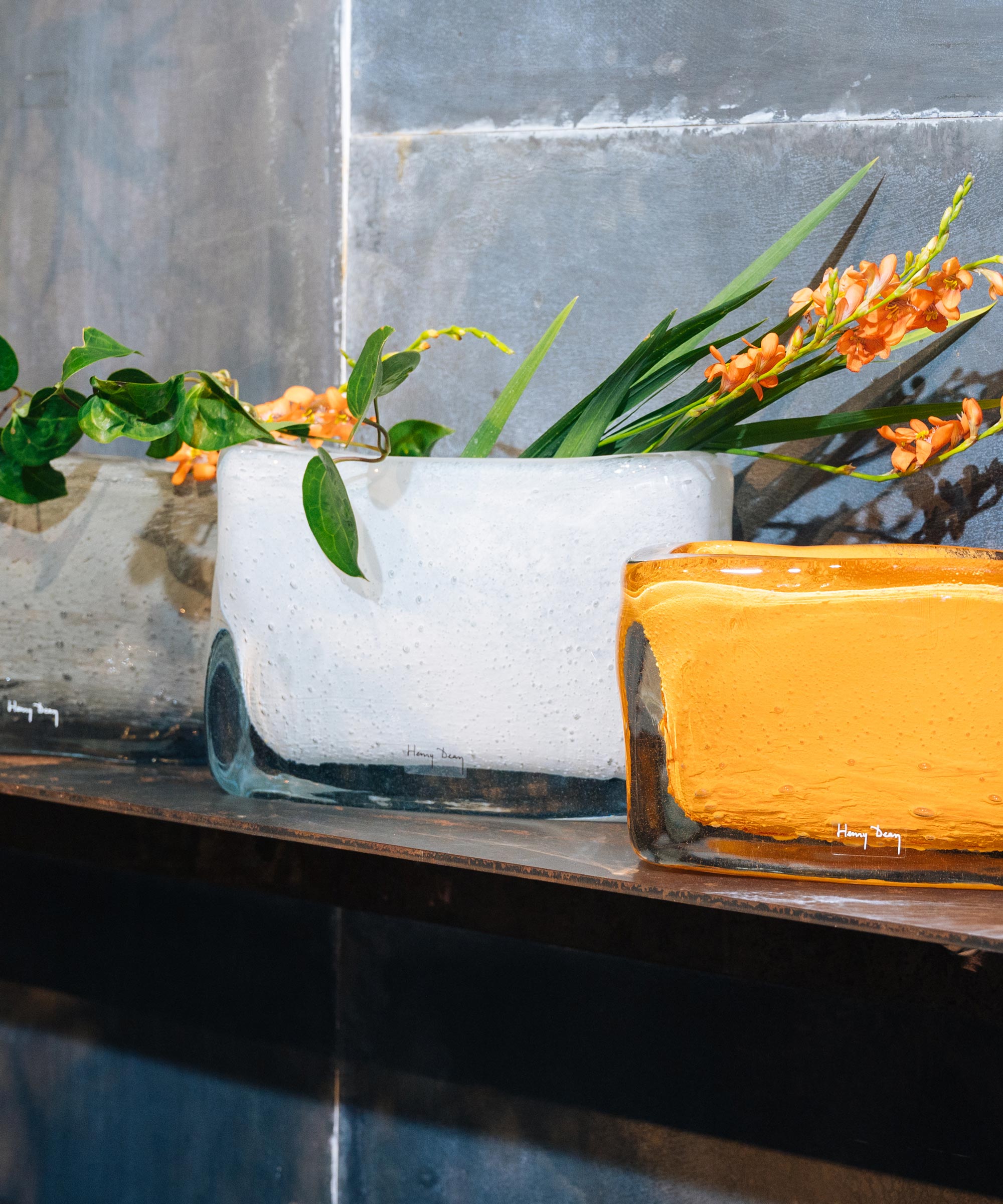 1977年にヘンリー・ディーンが創設したベルギーのフラワーベースブランド。昔ながらの手吹きガラスの手法によって生まれるやわらかなフォルムと揺らぎ、自然や日常のワンシーンから想起する洗練された色をまとったフラワーベースは、アートピースのような佇まいと温かみをもっています。植物を引き立てるHenry Deanのフラワーベースは、日本をはじめ世界中のフローリストから愛されています。