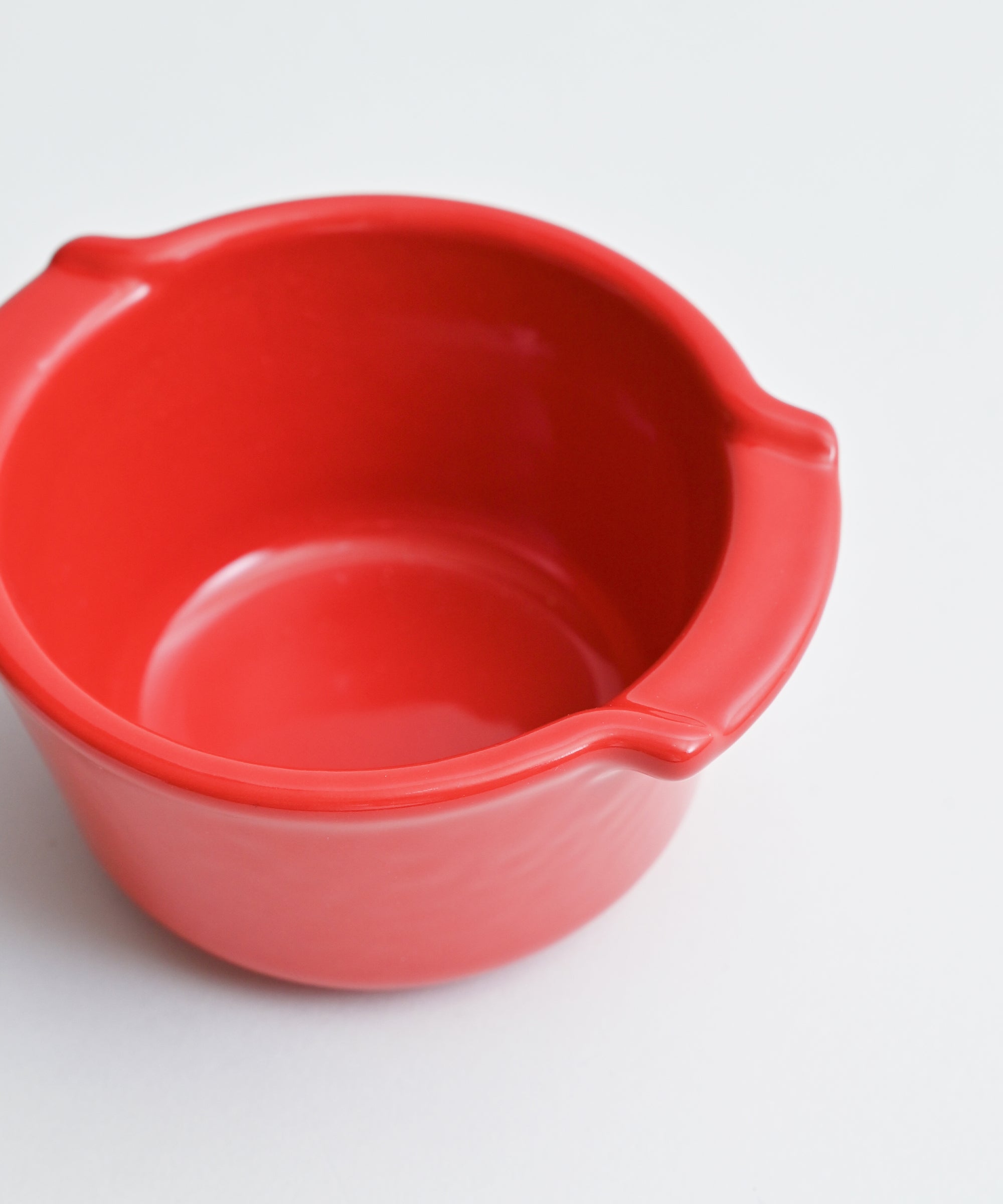 セラミック製耐熱オーブンウェア「アポーリア」シリーズ。 横11cm×高さ5.6cmの小さなココット皿が2個セットになっています。