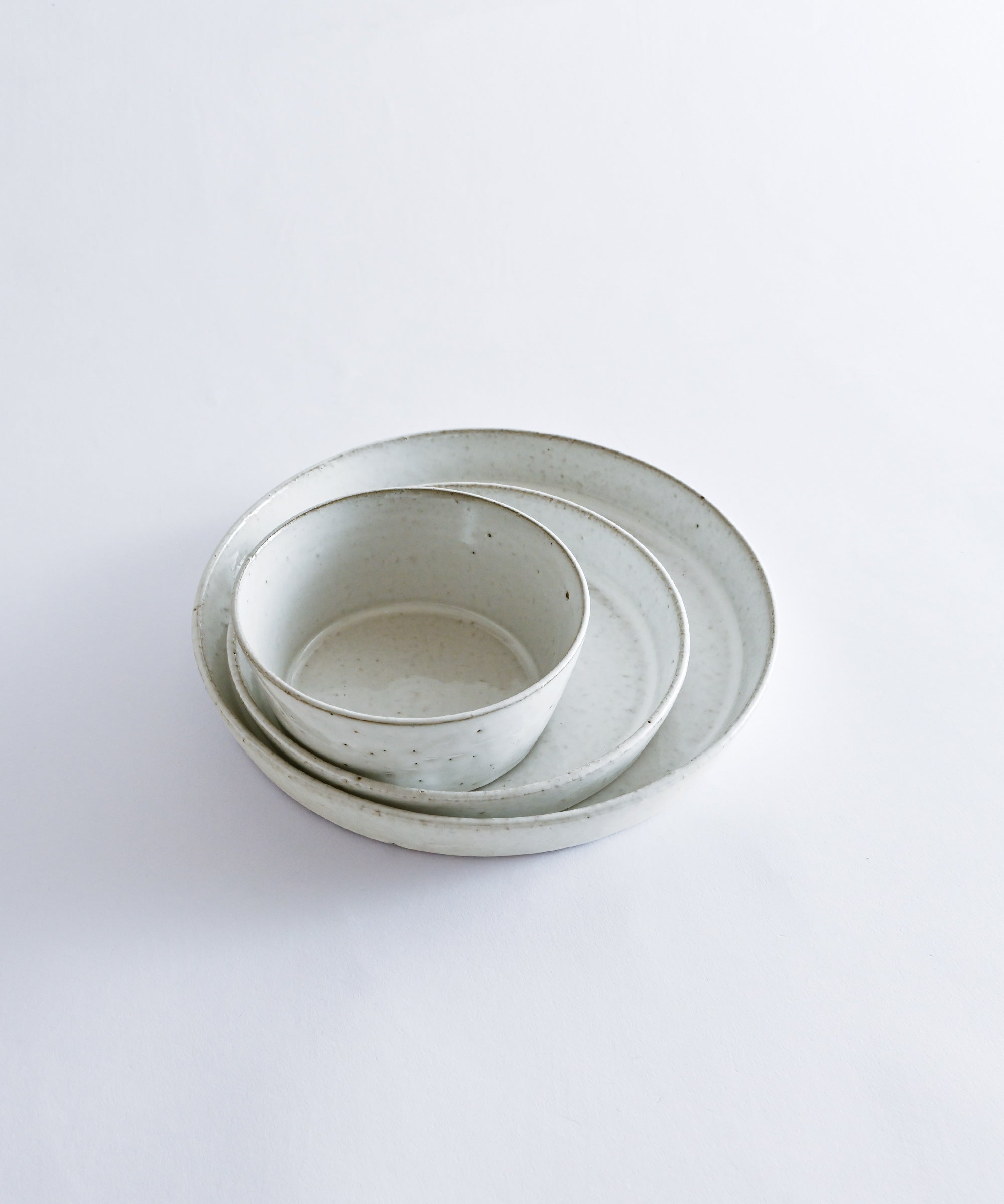 形と使い勝手にこだわって、毎日使いたい器を図面を引いてデザインしたBASIC AND ACCENTの定番の器。ひとつひとつ轆轤(ろくろ)で形にしています。あえてシャモット(石)の入った土を使用しているので、釉薬をかけた時の表情がひとつひとつ異なります。スープやおかずの盛り付け皿として便利です。