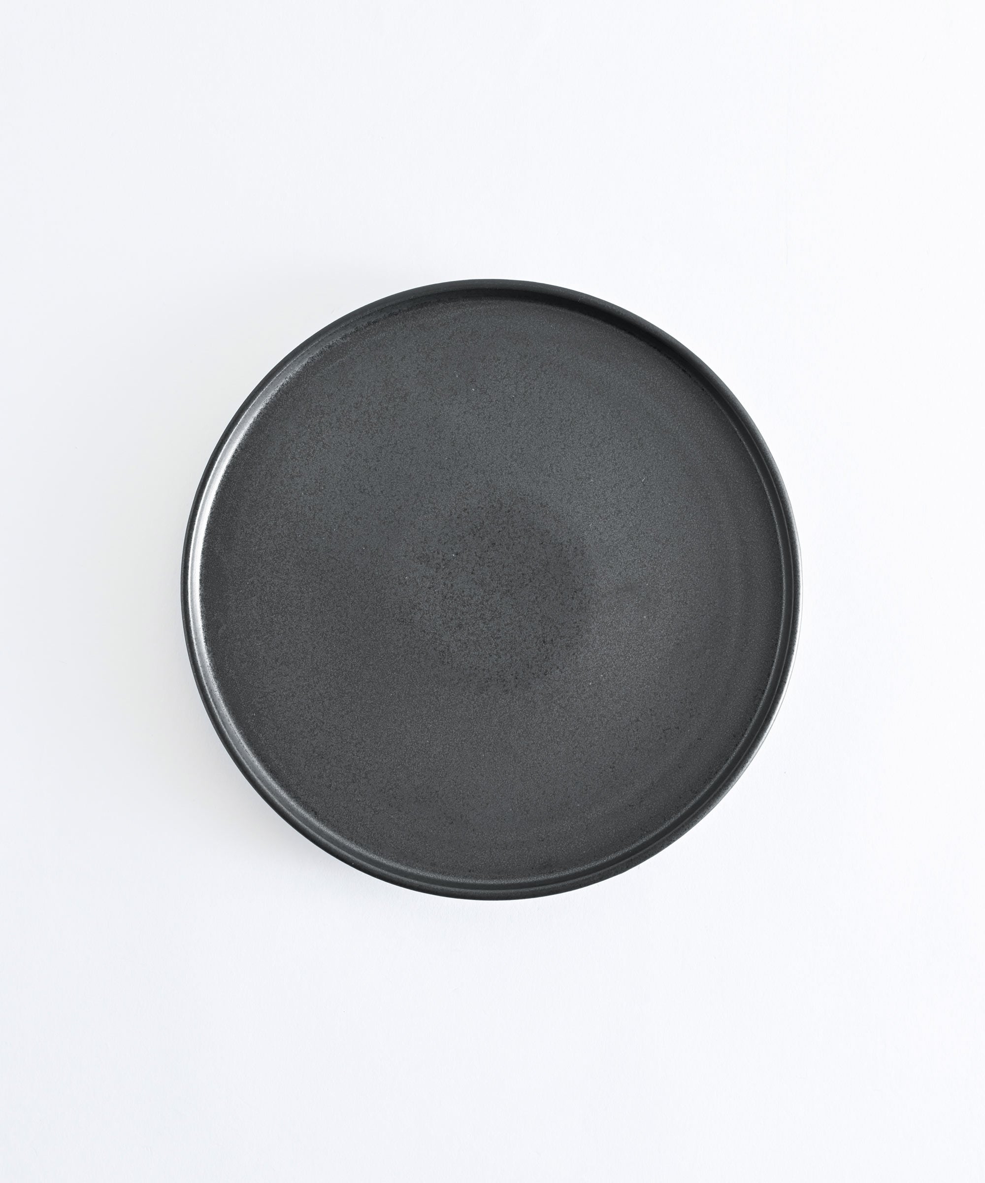 革のような表情にも見える、セミマットな釉薬で作ったBASIC AND ACCENTオリジナルのシリーズです。フラットなプレートはおしゃれに盛り付けのできる人気の形です。同シリーズの酒器と一緒におつまみをのせてワンプレートにしても。