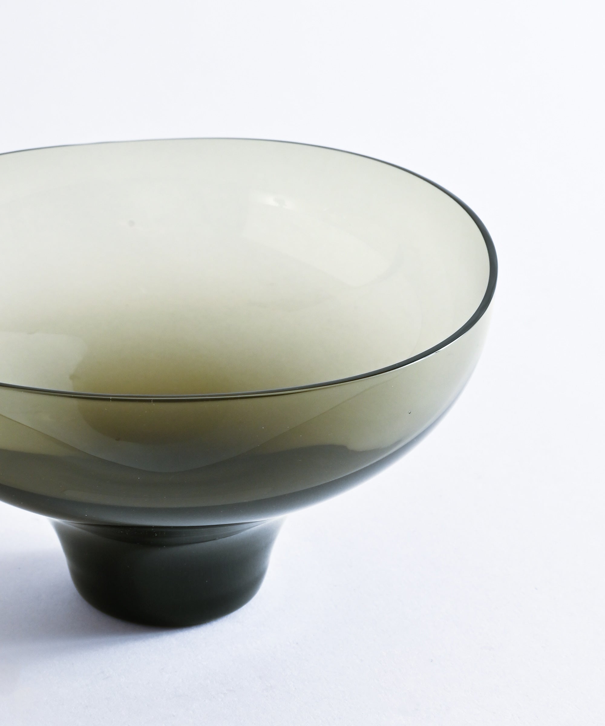 硬く冷たいガラスになめらかなカーブが柔らかな印象を吹き込んだデザイン性のあるボウルです。