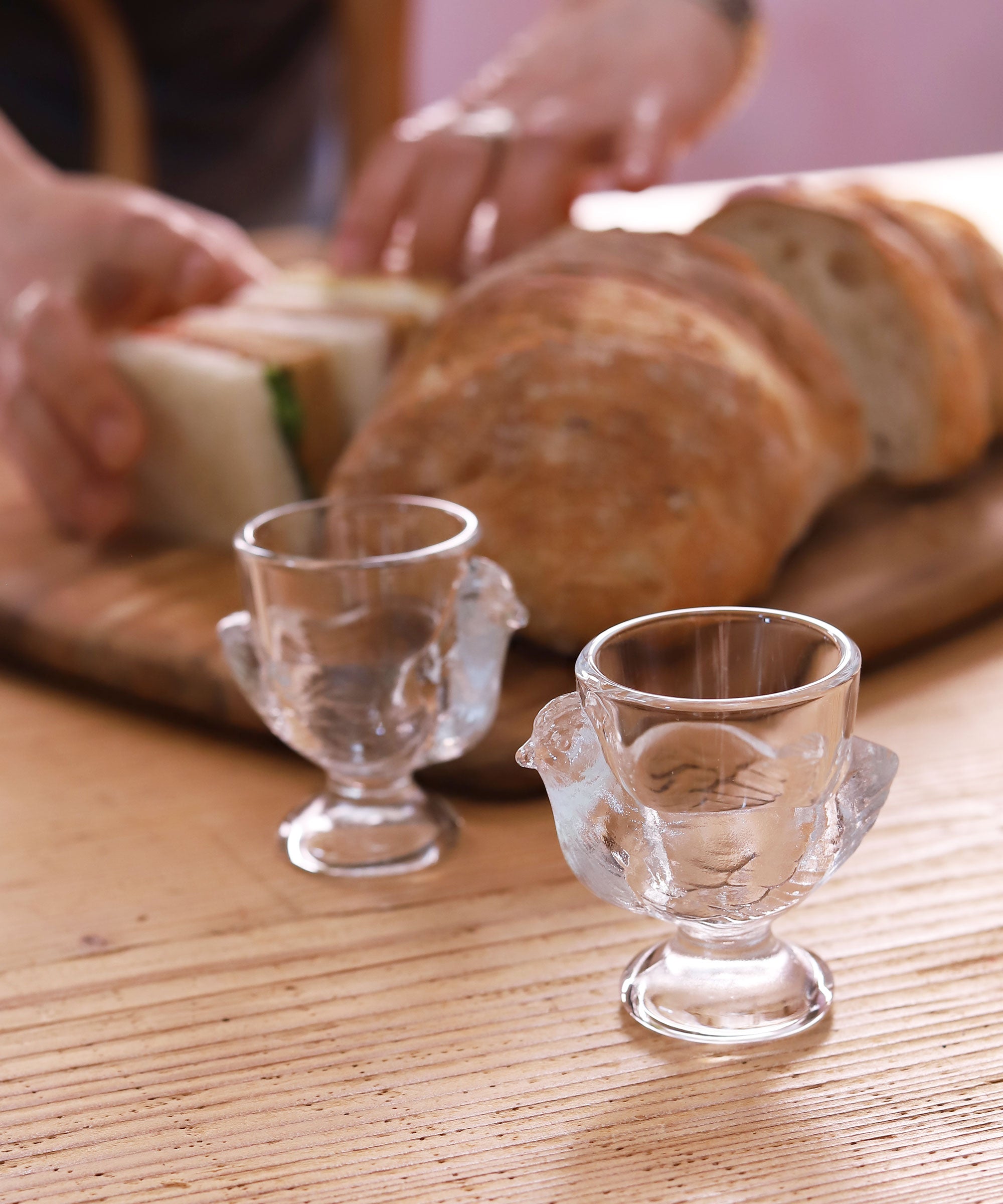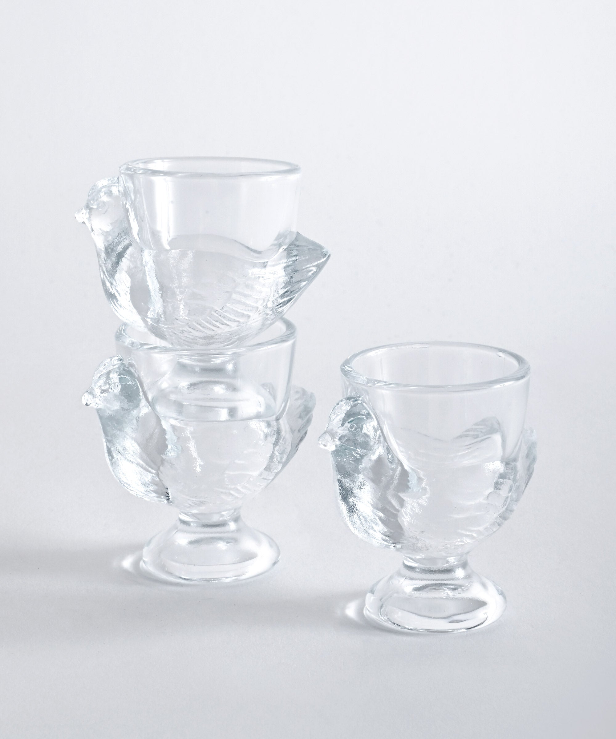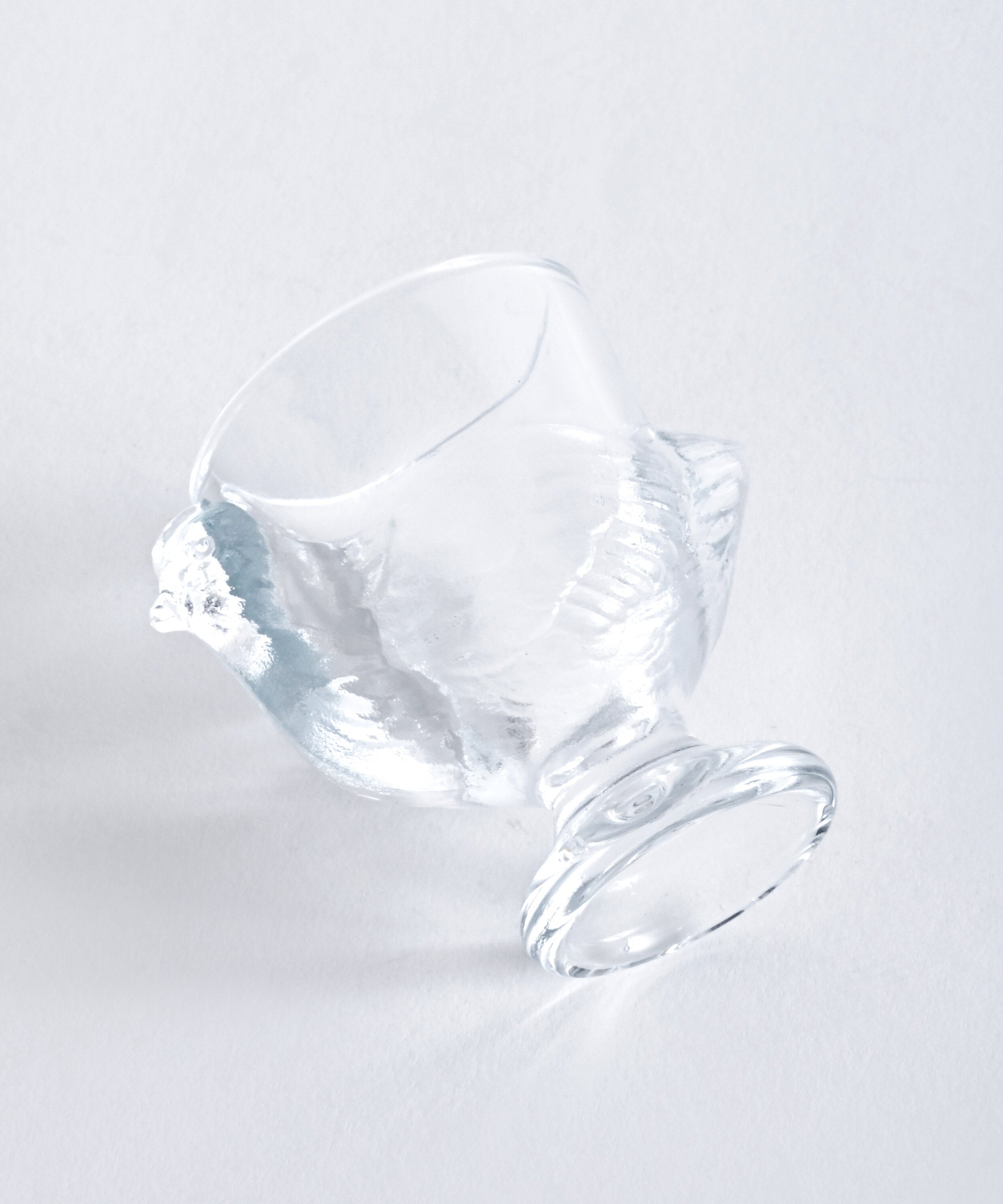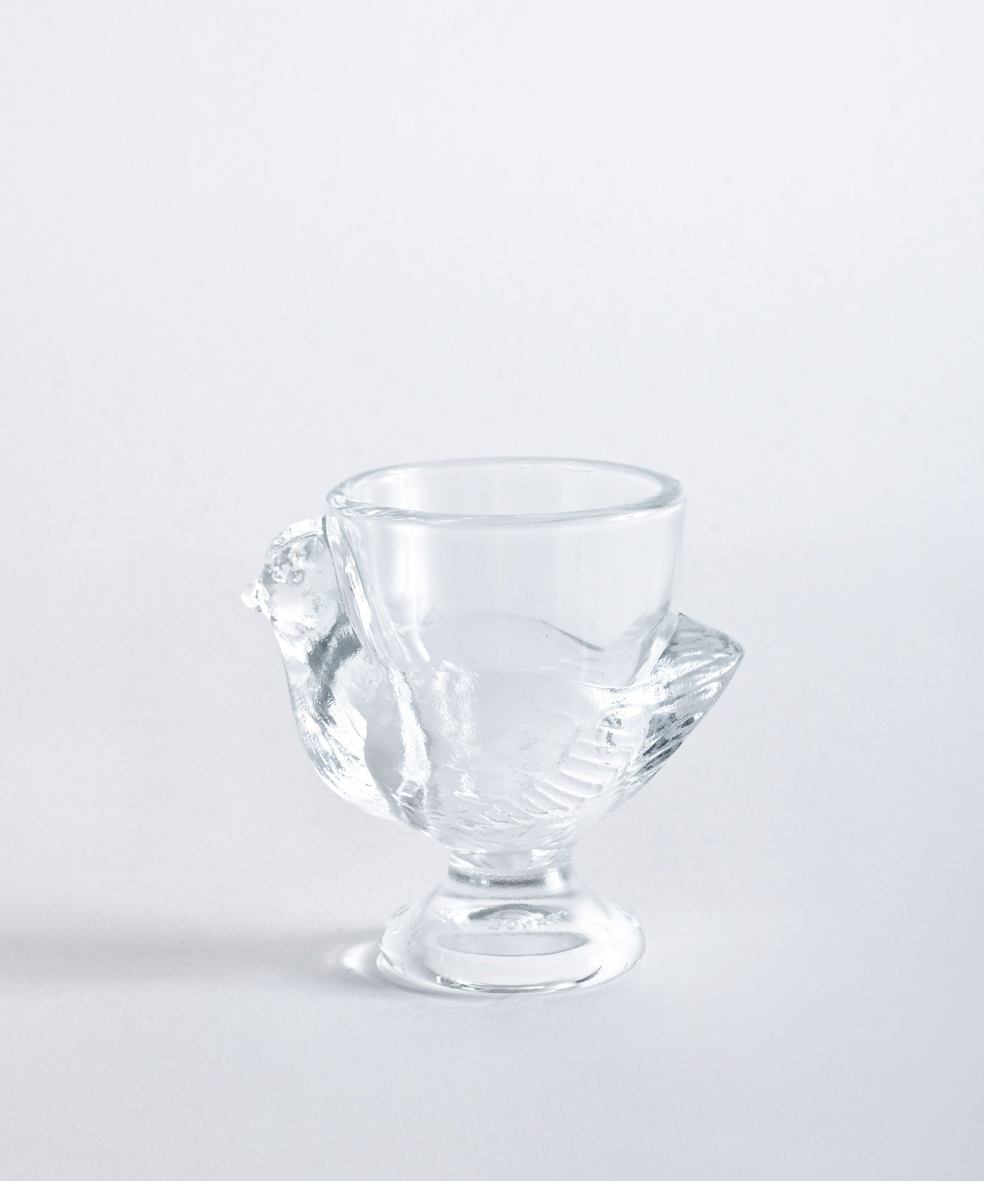 ニワトリの形をしたガラス製のエッグスタンド。