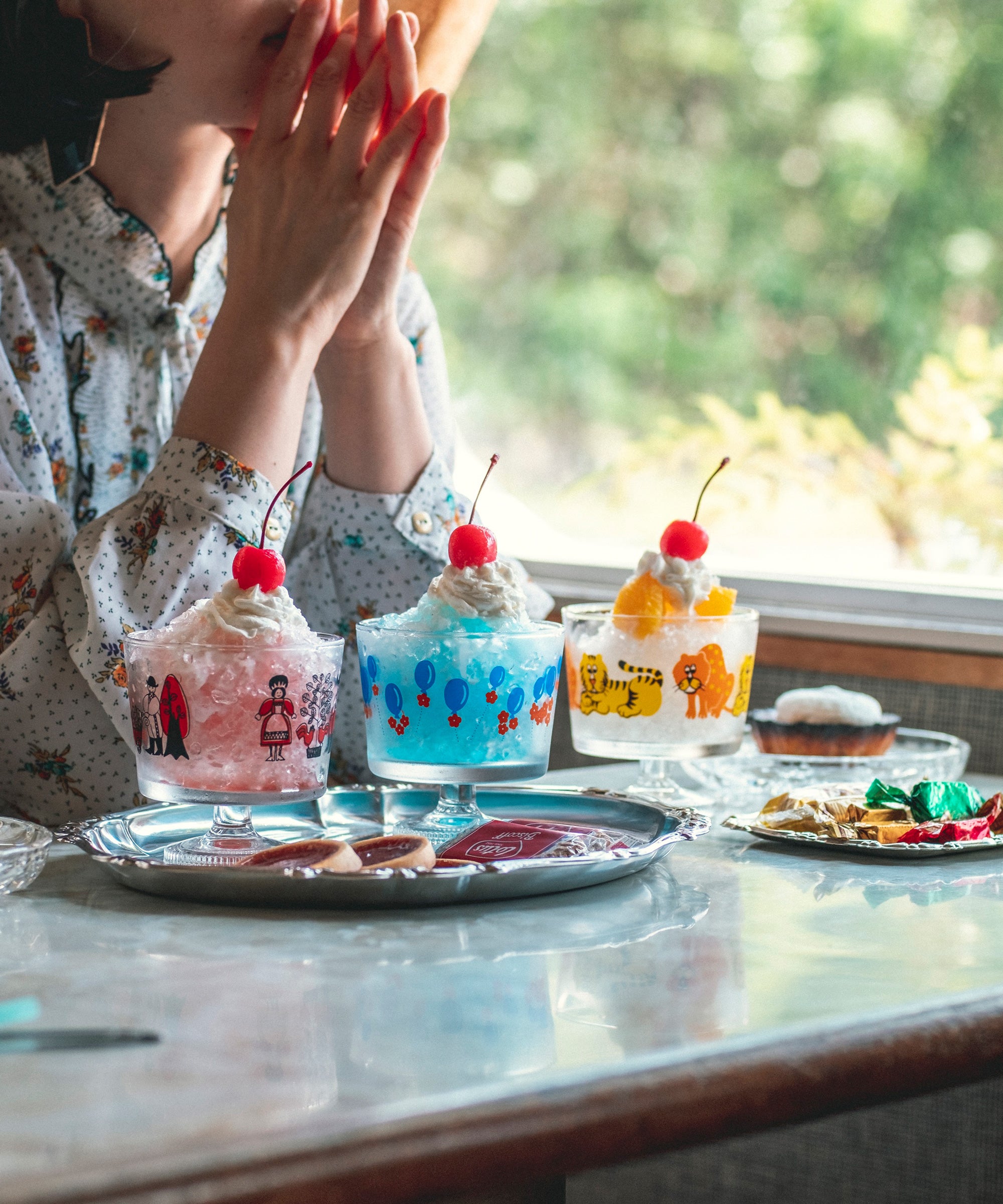 レストランや純喫茶の象徴的なアイテムの脚付きのデザートカップ。フルーツやお菓子を盛りつければ、おうちで喫茶気分を堪能できます。懐かしくてレトロ感のあるおしゃれな脚の彫刻は当時の雰囲気そのままに再現しています。