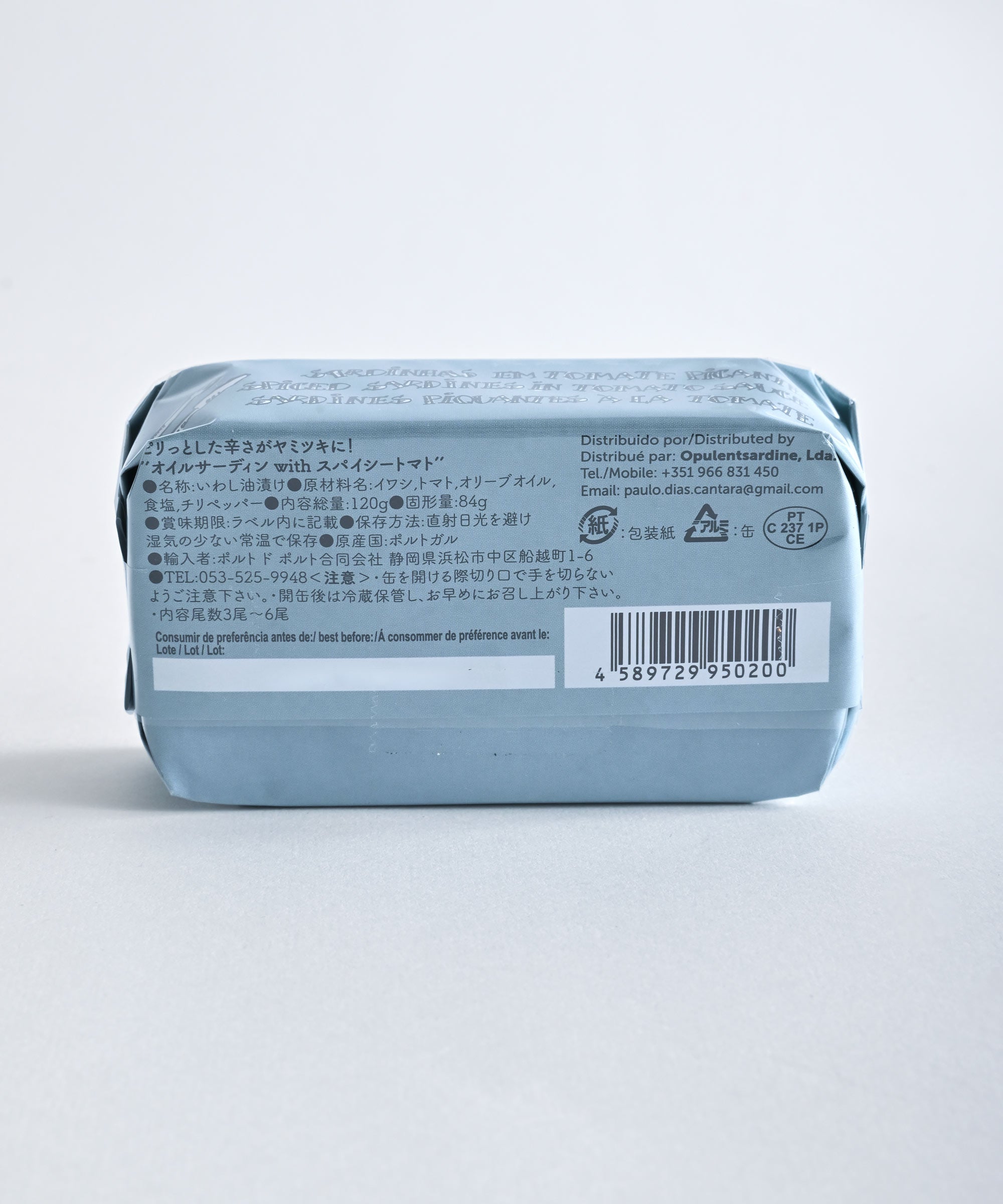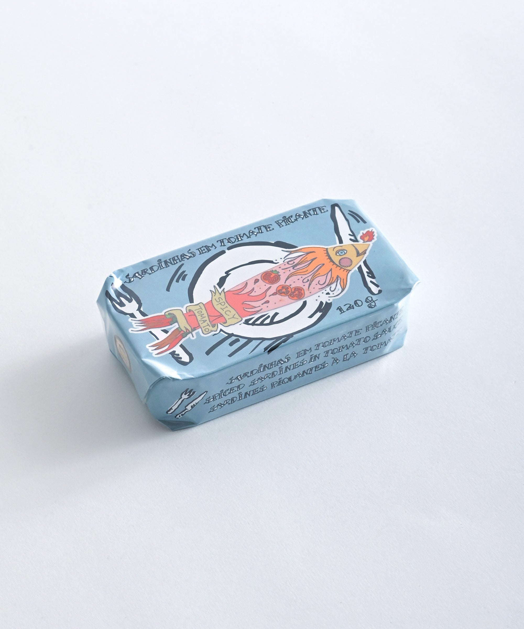 小ぶりのイワシとトマト&チリペッパーを混ぜたソースを絡め、そこに新鮮なポルトガル産のオリーブオイルをたっぷり浸してあります。