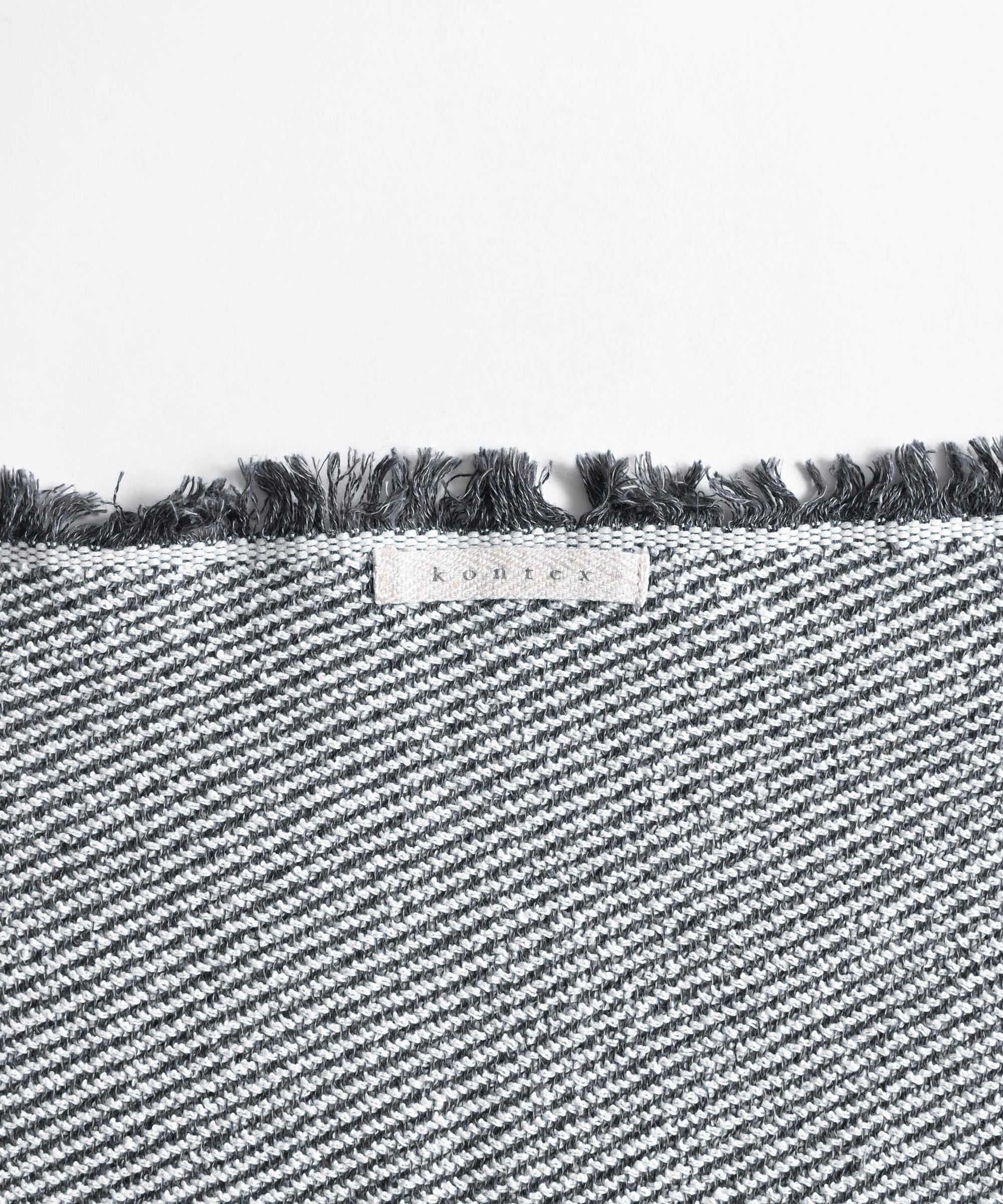 斜向ストライプ模様のベーシックなカラーに2色のショートフリンジがアクセントになっています。