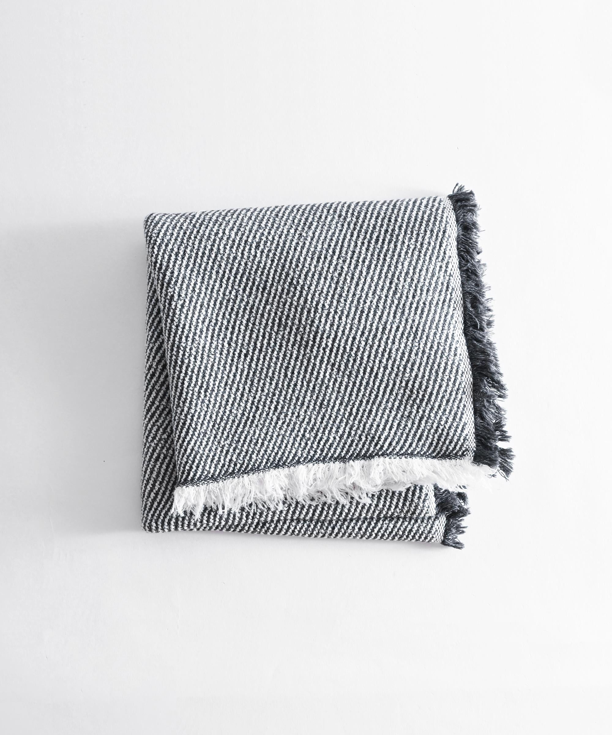 柔らかく弾力を持つ特殊な糸を使い、昔ながらの織機でゆっくりと手編みのような質感に仕上げました。