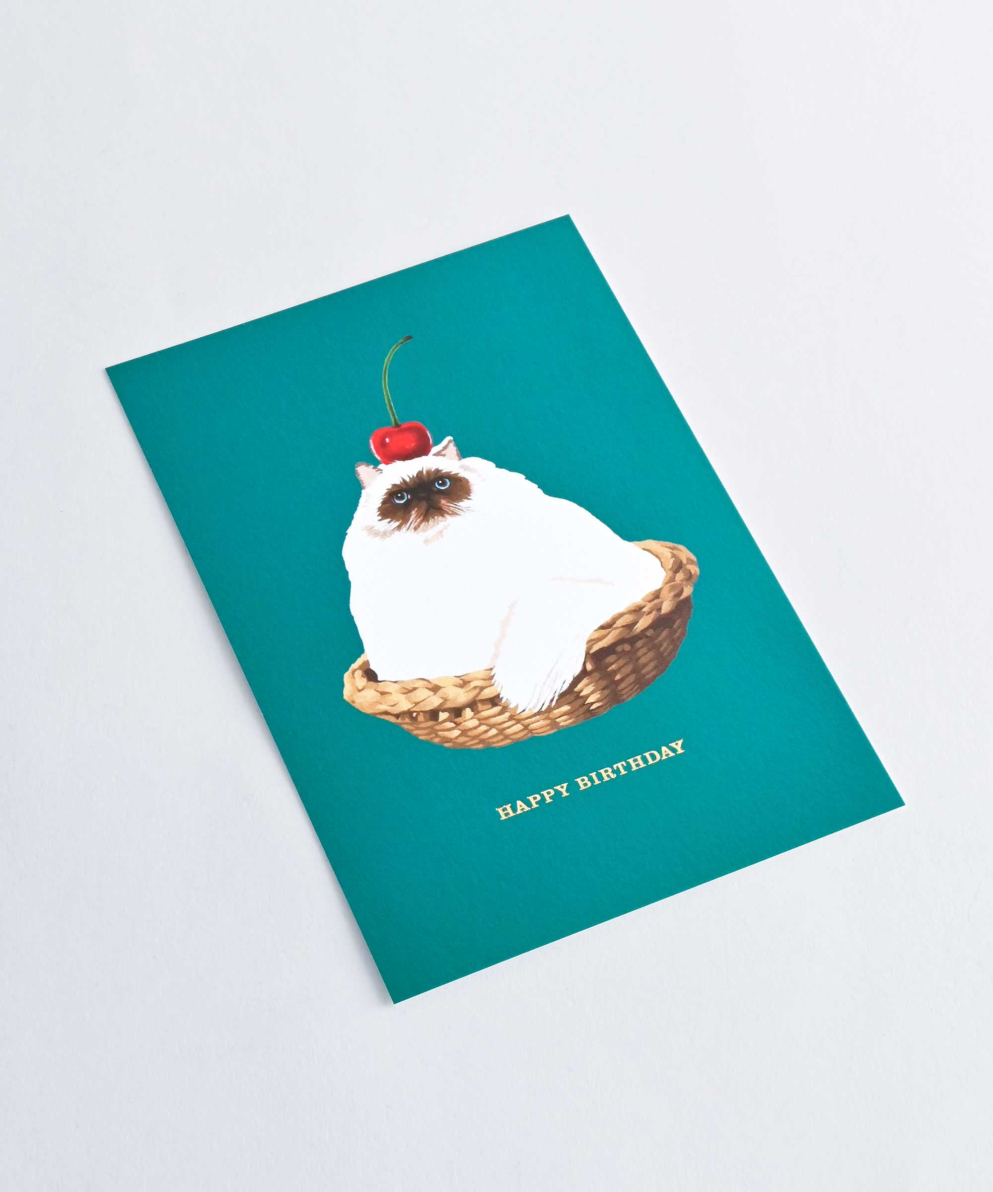 カゴに入ったふわふわな猫は、クリームたっぷりなタルトケーキのよう。
